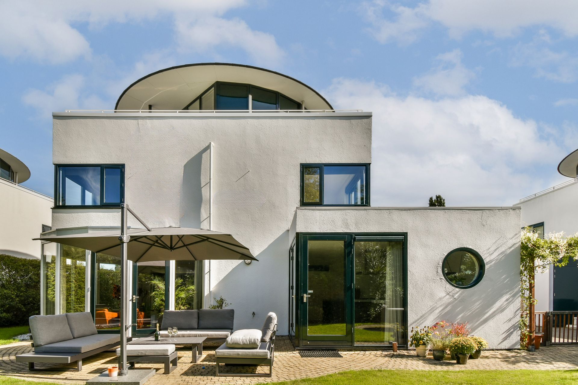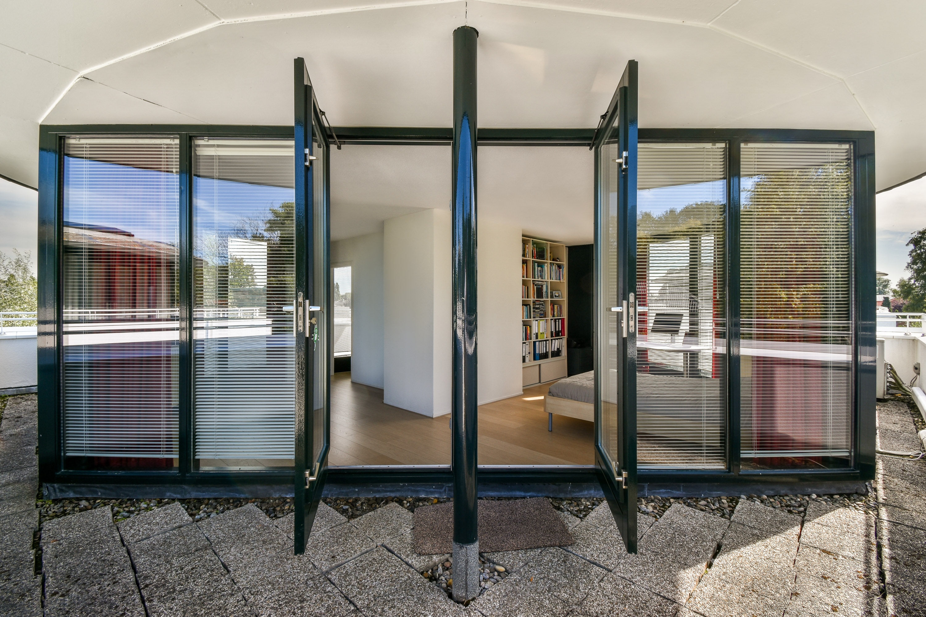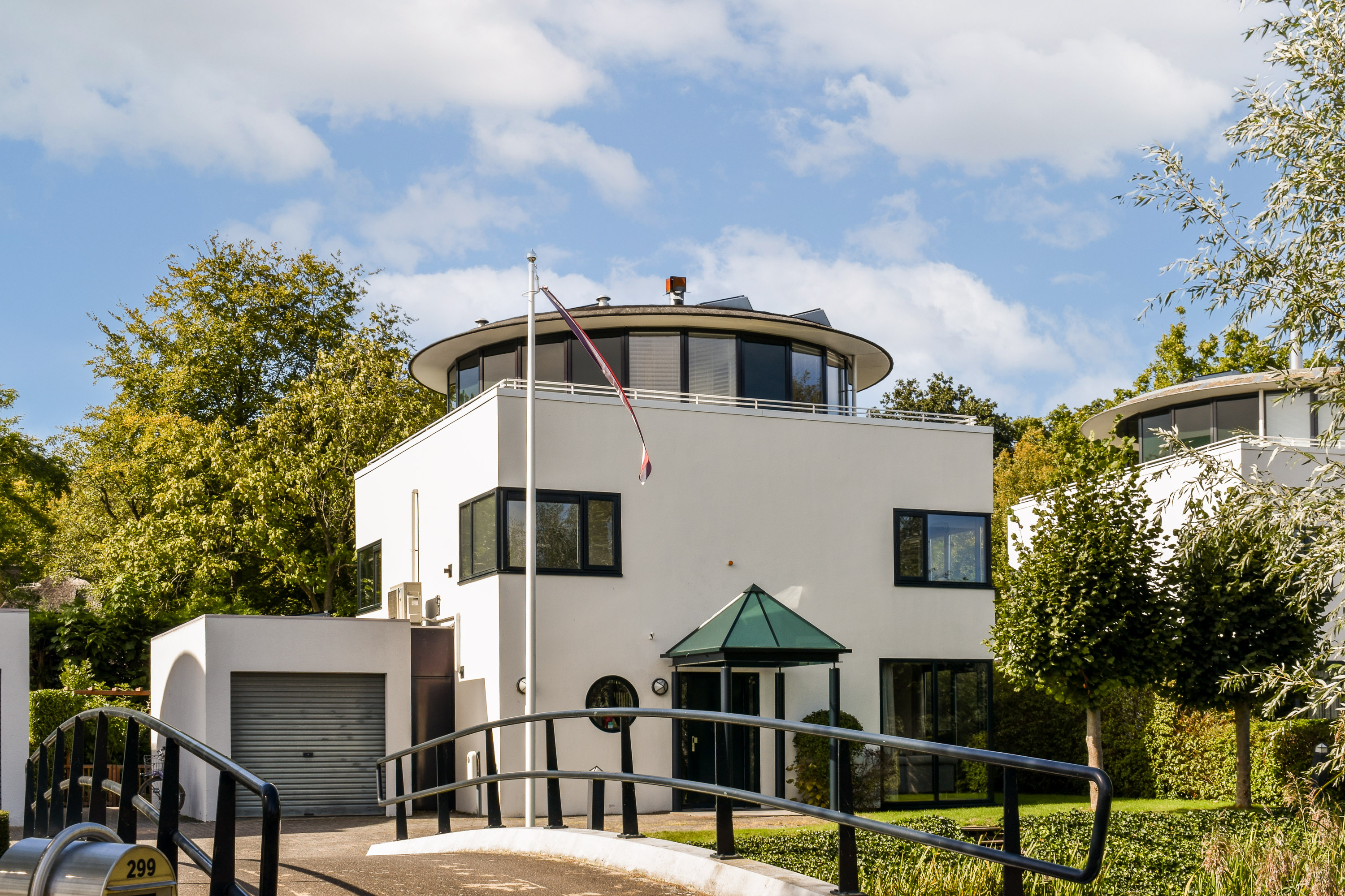 Detached villa Dordrecht defines a rare fusion of architectural pedigree and refined living, situated in Burgemeester Beelaertspark, a sought-after enclave in Dubbeldam. This 197 m² residence, designed by the distinguished architect Cees Dam and completed in 1995, balances clean lines and curved contours, creating an expressive yet harmonious profile. A private bridge leads to the entrance, sharing access only with a neighbouring property, while the landscaped 497 m² plot opens to water at the front and a sun-filled west-facing garden at the rear.