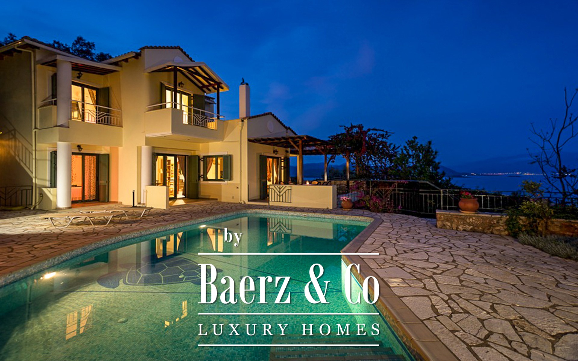 Villa Ellomeno with sea views represents a rare combination of privacy, design, and location. This 225 m² villa is set on a 4,000 m² plot within an olive grove just 300 meters from the sea on Lefkada's east coast. The property is positioned between Perigiali and Nikiana, offering sweeping sea vistas towards nearby islands and the mainland, with Passa Beach within walking distance and convenient access to both Nikiana and Nidri.