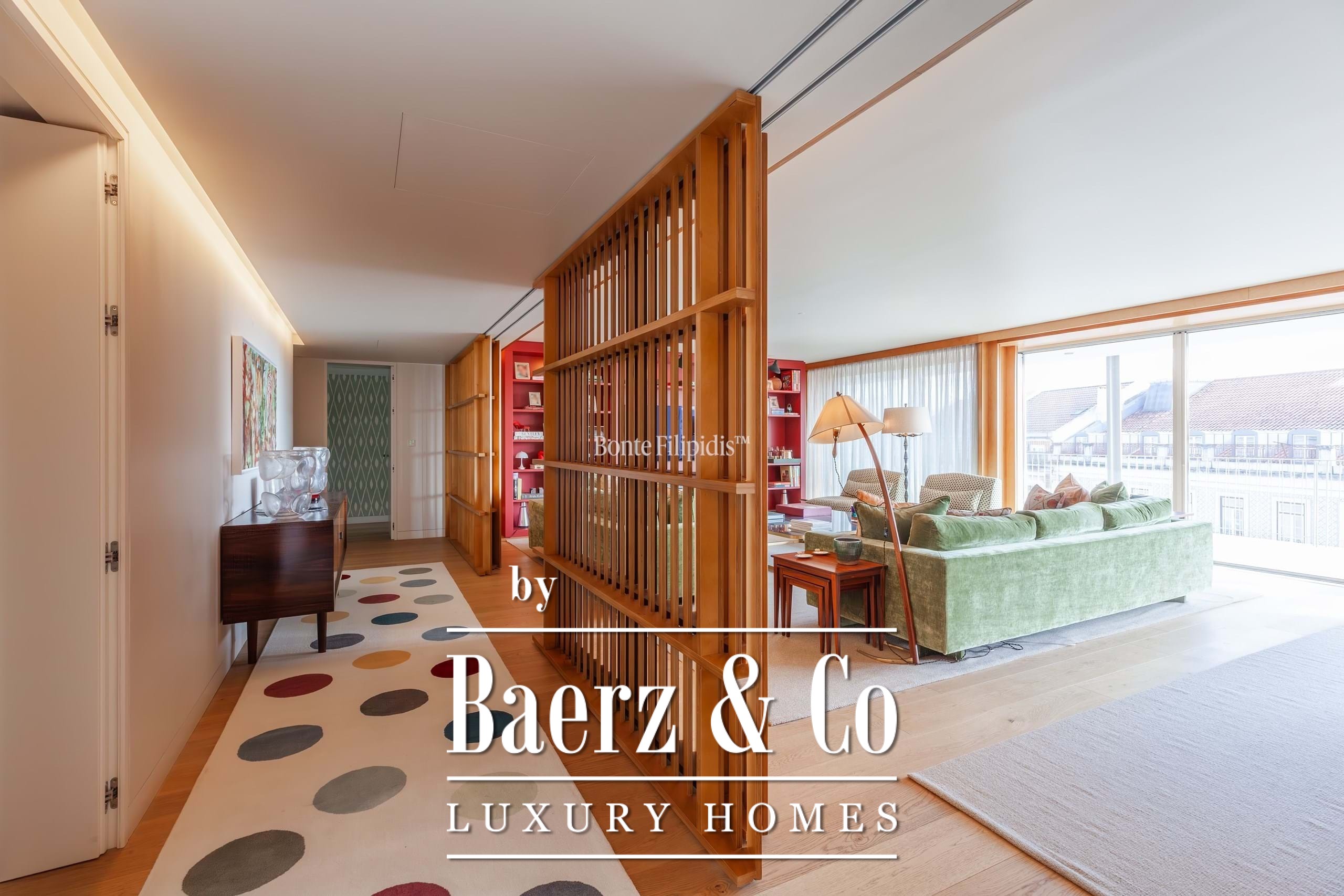 Apartment Estrela Lisbon is set in the creative enclave of Santos, known for its energy and riverside allure. This four-bedroom residence offers 248 m² of living space, where refined design and light are constant companions. A 46 m² private terrace, oriented south, connects interior and exterior, framing panoramic views of the Rio Tejo, Cristo Rei, and Largo de Santos, and offering sunlight throughout the day.