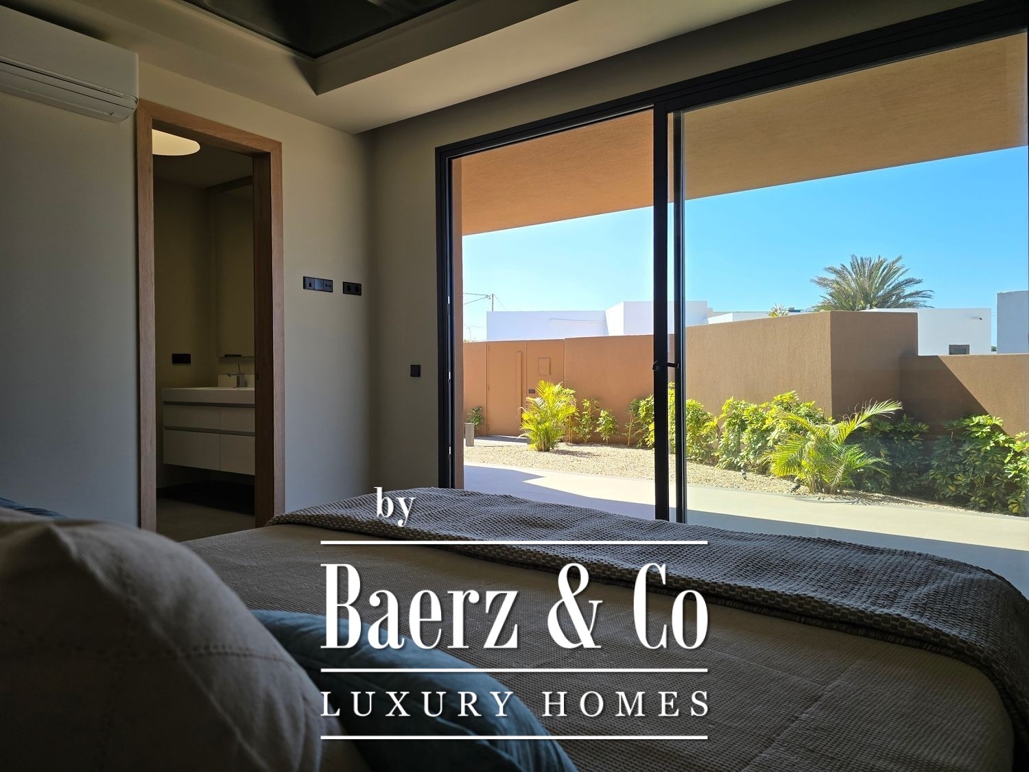 Outside, a private swimming pool is framed by manicured gardens, creating a calm setting for repose or entertainment. Two parking spaces complete the ensemble. Villa Fuerteventura is thoughtfully designed for comfort, discretion, and a seamless lifestyle where every detail is purposeful.
