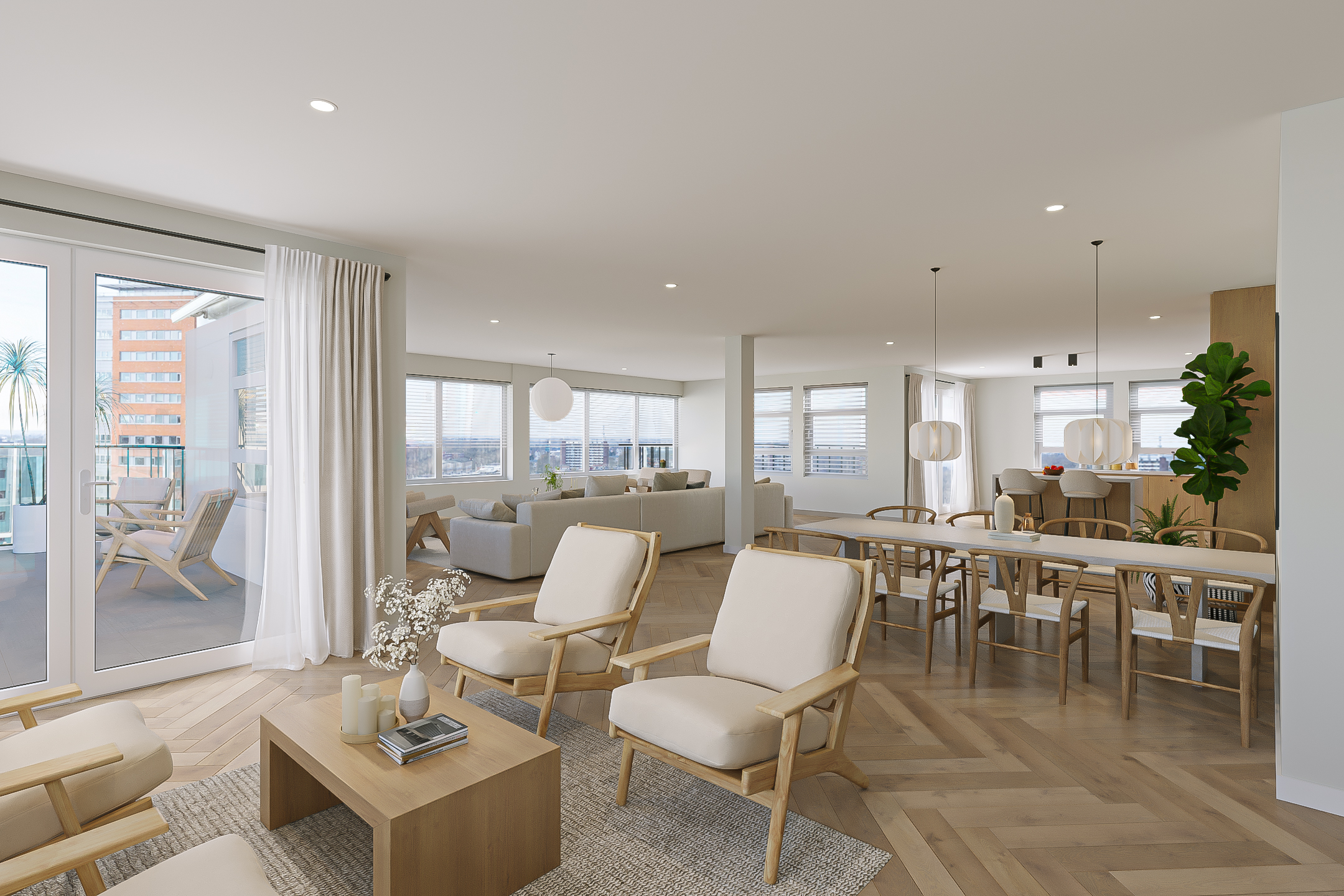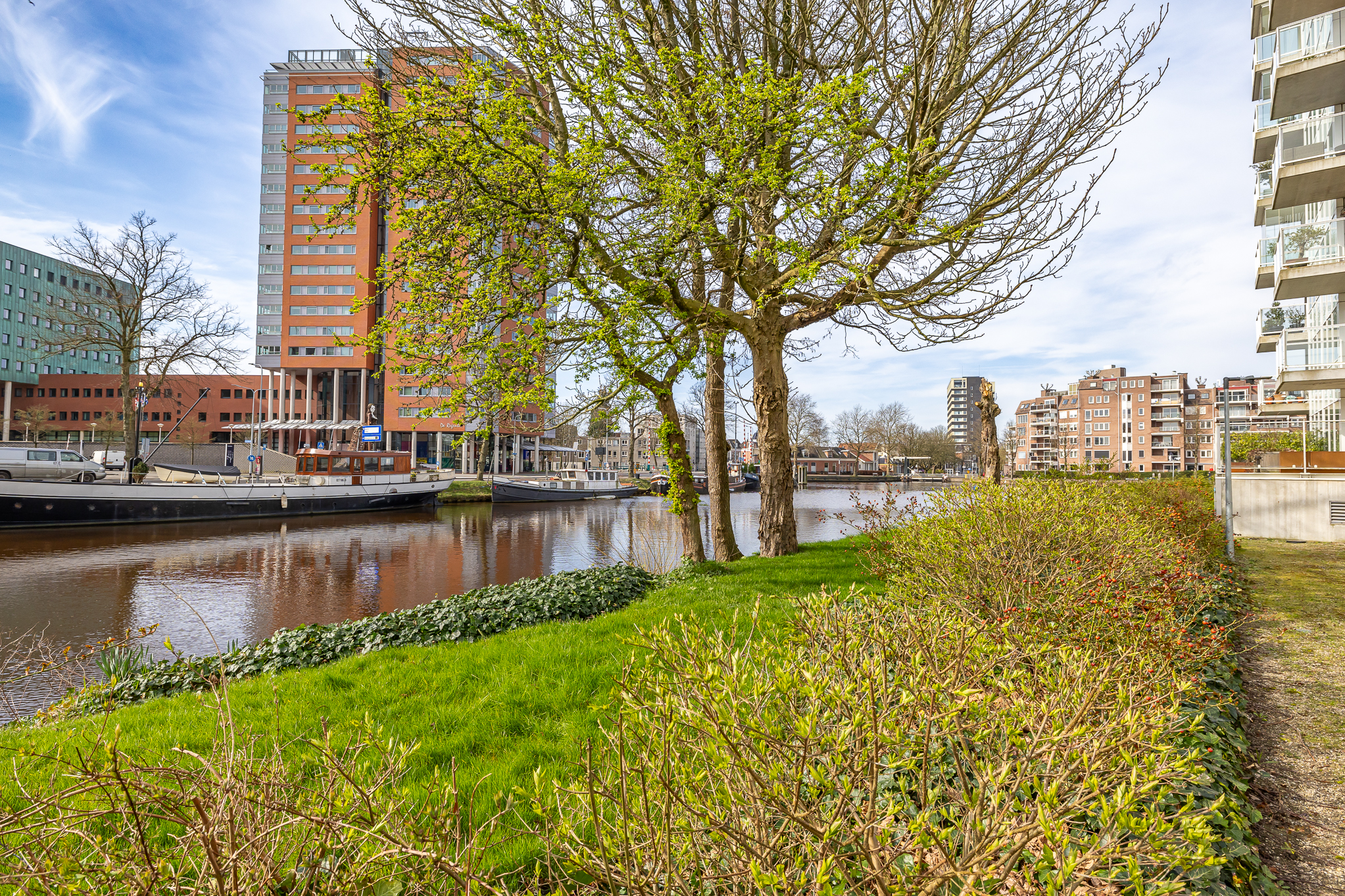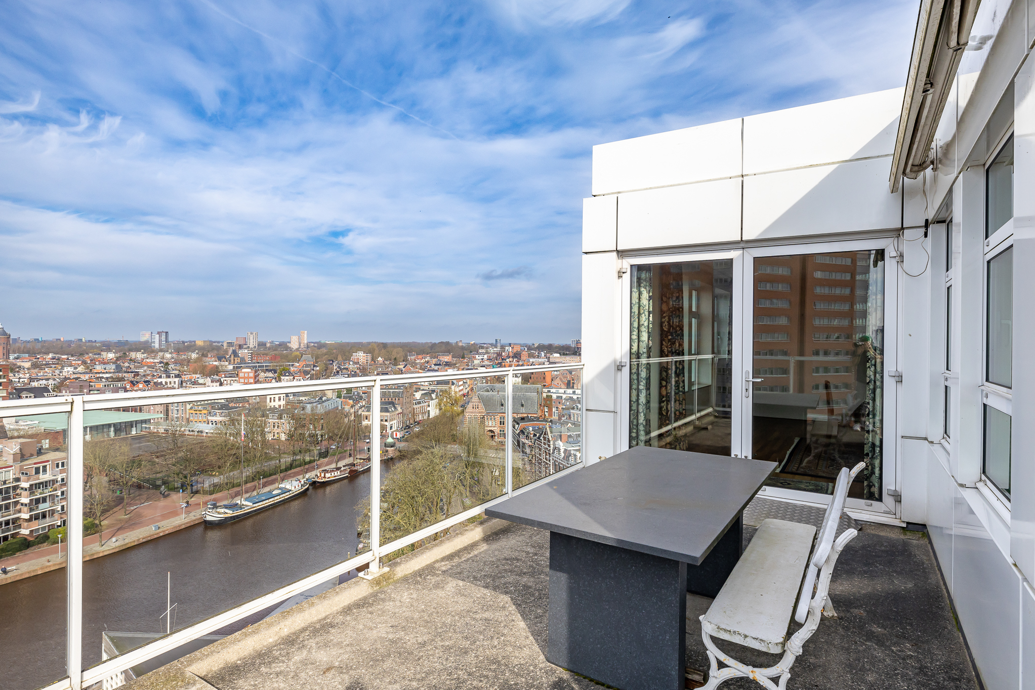 Penthouse Groningen is a rare residence offering refined urban living at the edge of the city’s historic heart. This exclusive penthouse provides 263 m² of living space, where floor-to-ceiling views extend over the Verbindingskanaal, the Zuiderhaven, and the tree-lined Praediniussingel. The property’s distinctive design, achieved by uniting two penthouses, creates a spacious layout with four bedrooms and two bathrooms, including features such as a whirlpool, sauna, and steam cabin.