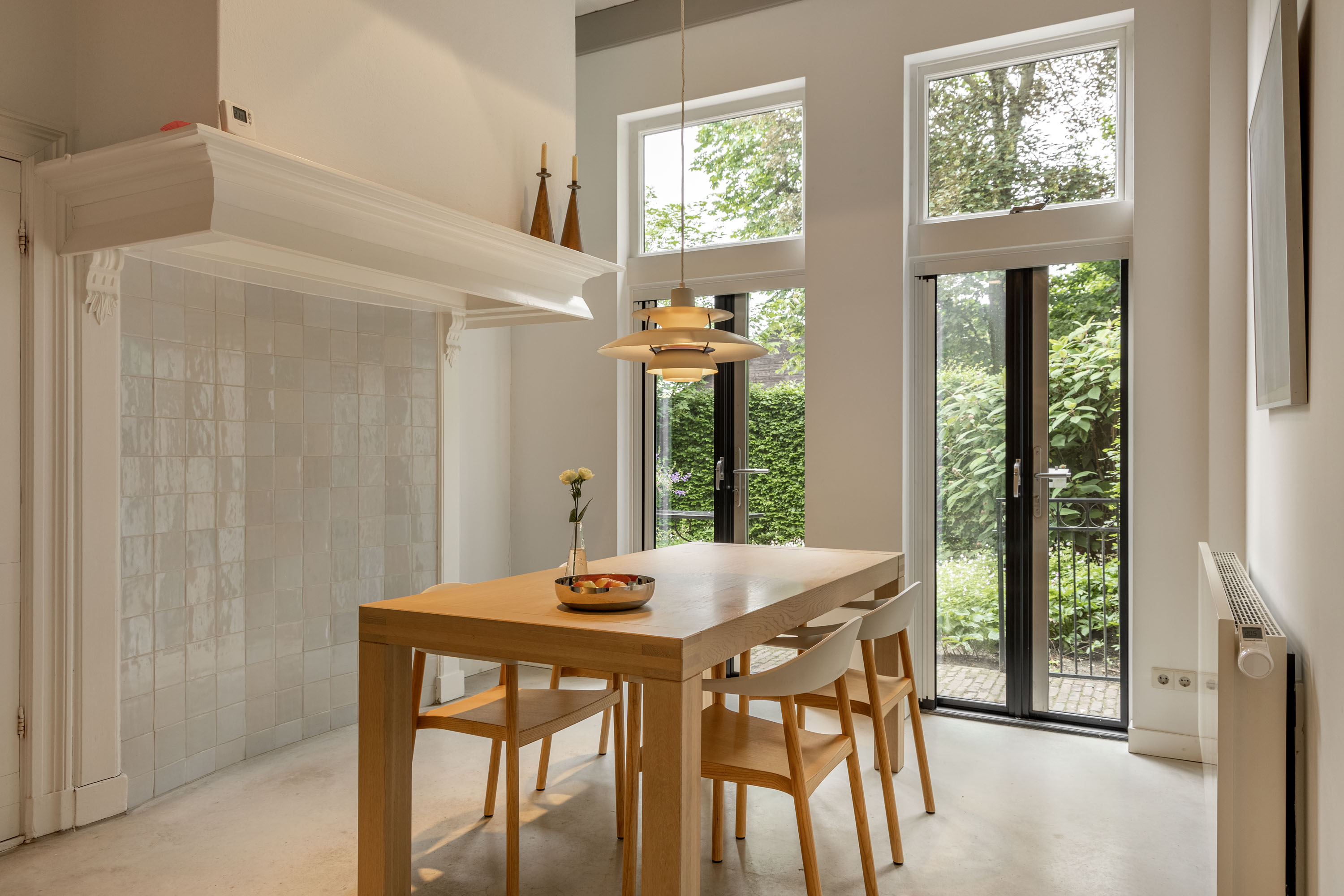 Woonboerderij Haaksbergen stands on the edge of the hamlet of Honesch, commanding wide countryside views and surrounded by established greenery. This extensively renovated farmhouse spans a living area of 428 m² on a 10,000 m² plot, integrating authentic 1915 details with considered modern interventions throughout. The light-filled living area, once an original barn, features restored beams and high ceilings anchored by a contemporary kitchen finished in high-gloss white. The rhythm of stone, glass, and preserved wood merge comfort with provenance, creating spaces for both quiet retreat and convivial gathering.