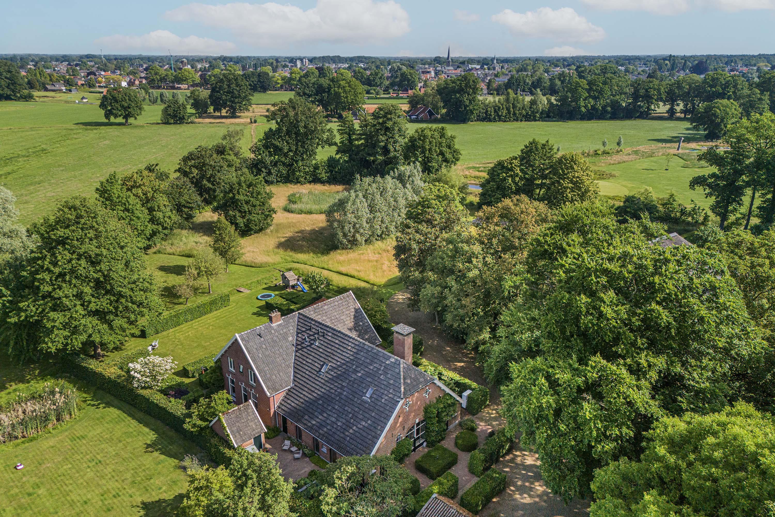 On a prime location just outside Haaksbergen, nestled in greenery with a phenomenal view over the countryside toward the village edge, lies this beautifully renovated, spacious farmhouse with several outbuildings on a plot of approximately 1 hectare.