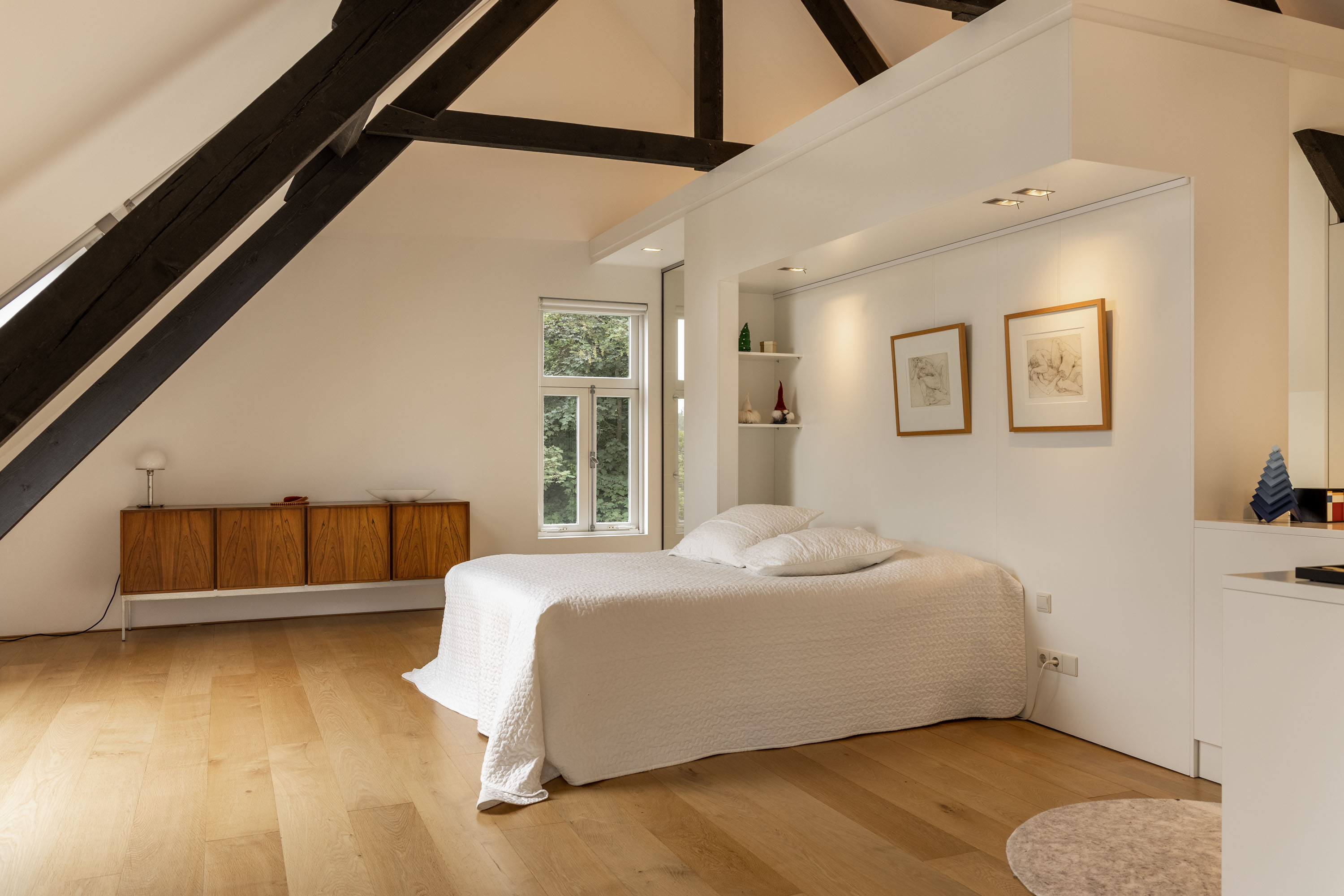 After the agricultural function of the farm was discontinued this farmhouse, built around 1915, was used for a time as two residential units. Through an architect-led renovation, these were combined into a stunning residence where authentic elements are beautifully integrated with a modern layout and design. Old beams, high ceilings and partially original floors, combined with modern features such as a contemporary kitchen, a unique master bedroom and sustainability measures like 28 solar panels, a hybrid heat pump, and partial underfloor heating ensure a charming and comfortable living experience. The farmhouse has an energy label A, with a living area of 428 m² and a volume of 1,748 m³.