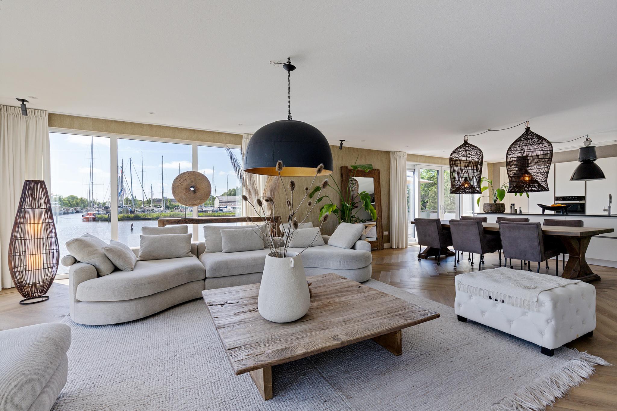 The west-facing sundeck, accessible from the open kitchen, provides a sheltered spot to enjoy life on the water. It’s the perfect place to sit back and watch boats pass by. A spacious private berth alongside the villa accommodates a sailing or motor yacht. The location lies directly on the Standing Mast Route, with access to the open sea and the Frisian Lakes.