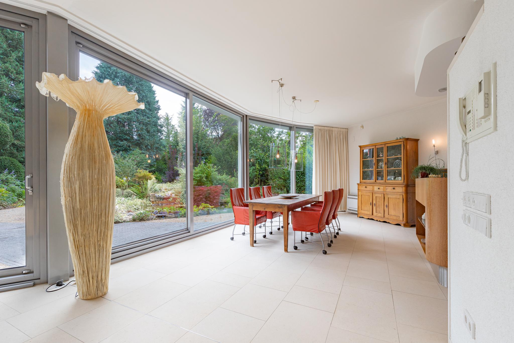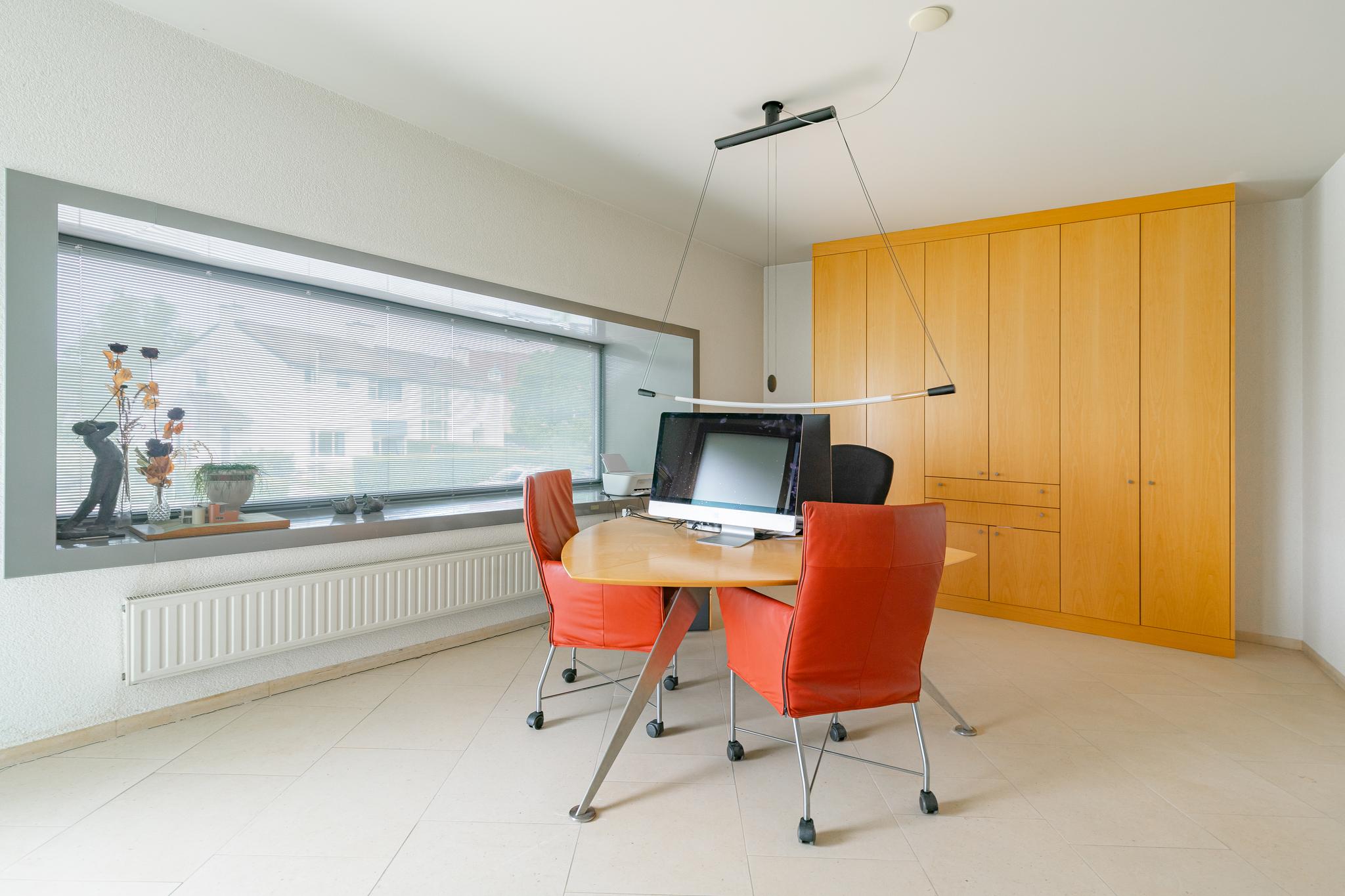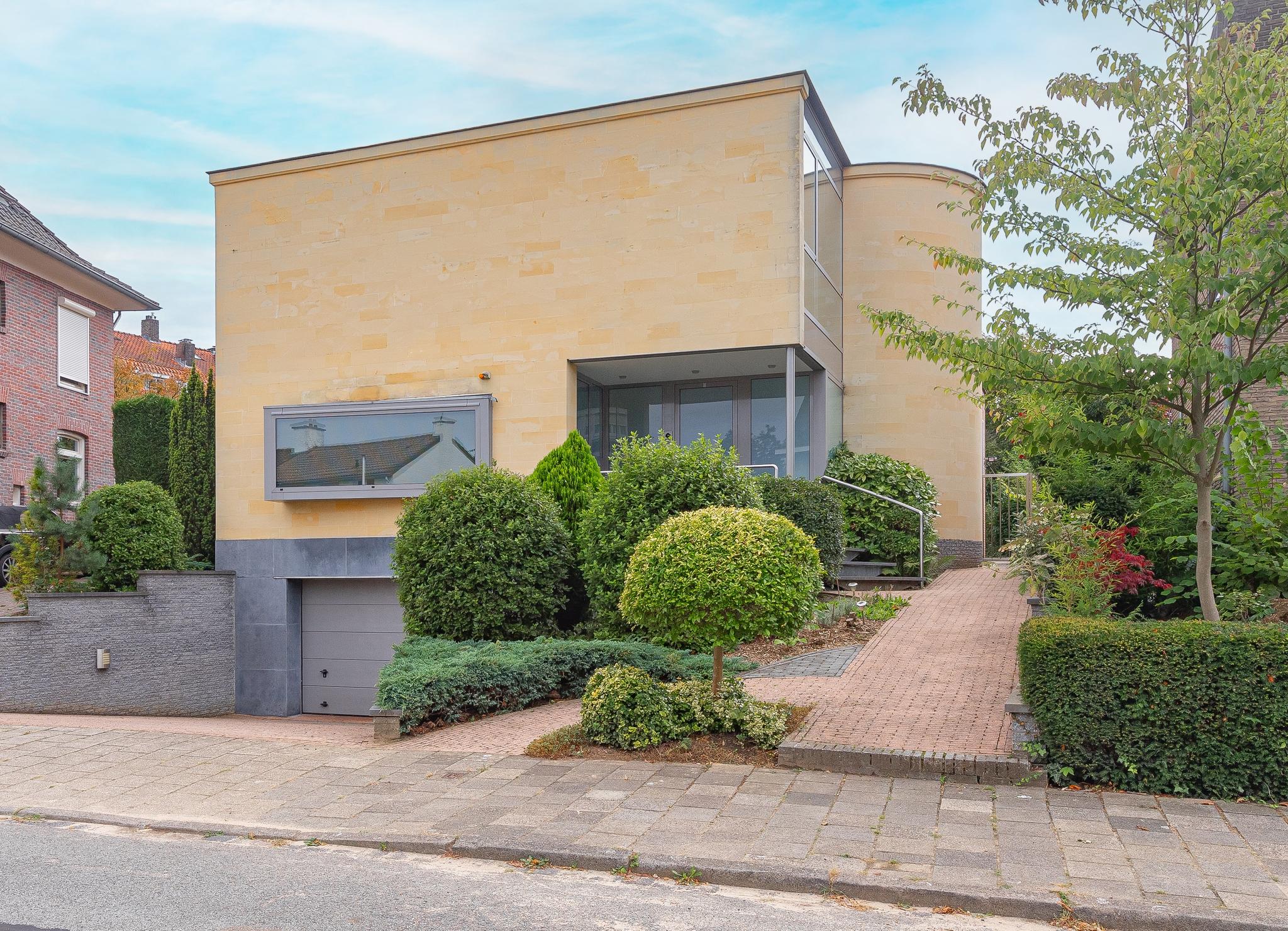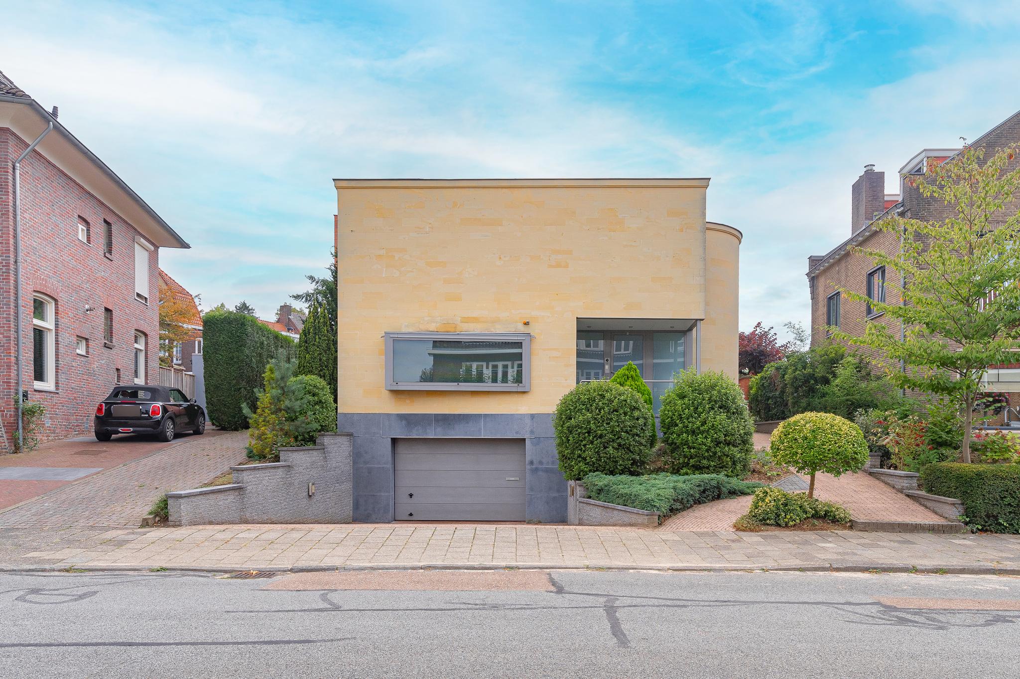A great location, just steps away from downtown with (secondary) schools and nature within walking distance in Heerlen South we offer under architecture built detached villa, to a design by architect Frans de Leij. The villa was built in 2000 and finished with durable and high quality materials. The front facade of the house has 15 centimeters thick marl stone.