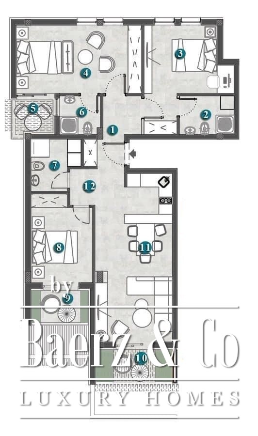 Apartment Herceg Novi stands as an invitation to experience life along Montenegro’s Adriatic coast. This refined 89.85m² apartment is situated just 100 metres from the sea and offers sweeping views of both water and mountains, connecting everyday living with timeless scenery. Within the thoughtfully planned living space are three bedrooms, three bathrooms, and an open living area anchored by a kitchen and dining table. Three generously sized terraces bring fresh air and Mediterranean light throughout the space, while quality materials such as finished tiles and floors ensure a sense of lasting comfort.