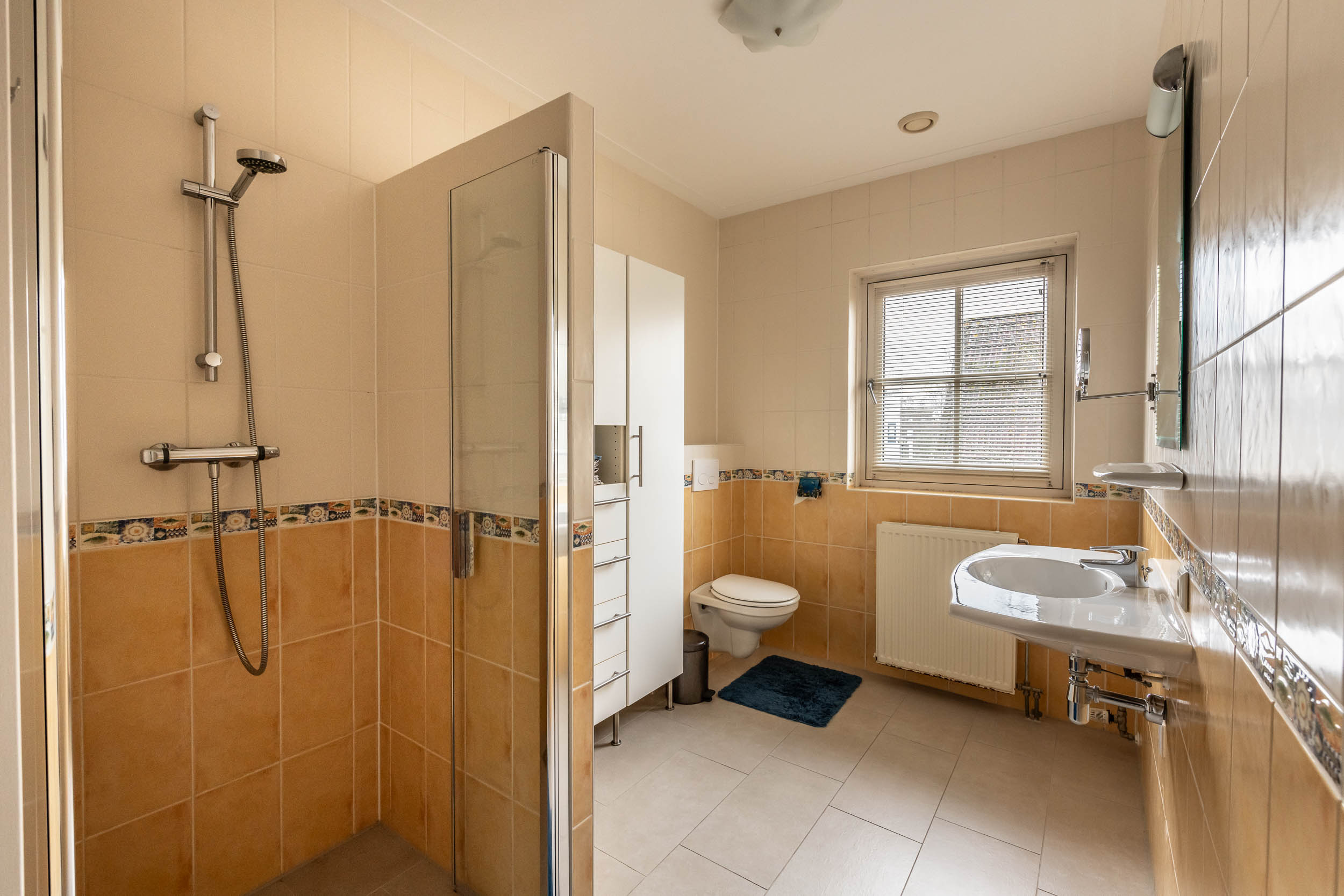 Ground floor: Entrance, large L-shaped hall with wardrobe and WC. From the hall, access is provided to the garage on the right and the living room on the left. At the front of the house are the dining room and a dedicated office space. Through the sliding doors of the dining room, you enter the rear of the house, where a cosy sitting room features a gas fireplace, a wide wall of built-in cupboards, and double doors opening onto the backyard. The spacious, modern SieMatic kitchen is open to the living room and features a large cooking island equipped with a built-in teppanyaki plate and an induction wok, along with additional features. One wall is fitted with a range of modern kitchen appliances. The utility room, accessible from both the garage and the kitchen, is equipped with a washing machine connection and a kitchen unit with a sink. The double French doors open onto a beautiful, spacious garden featuring a partially covered terrace, multiple seating areas, and a stylish garden shed.