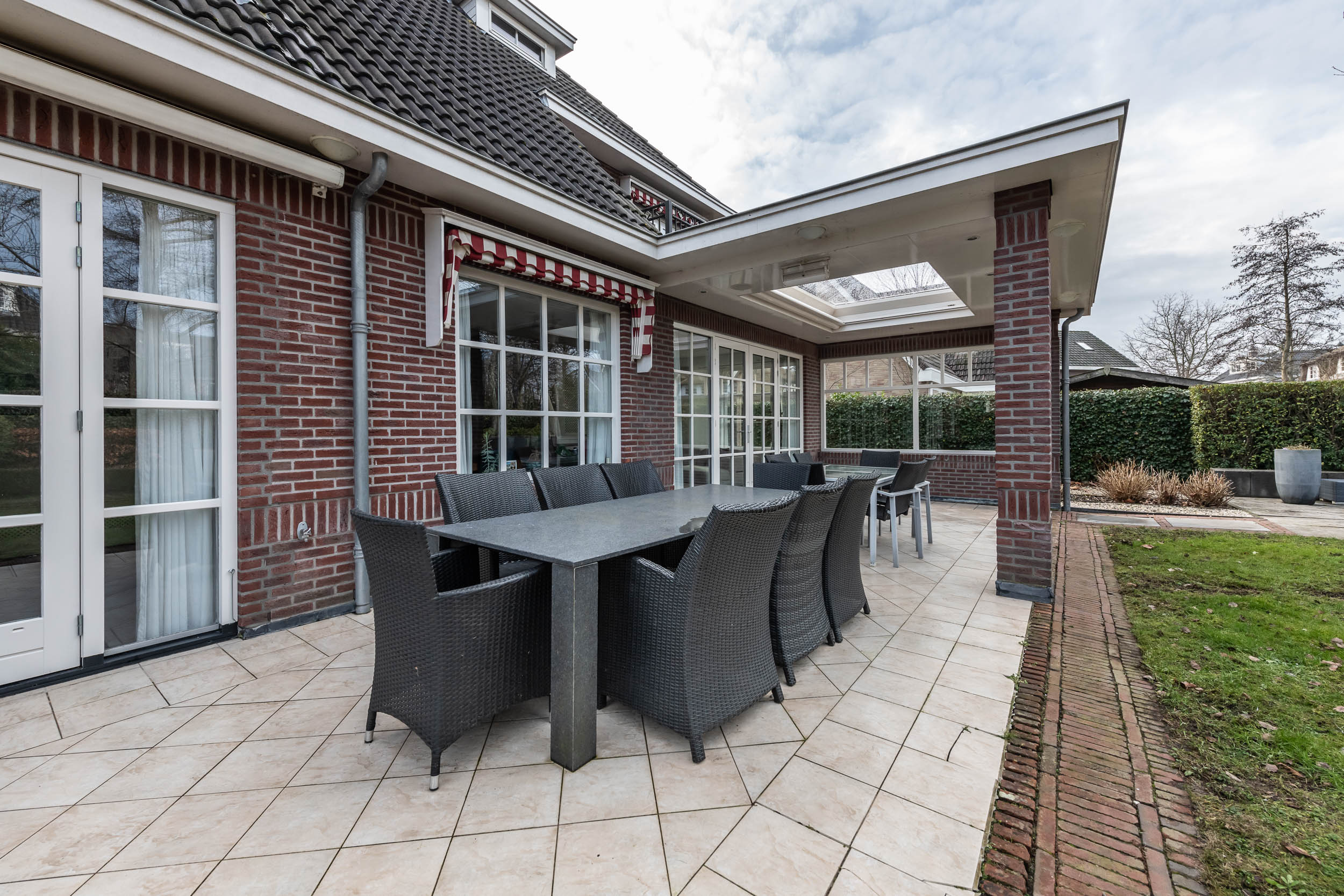 This unique villa was built in 2003 using traditional methods and high-quality materials. The villa features a front garden with a private driveway leading to the spacious double garage, while the rear offers a beautifully landscaped garden with multiple terraces and a partially covered veranda equipped with patio heating.
