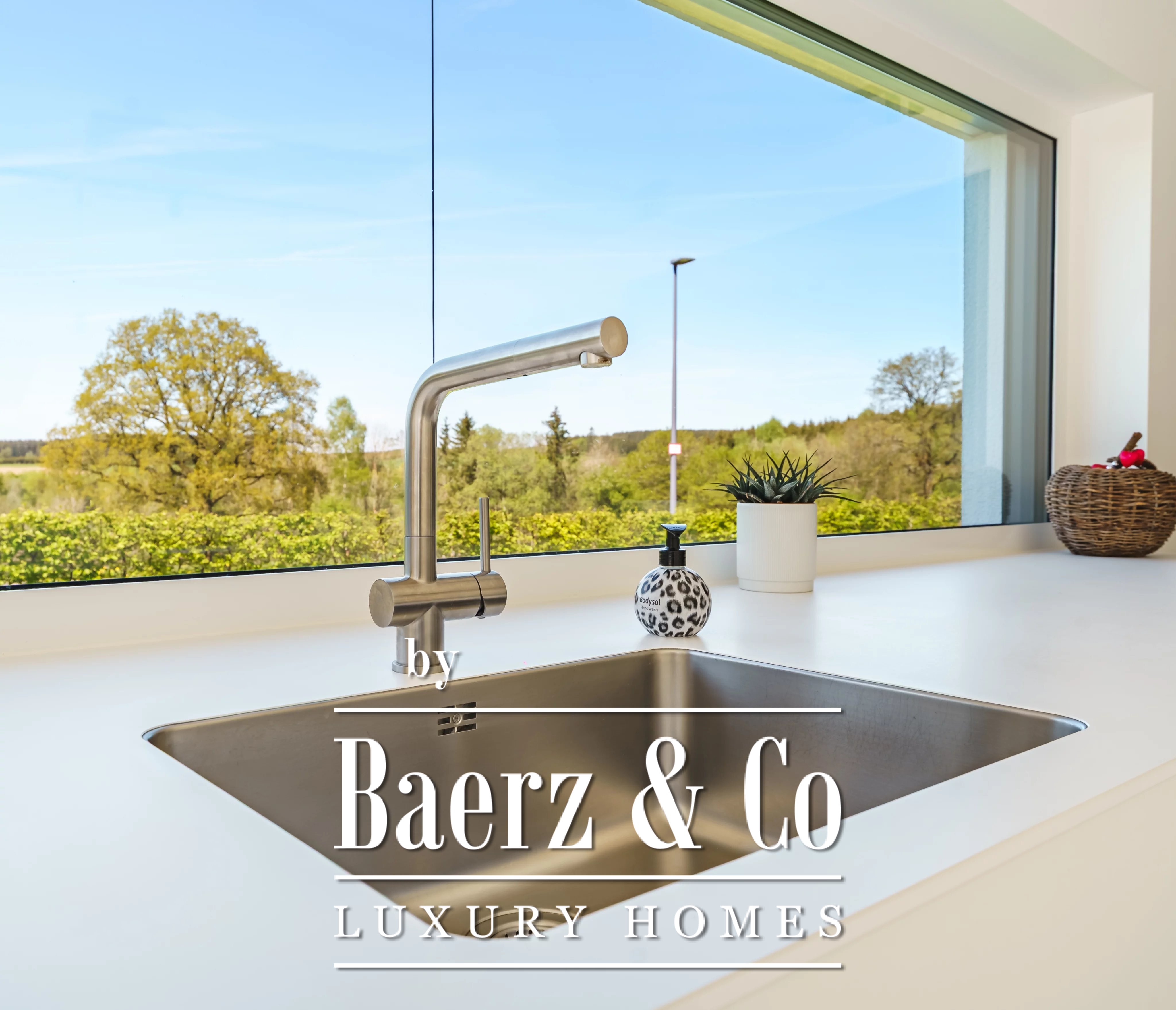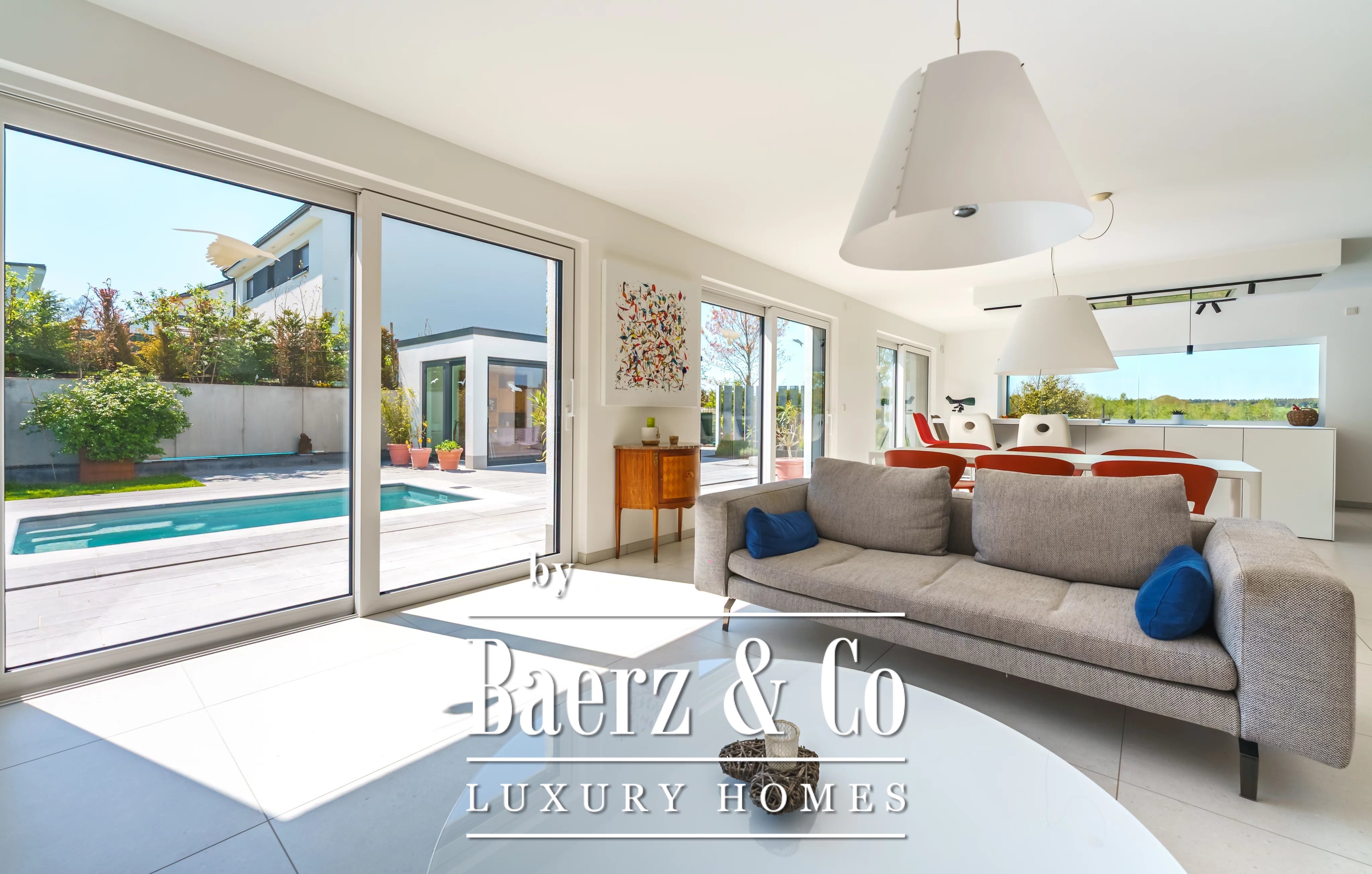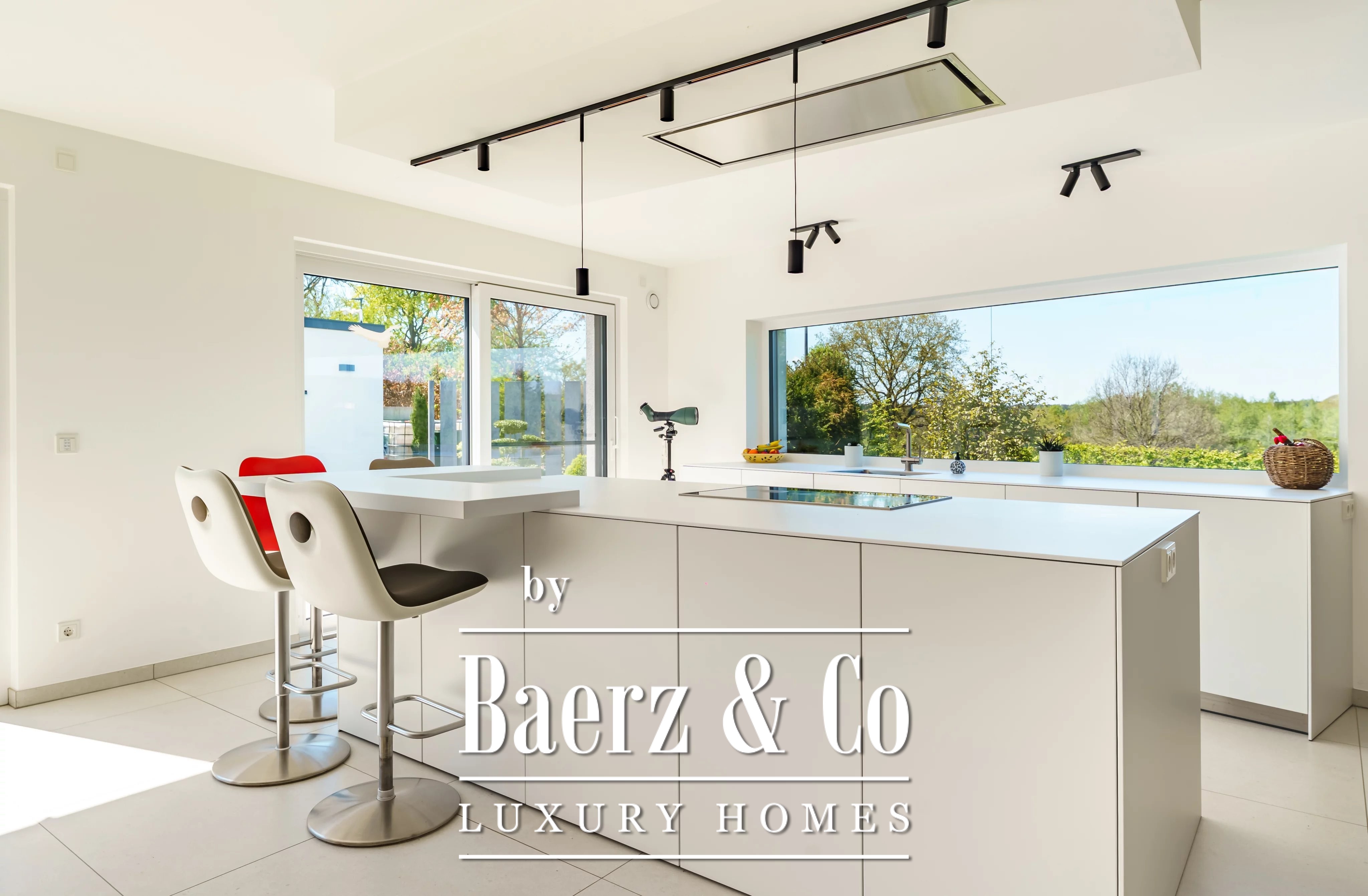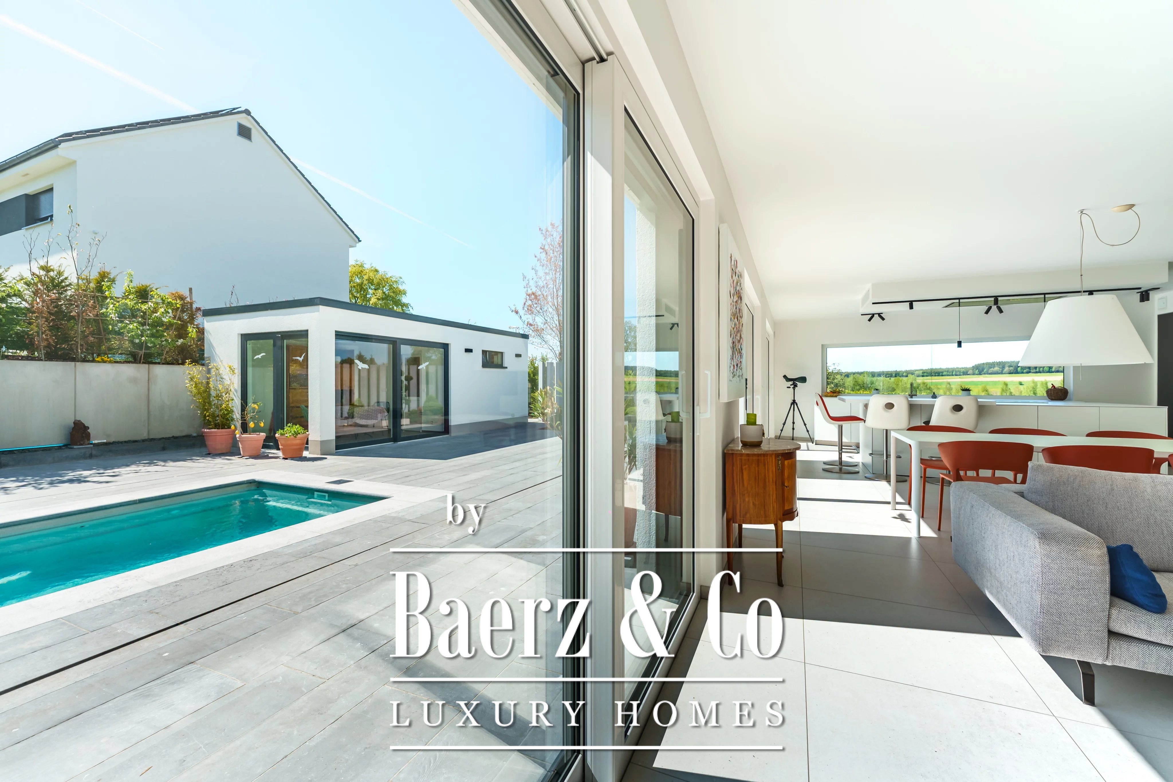 Immopartner offers a sleek, upscale villa with swimming pool and exceptional view of a Natura 2000 area.