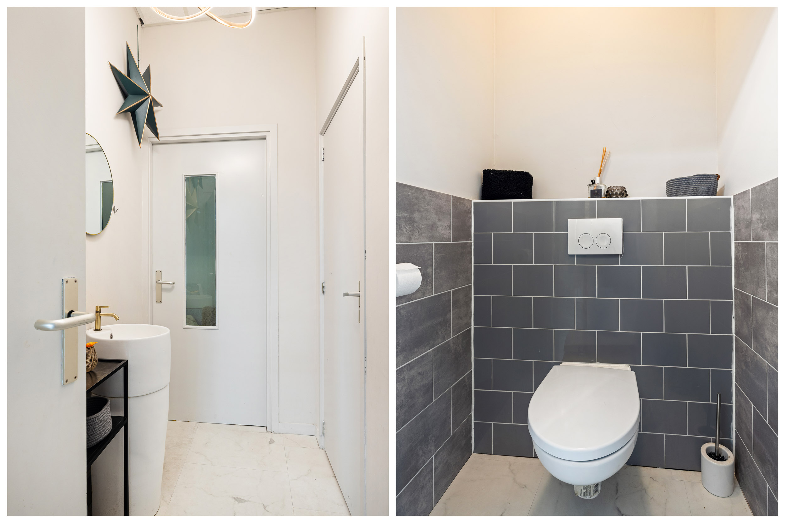 Via the left entrance, or internally through the central hall, you reach a 77 m² multifunctional space equipped with a professional kitchen, utility room and storage, a garden-facing room, and a modern double restroom with adjacent bathroom. With its current layout, double house numbers and mixed-use zoning, the property offers countless possibilities for living, working and entrepreneurship.