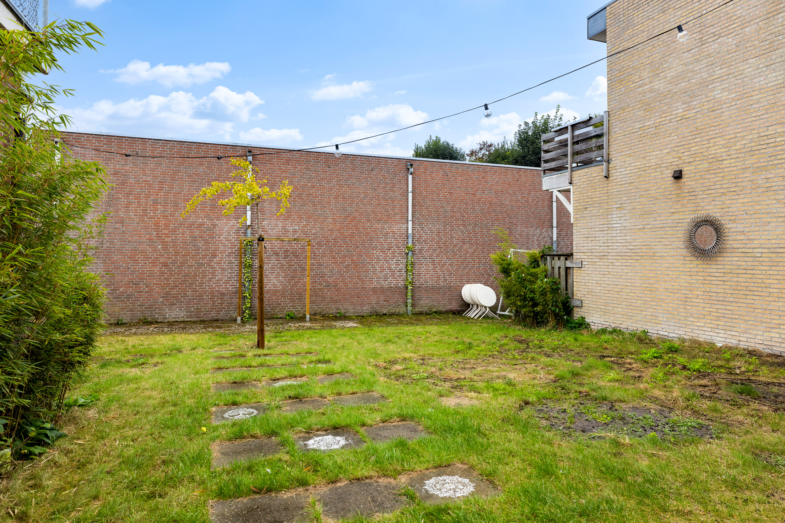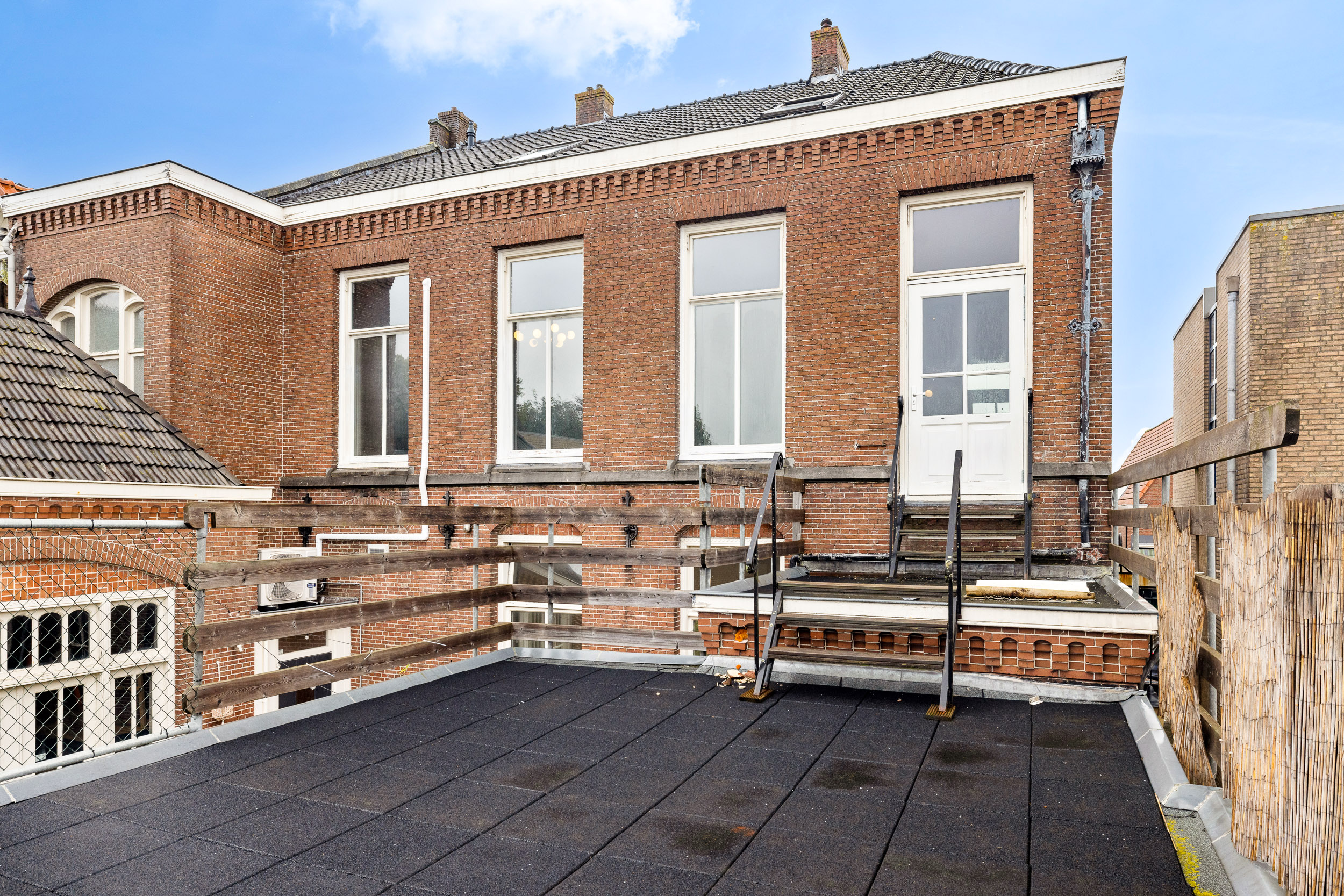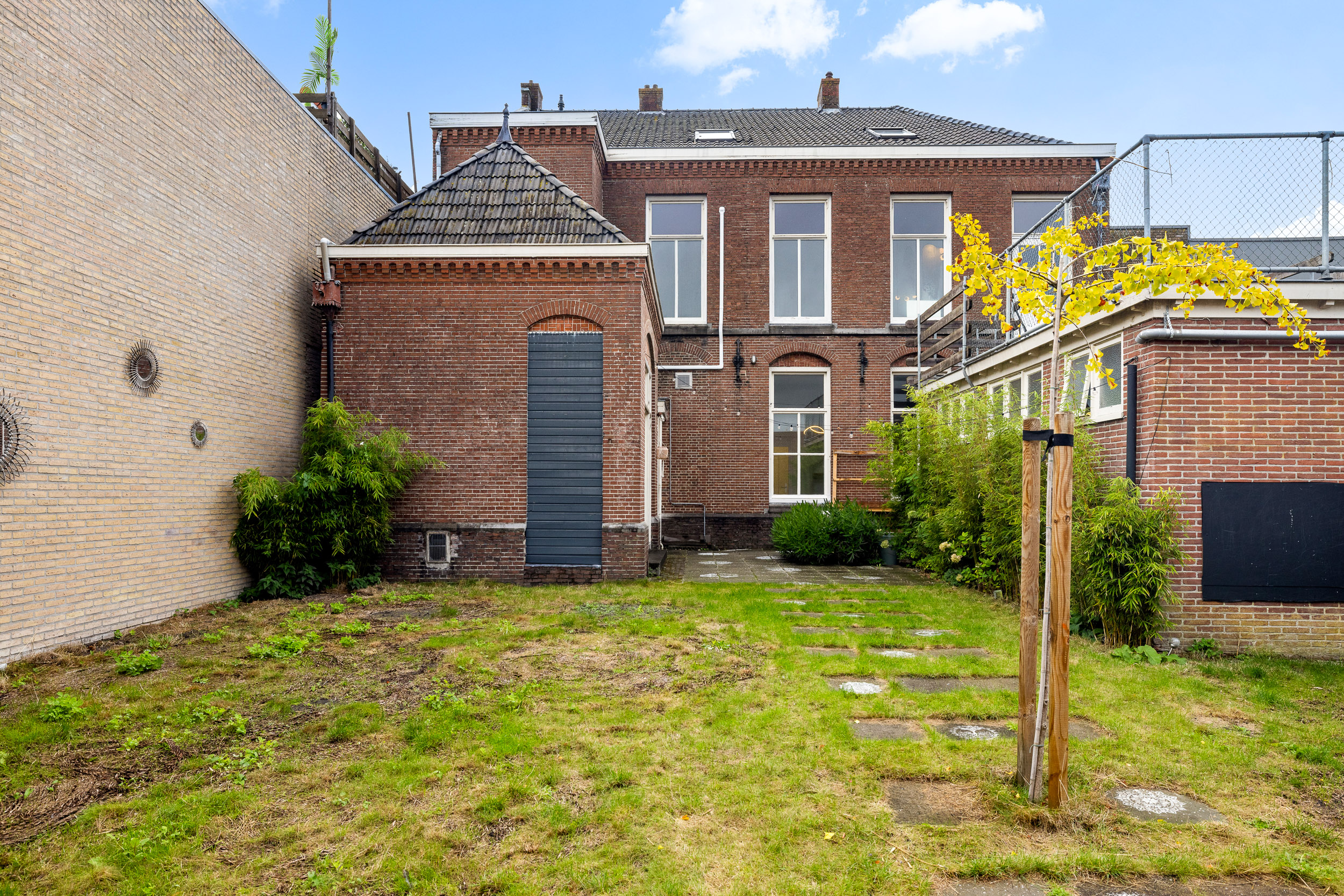 Behind the property lies a sunny, deep, south-facing garden, a green oasis in the centre of Joure, where peace and privacy prevail. The garden has a right-hand rear entrance leading to the parking area and a left-hand rear entrance connecting to the shopping street.