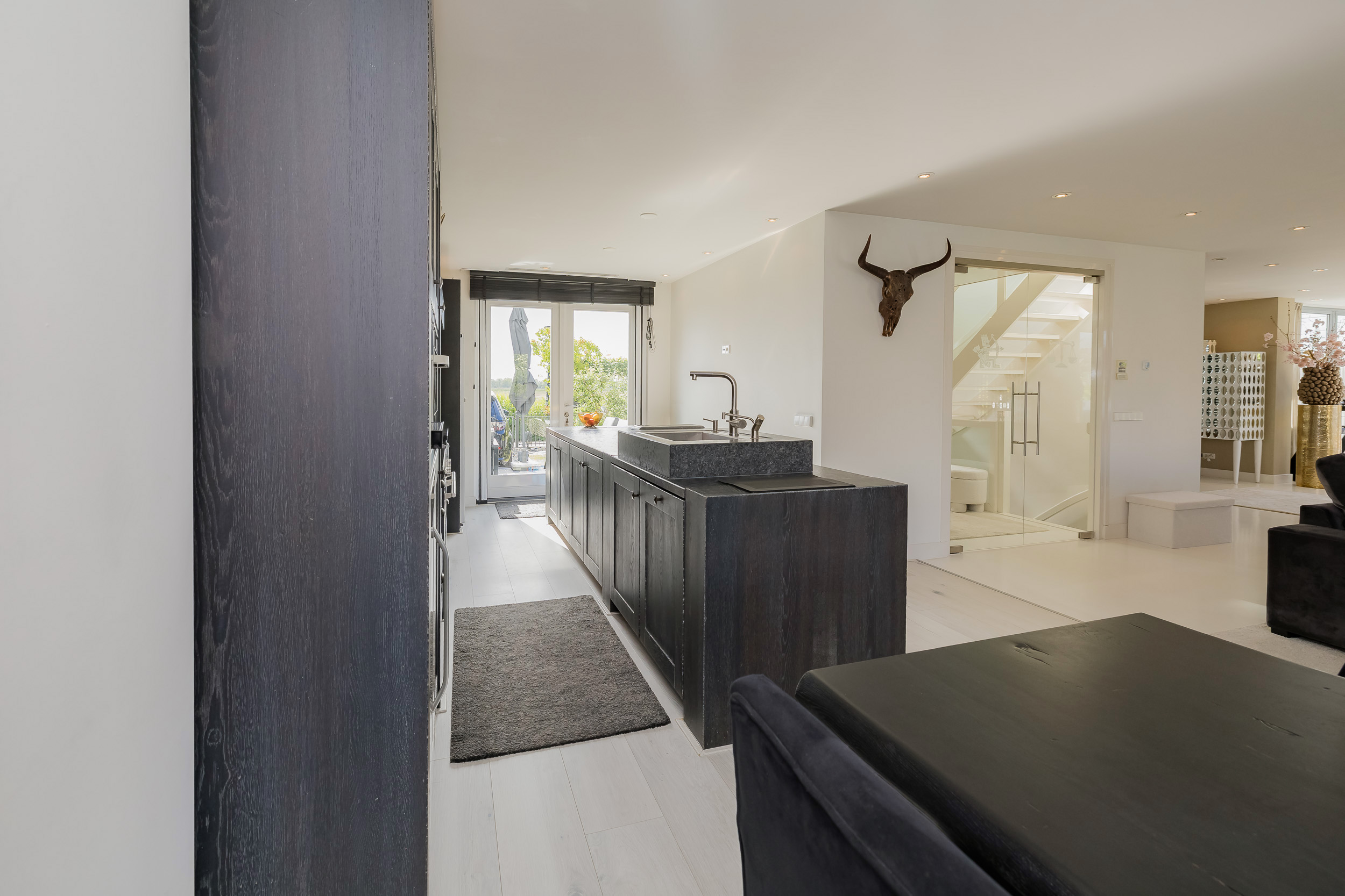 The home features three spacious bedrooms and two modern bathrooms, ideal for a family or guests. All around there is a beautiful view over the meadows or the water. Everything is stylishly decorated with an eye for detail and comfort.