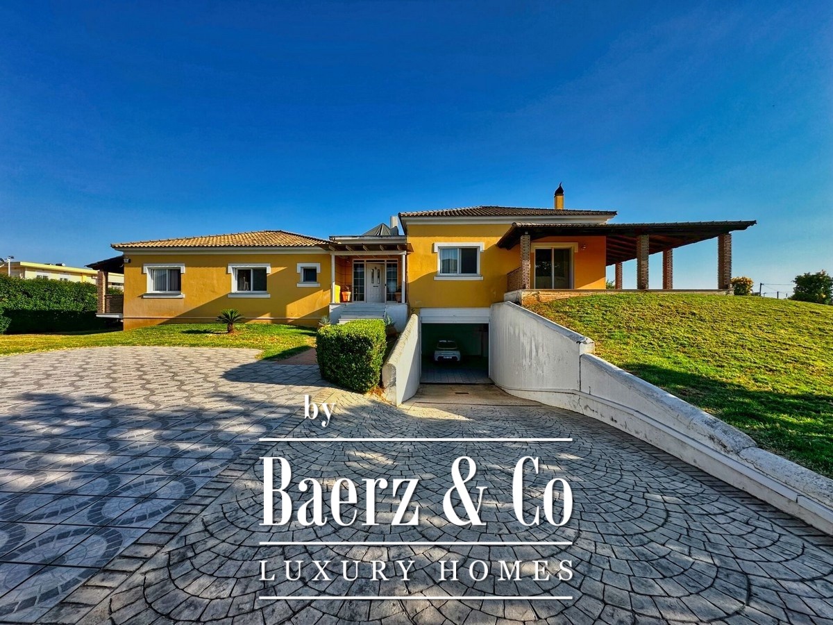 Outdoors, a covered barbecue area and meticulously landscaped gardens offer room for retreat and gatherings. The property remains energy-autonomous through advanced photovoltaic panels, batteries, and state-of-the-art climate solutions, supporting both comfort and efficiency. With a closed garage for five vehicles, security alarm, double glazing, and contemporary heating systems, this luxury villa for sale in Kalamata offers privacy, modern design, and direct access to the Ionian coastline.