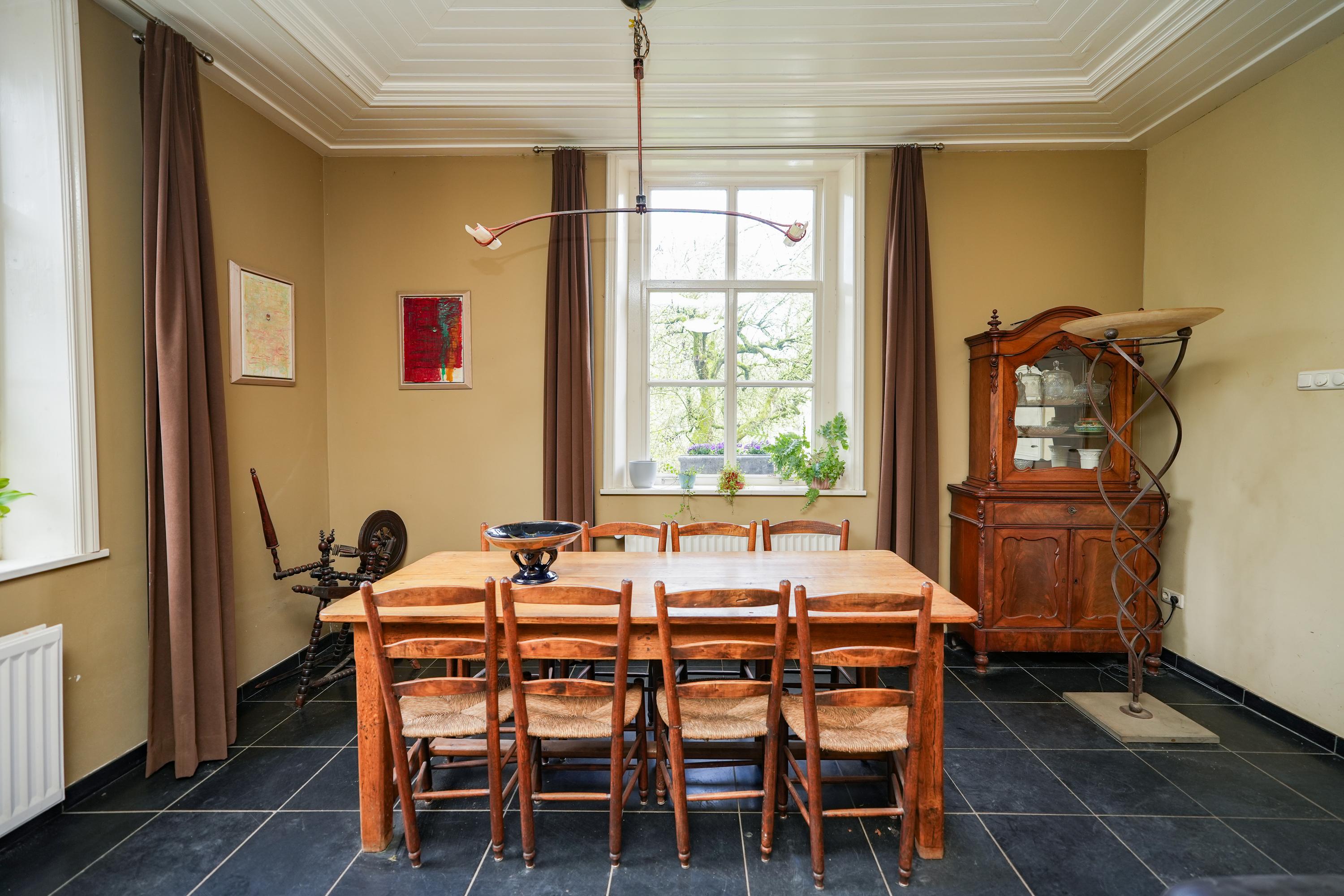 Neoclassical mansion Kekerdom is a rare residence that blends architectural heritage with the serenity of protected landscape. This former rectory, originating circa 1850, stands as a monument and underwent a complete renovation in 2007, with the elegant glass conservatory updated in 2024. Set on an expansive 4,200 m² plot, the mansion features a living area of 387 m² and combines ten rooms that offer flexibility, privacy, and a sense of grandeur rarely seen.