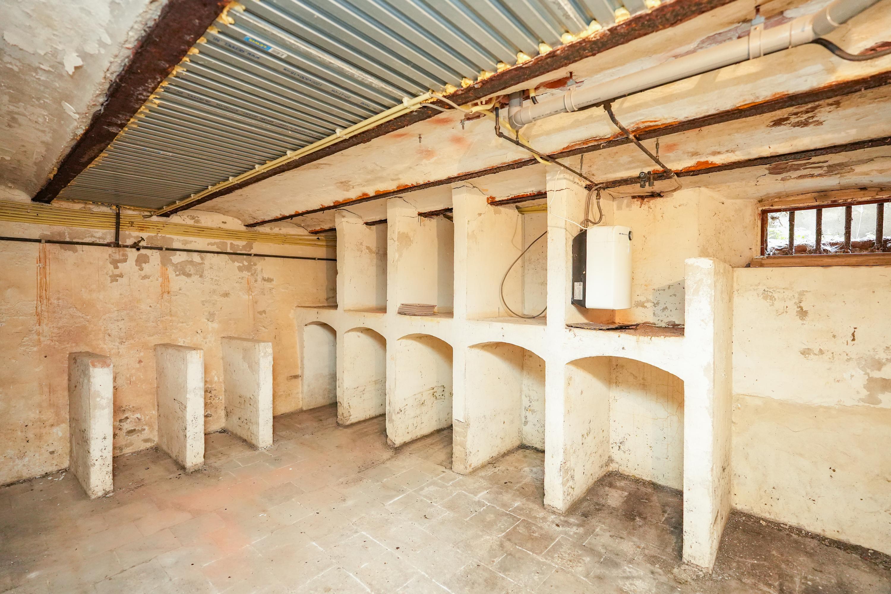 On the ground floor, two refined living rooms open to light and garden through original sliding doors, accentuated by natural stone flooring and underfloor heating. The kitchen, fitted with a classic AGA, integrates seamlessly with outdoor terraces, while the adjacent utility spaces and bedroom suite add versatility—ideal for guests or home office needs. Upstairs, five generous bedrooms provide ample room for living or working, supported by a renovated bathroom suite with underfloor heating. Additional spaces include a cellar, outbuildings such as a former stable, and a separate barn in the orchard. The original composition is complemented by technical updates: monument glass, ecohome-controlled floor heating, and updated heating systems, delivering discreet comfort for modern living.