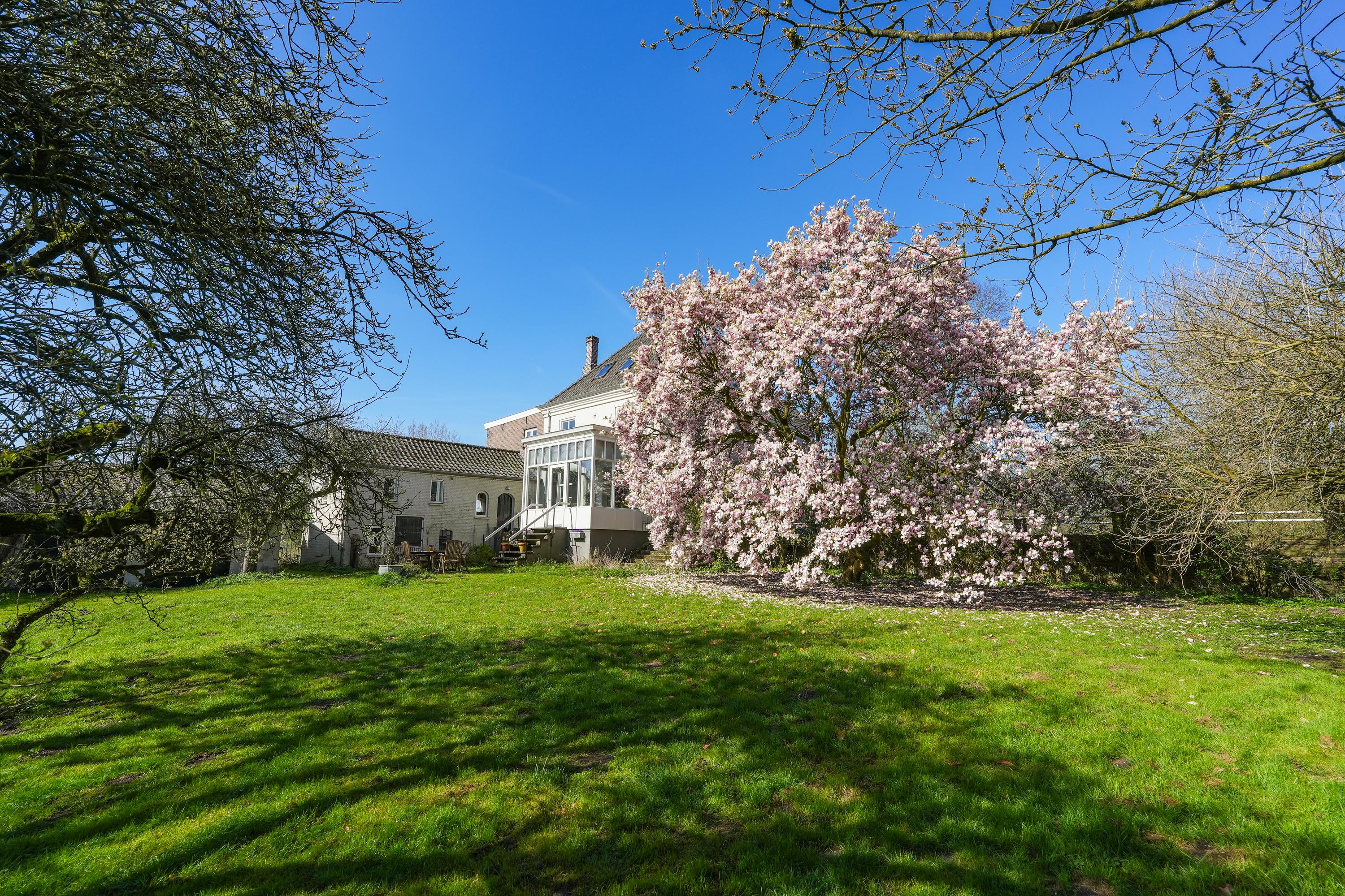 The property is defined by its connection to nature: views reach toward the iconic Sint-Laurentiuskerk on one side, while the opposite aspect opens to wild meadows where horses, cattle, and nesting storks add to the setting’s authenticity. Historic village life and sweeping river landscapes coexist here, creating a unique residential atmosphere. The old orchard and wild garden, complete with private water, further enhance the experience of space and tranquility.