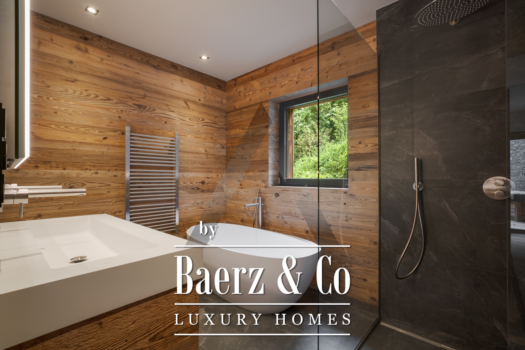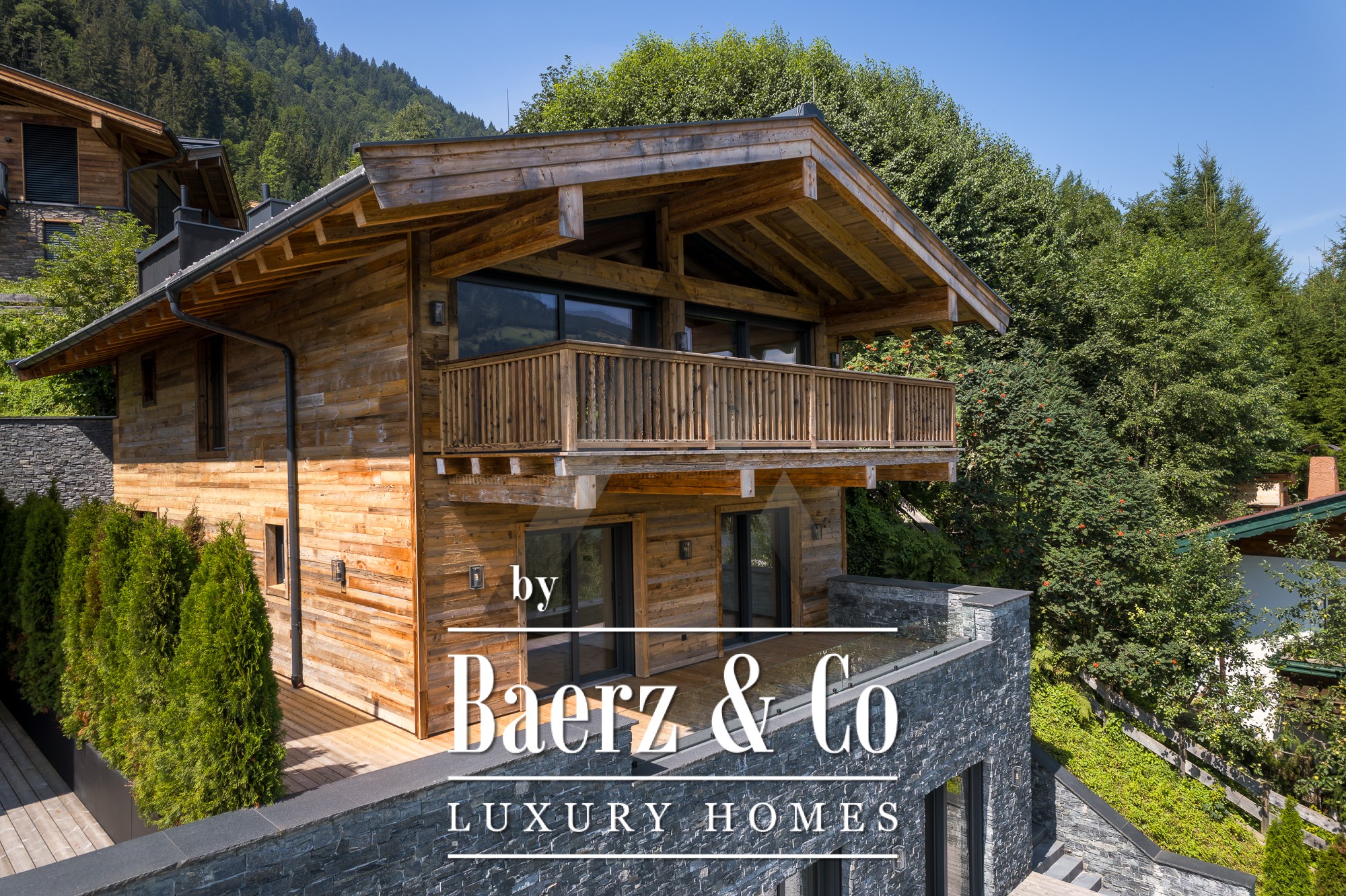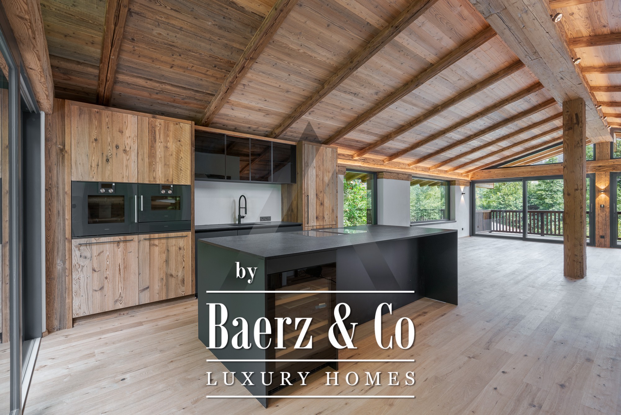 Chalet Kitzbühel with panoramic mountain views offers a modern interpretation of classic alpine design, set against the dramatic backdrop of the Kitzbühel mountains. This residence creates a personal retreat with privacy, distributed over approximately 230 m² of living area and complemented by a generous terrace of 135 m² and an easy-care garden. The property encompasses 3 bedrooms, 3 bathrooms and a guest toilet, each space characterized by traditional materials such as reclaimed wood, natural stone and solid wooden doors.