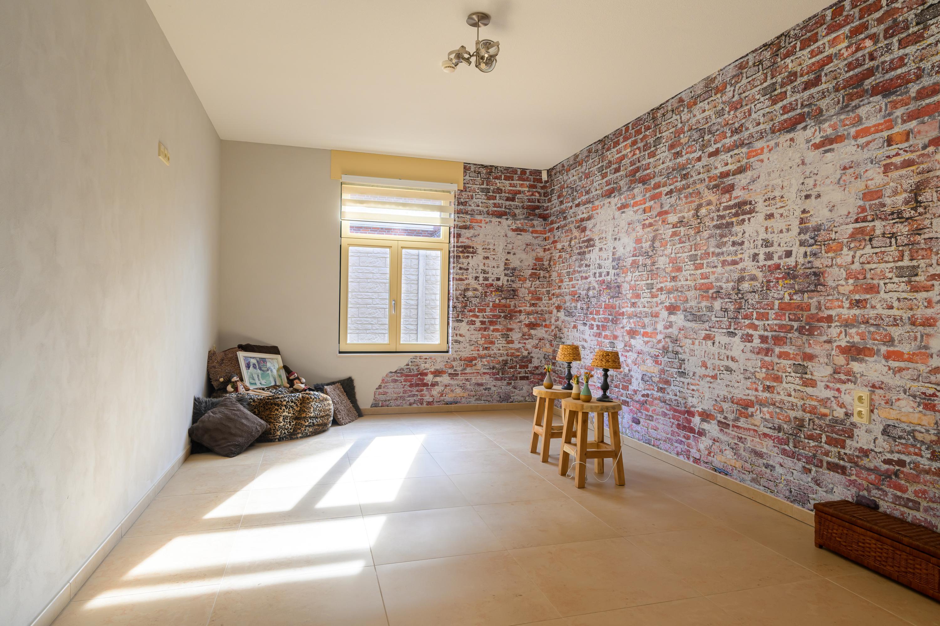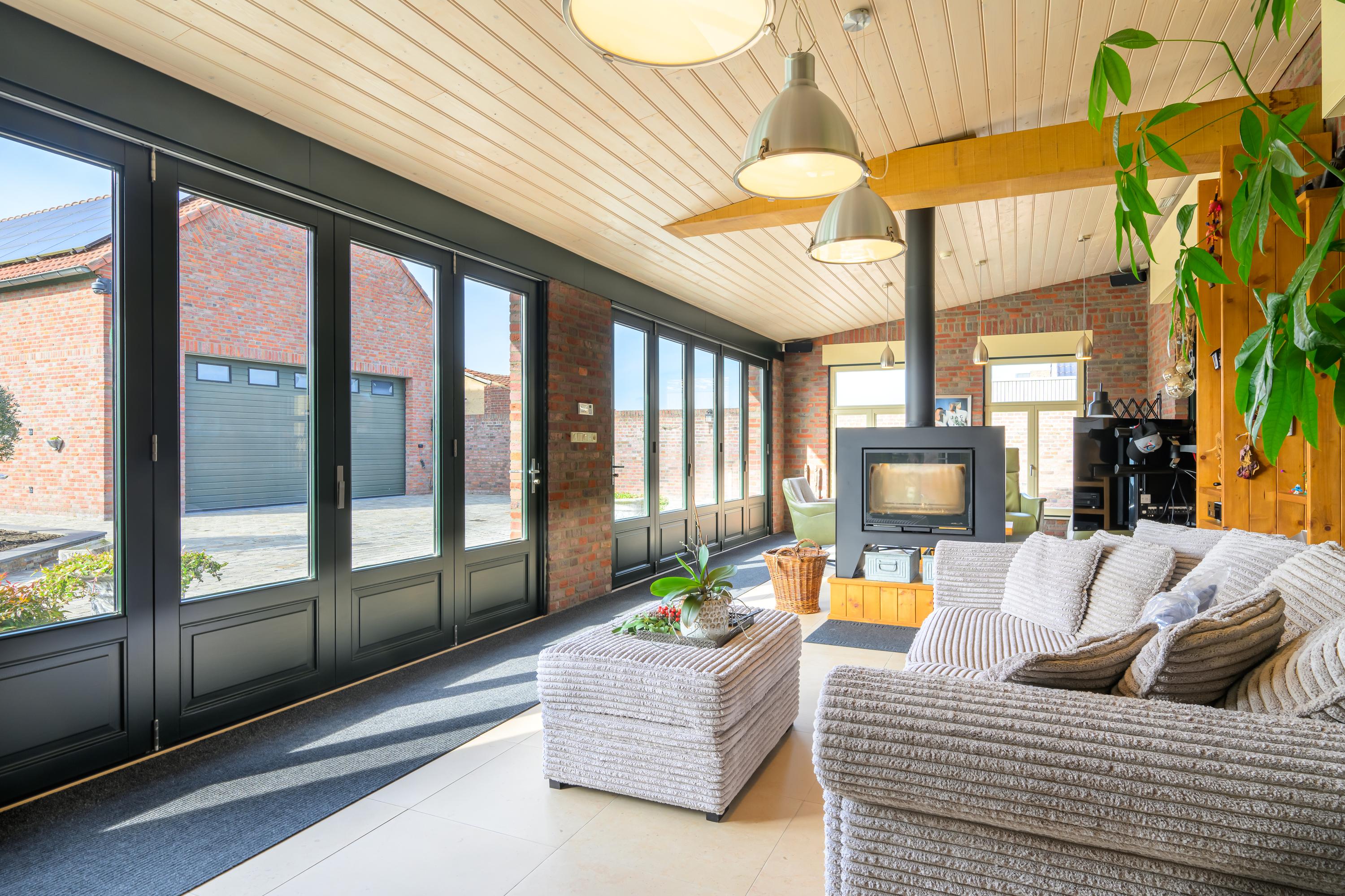Deze luxe afgewerkte woning is gebouwd in een U-vorm met een sfeervolle binnenplaats. Aan de linkerzijde ligt het woongedeelte. Bij binnenkomst in de royale hal valt direct de prachtige plavuizenvloer op, samen met de meterkast, trapopgang naar de eerste verdieping en een stijlvol toilet met fonteintje. Vanuit de hal komen we in de ruime woonkamer, gekenmerkt door strak gestucte wanden, inbouwspots en openslaande tuindeuren naar de binnenplaats. Warme kleuren, zachte stoffen en naturel materialen; allemaal ingrediënten die bijdragen aan een huiselijk 'ik kom thuis'-gevoel. Dit alles vind je zeker terug in deze prachtige woonkamer. Alles is netjes, maar vooral sfeervol en luxe afgewerkt.