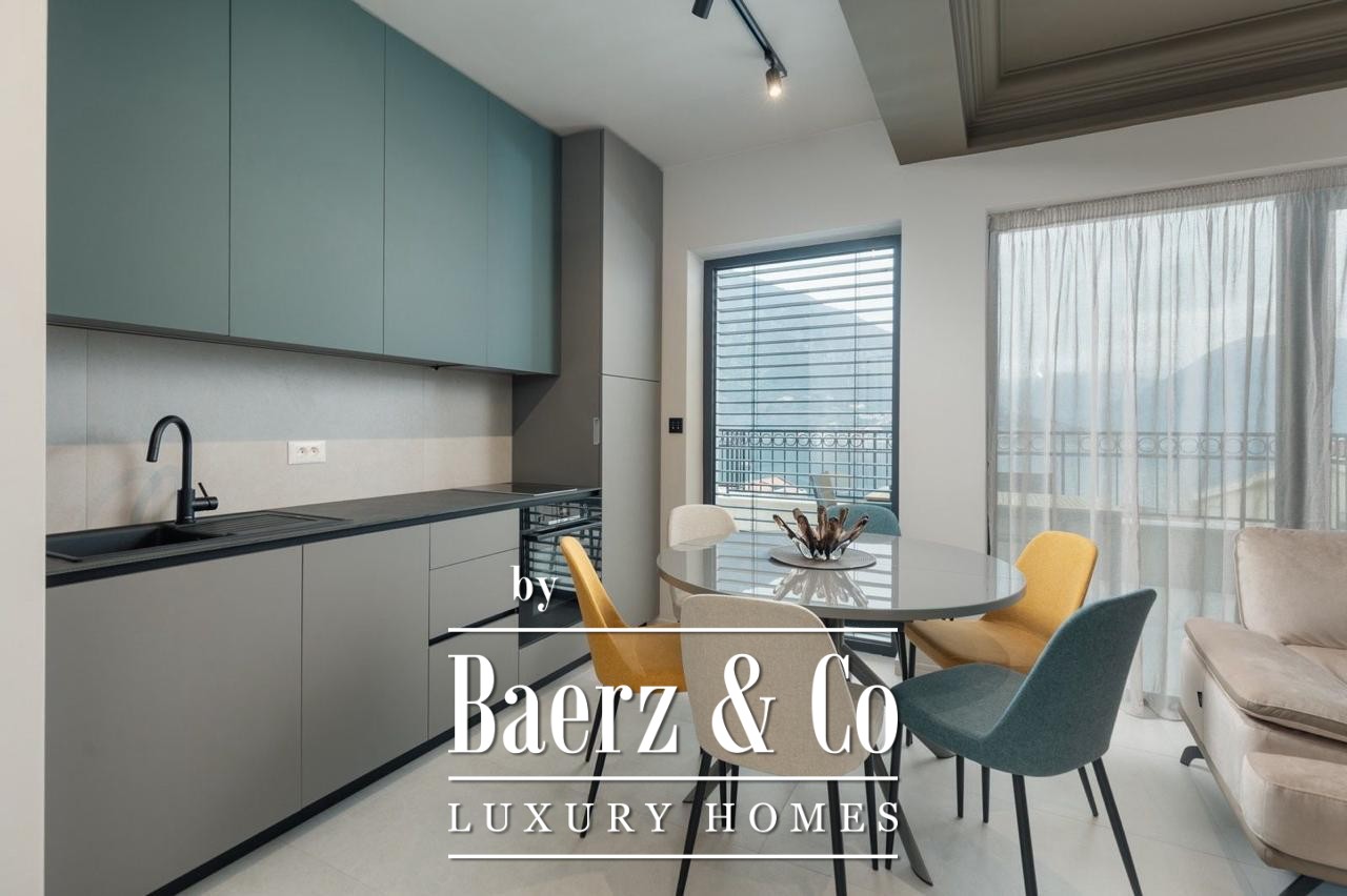 The apartment invites with three bedrooms, a bathroom, a separate toilet, and two terraces. Floor-to-ceiling views bring the ever-changing Bay of Kotor into the interior, complementing the 186 m² living area fully furnished for immediate occupancy. Thoughtful planning includes a hallway orienting movement towards the living spaces and terraces, where outdoor living is shaped by the rhythm of sea and sky.