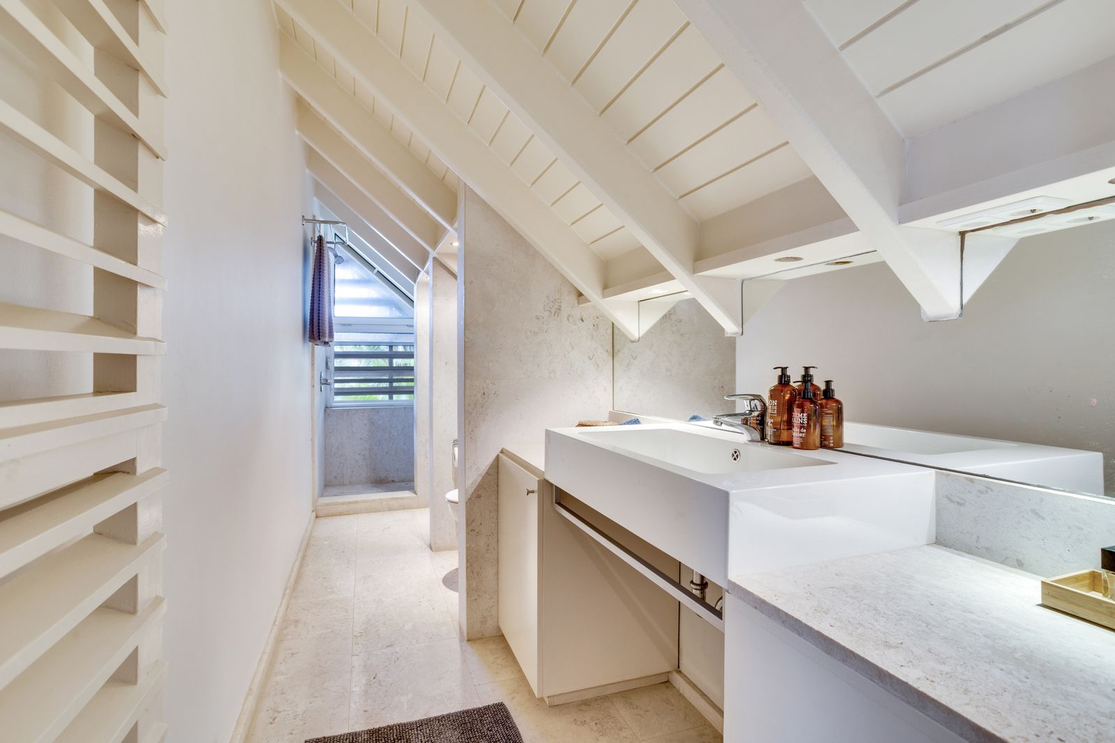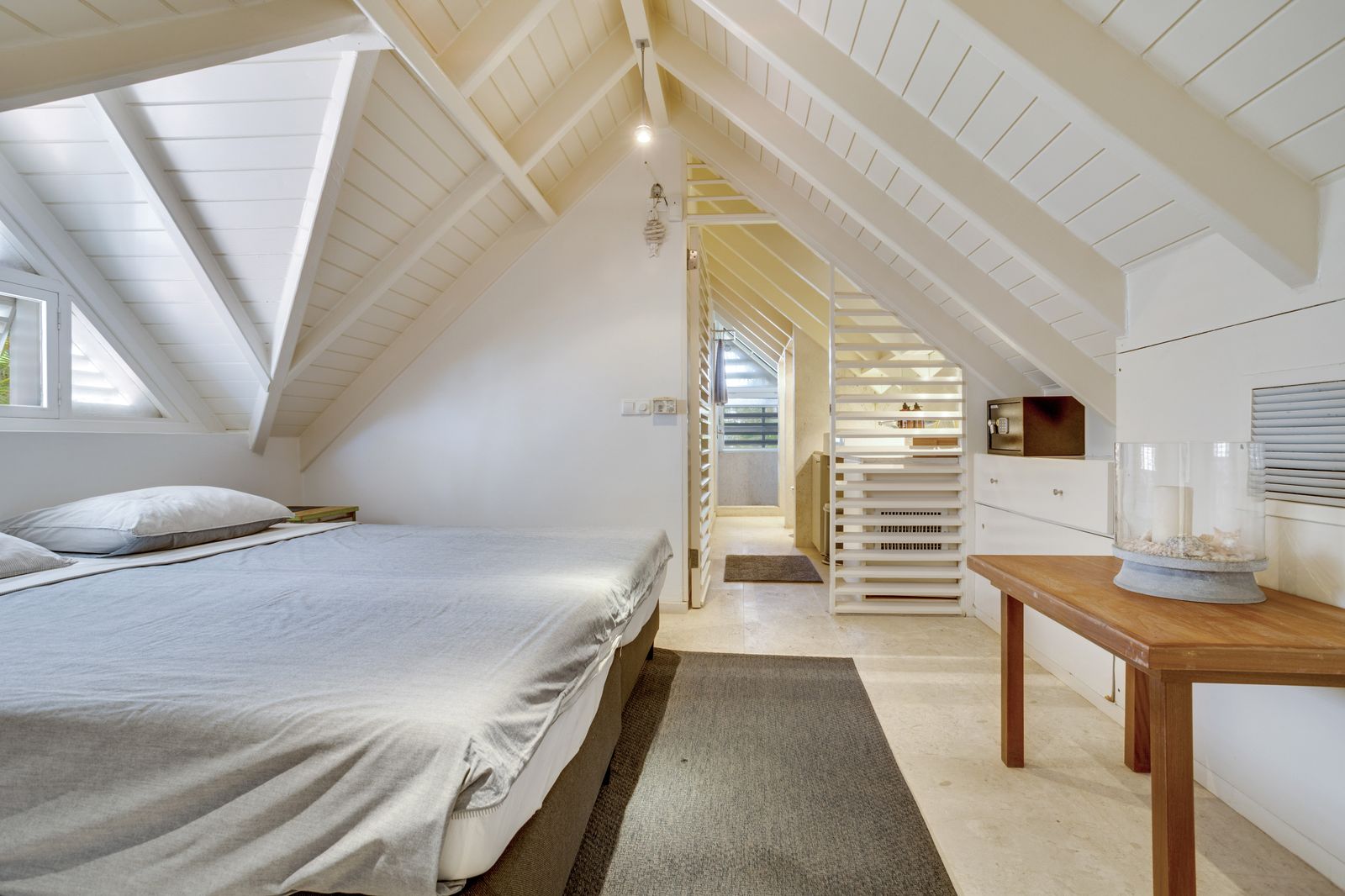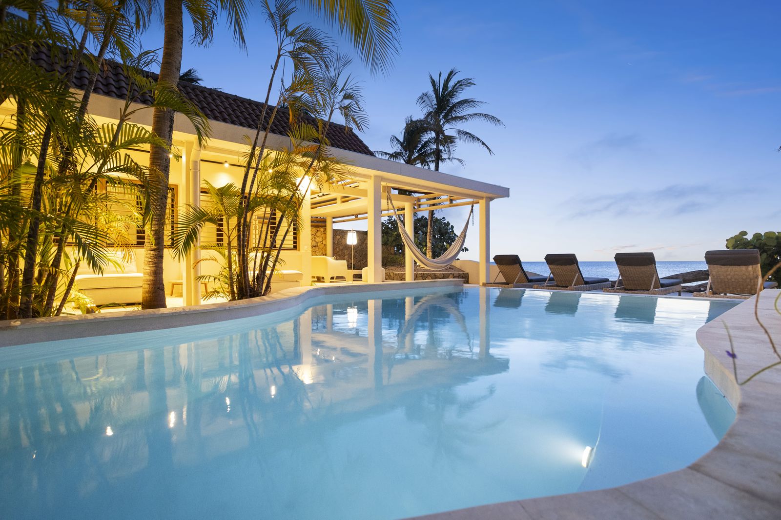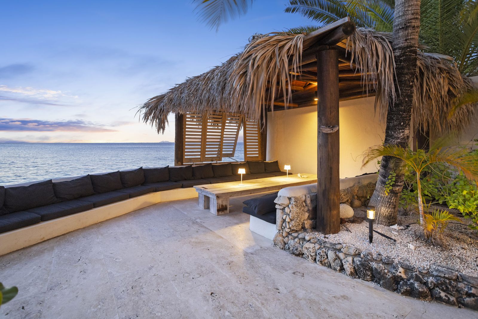 Kas Popchi boasts a beautiful private pool, its own beach, and direct access to the ocean. There are several inviting outdoor areas and a luxurious outdoor shower, perfect for relaxing and fully enjoying the Caribbean sun and stunning surroundings.