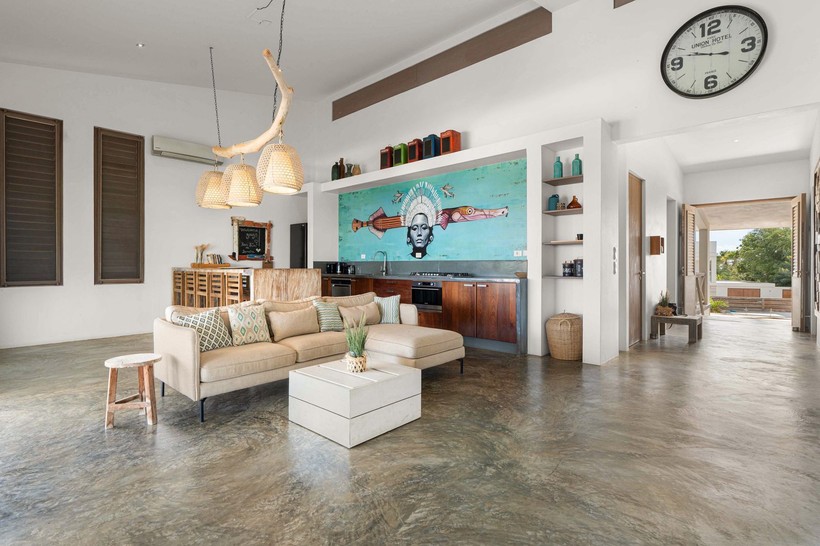 Thoughtfully designed and comfortably furnished, the villa offers plenty of space for everyone. With 7 bedrooms and 7 bathrooms divided into three independent units (two 2-bedroom apartments downstairs and one 3-bedroom penthouse upstairs), there’s ample privacy and flexibility for families or groups traveling together.