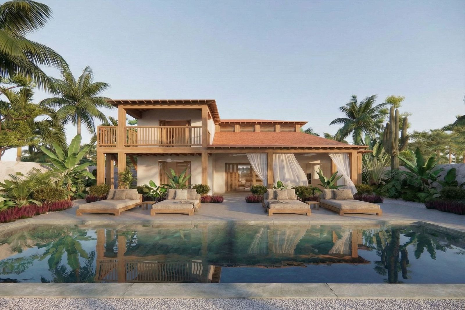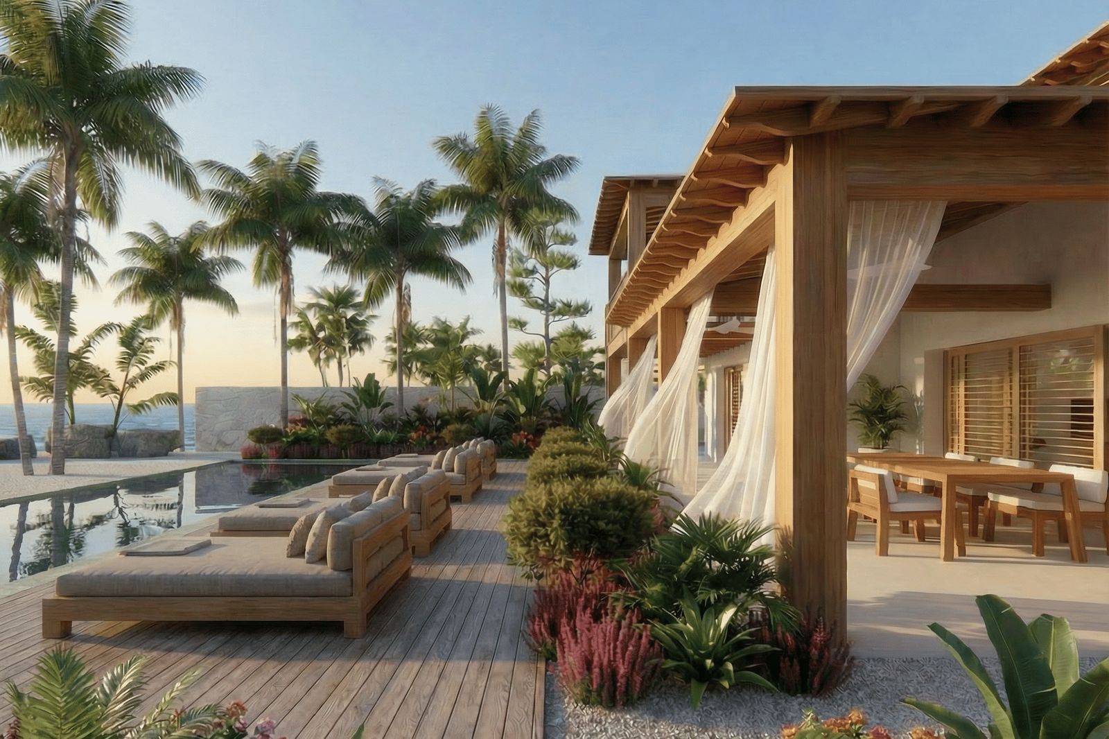 Reef 3 is located directly on the Caribbean Sea and offers unobstructed views over the water. The terrace with infinity pool is a great place to relax or gather with family and friends. From the home, you can step straight into the sea for swimming, snorkeling, or simply enjoying the surroundings.