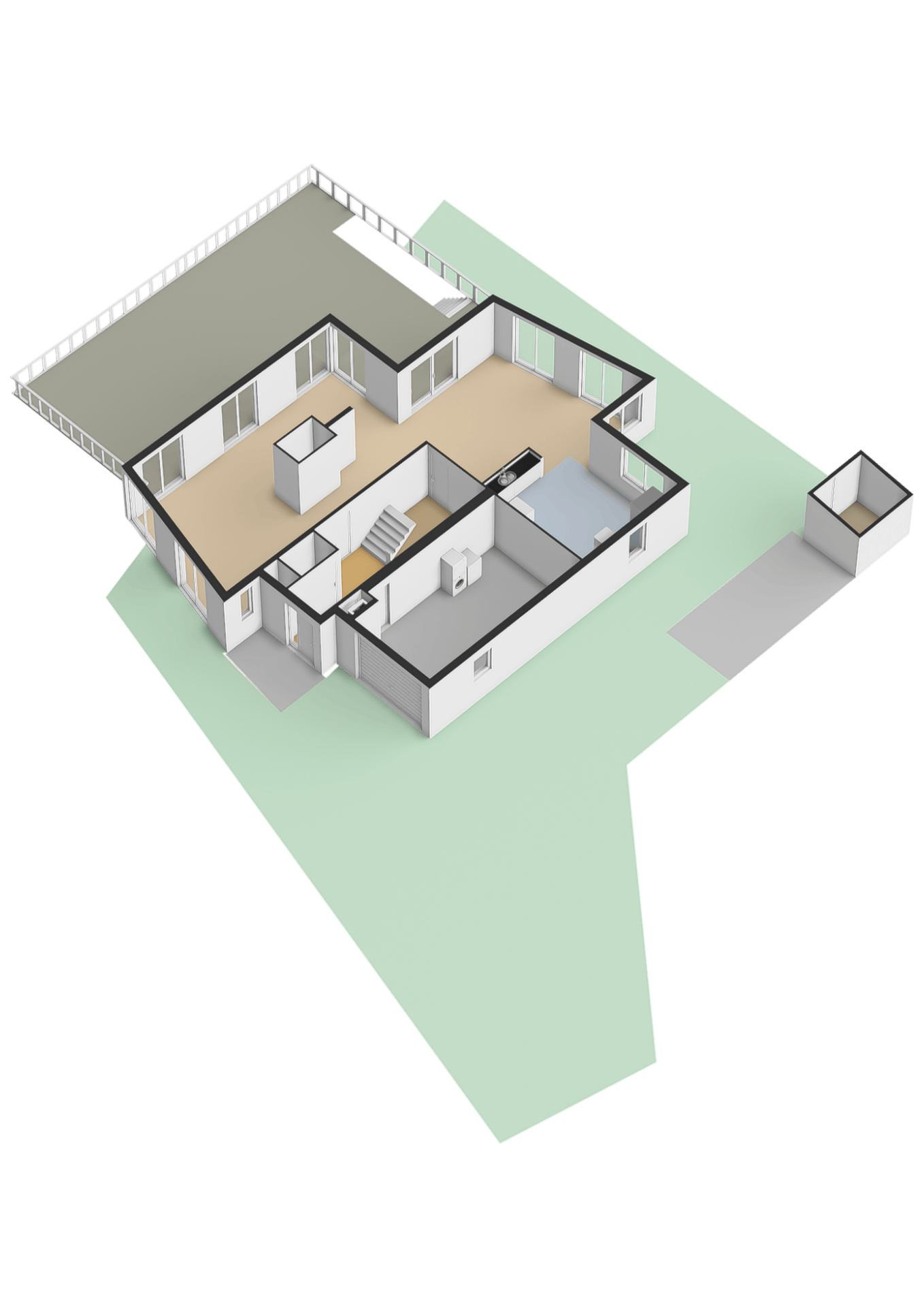 What truly sets this property apart is the lower level. It features no fewer than nine rooms, usable in countless ways: hobby rooms, studios, fitness areas, offices, storage, or even a home practice. This makes the house ideal for those who need ample space or want to combine business and private life. Several roof terraces add extra outdoor space on different levels, making the home flexible and future-proof.
