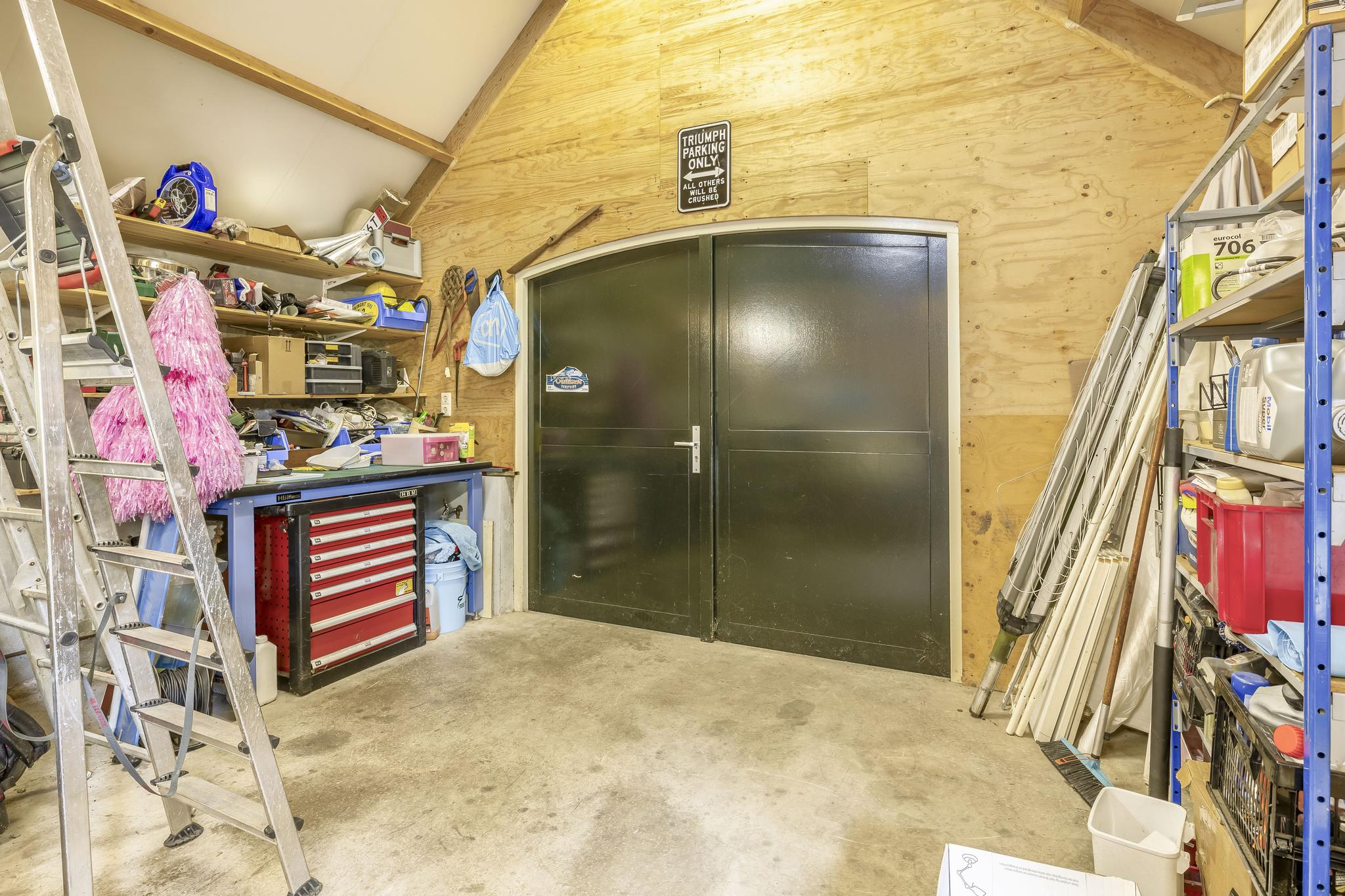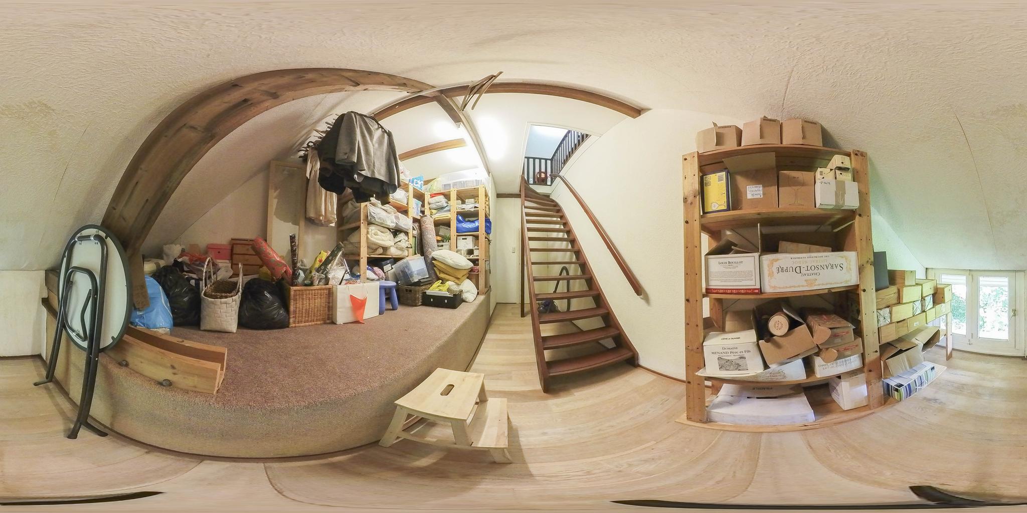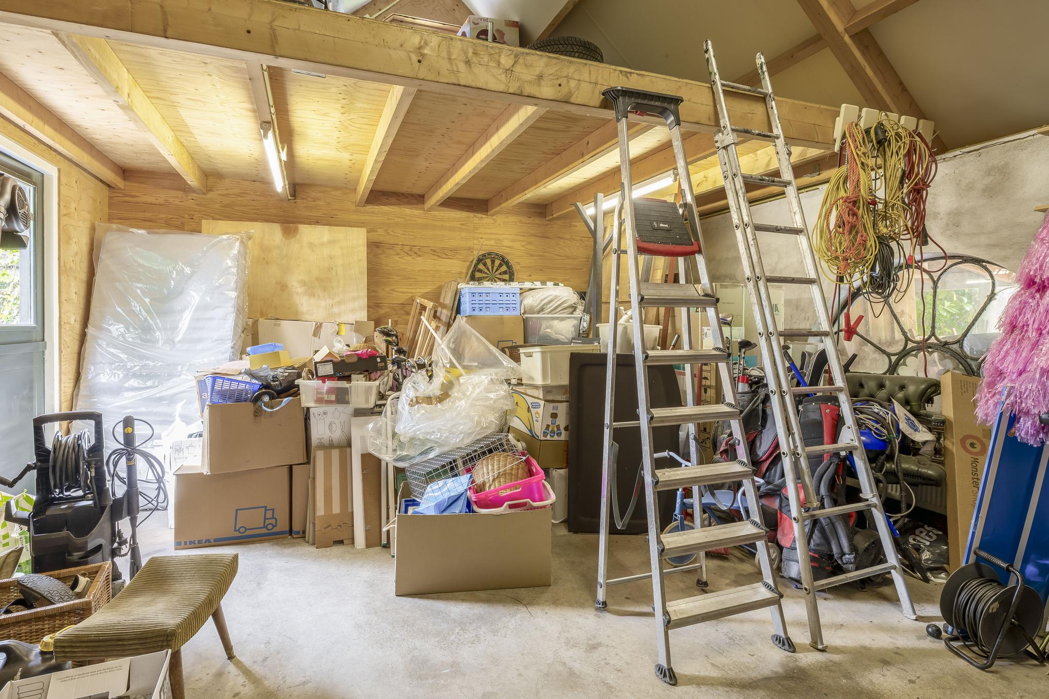 This floor also offers a second bathroom and a versatile space for hobbies or work. A fixed staircase leads to the second floor—a surprisingly spacious attic level with sauna, extra storage, and hobby room. Additional (bed)rooms can easily be created here!
