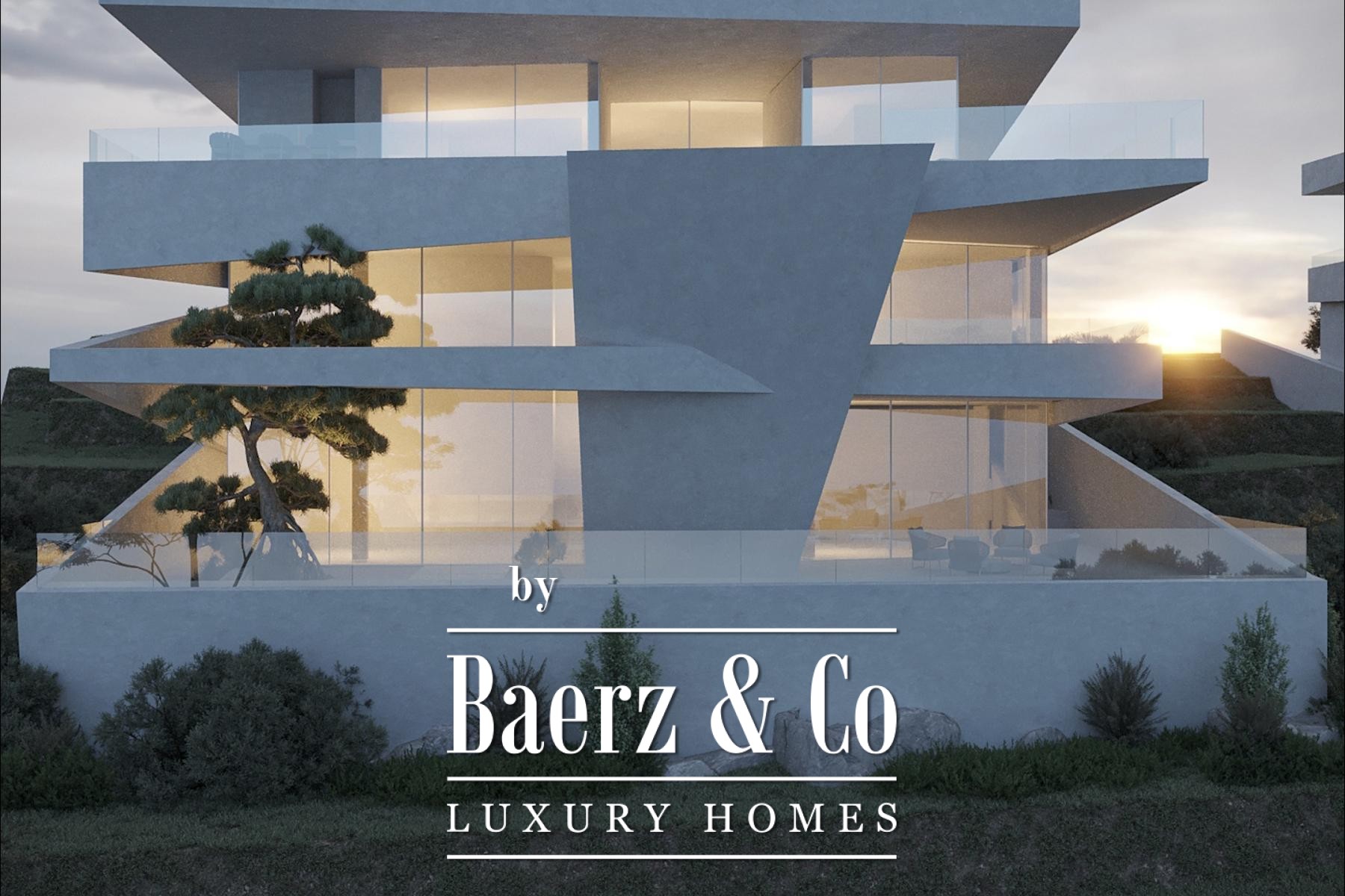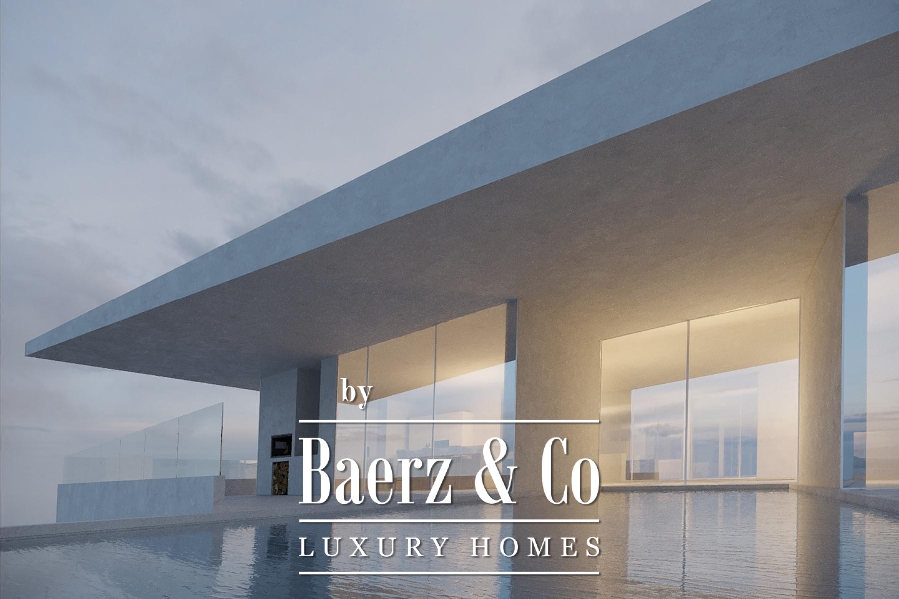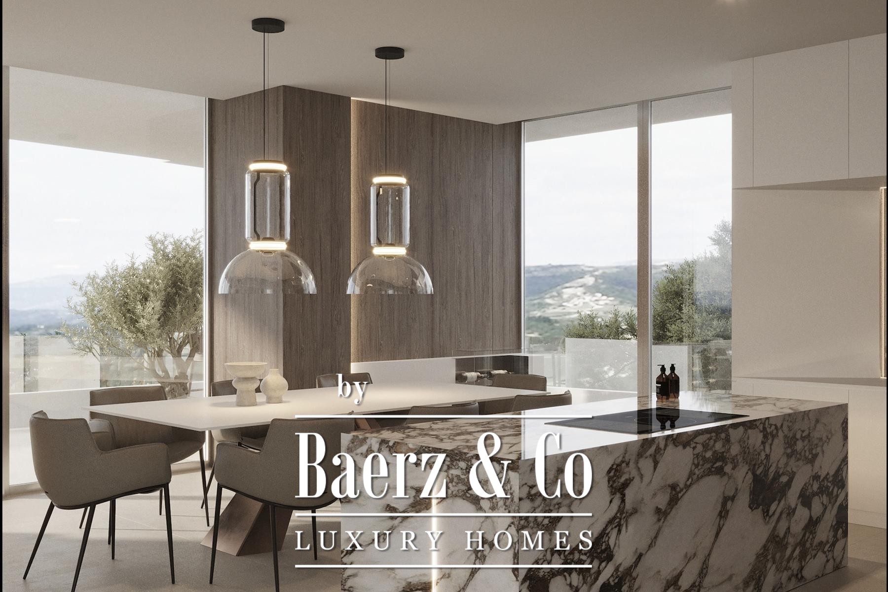 The home offers four bedrooms and four bathrooms, each finished with designer sanitary ware in brushed bronze and satin, ensuring a blend of comfort and composed elegance. The interior is designed for fluid living, while terraces of 197 m² and a 34 m² rooftop pool invite seamless connection between in and outdoor spaces. Features such as a sculptural Ergofocus fireplace, Schüco systems, and top-quality ceramics emphasize refined detail, with a 32 m² garage complementing the layout.