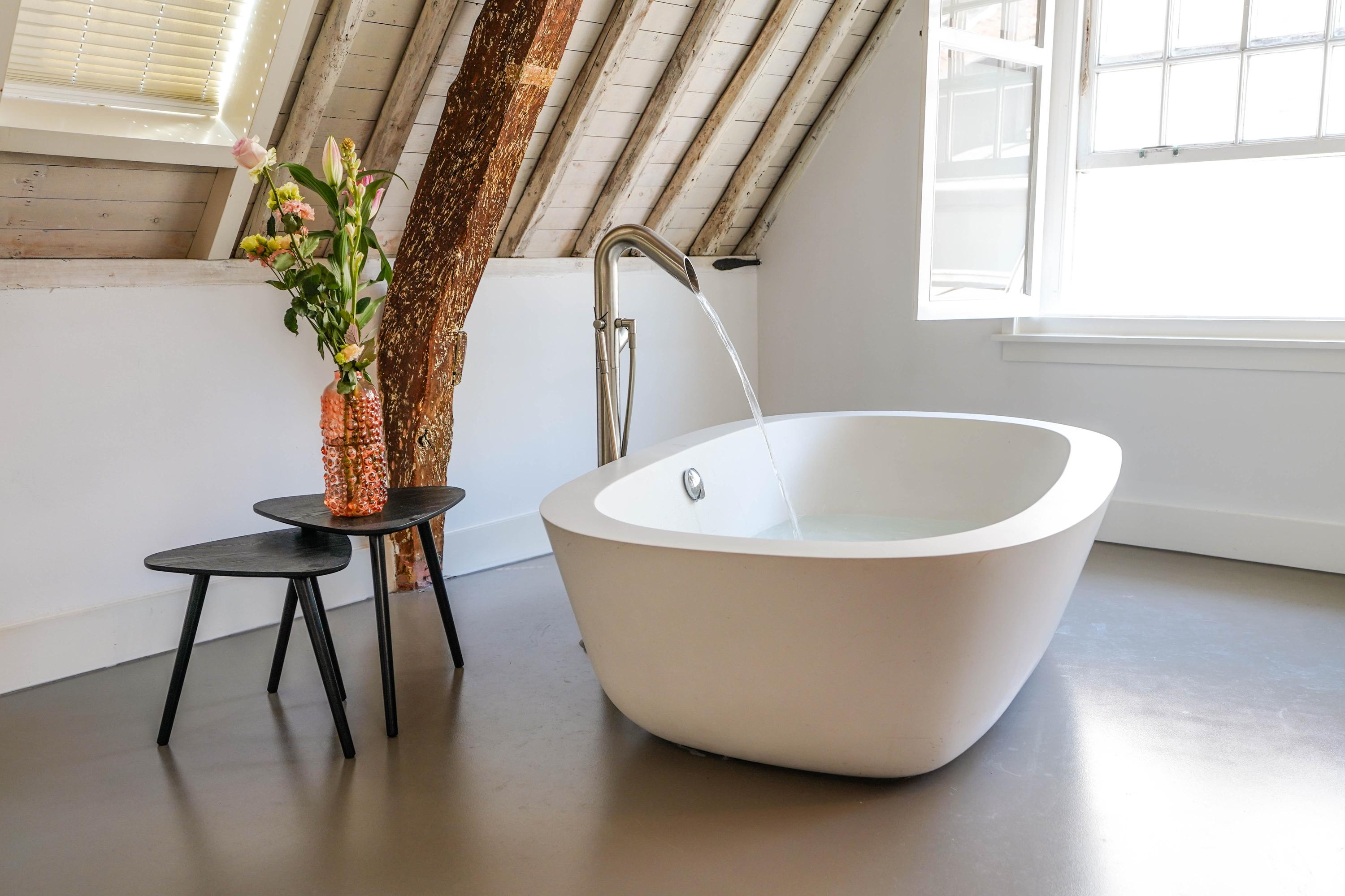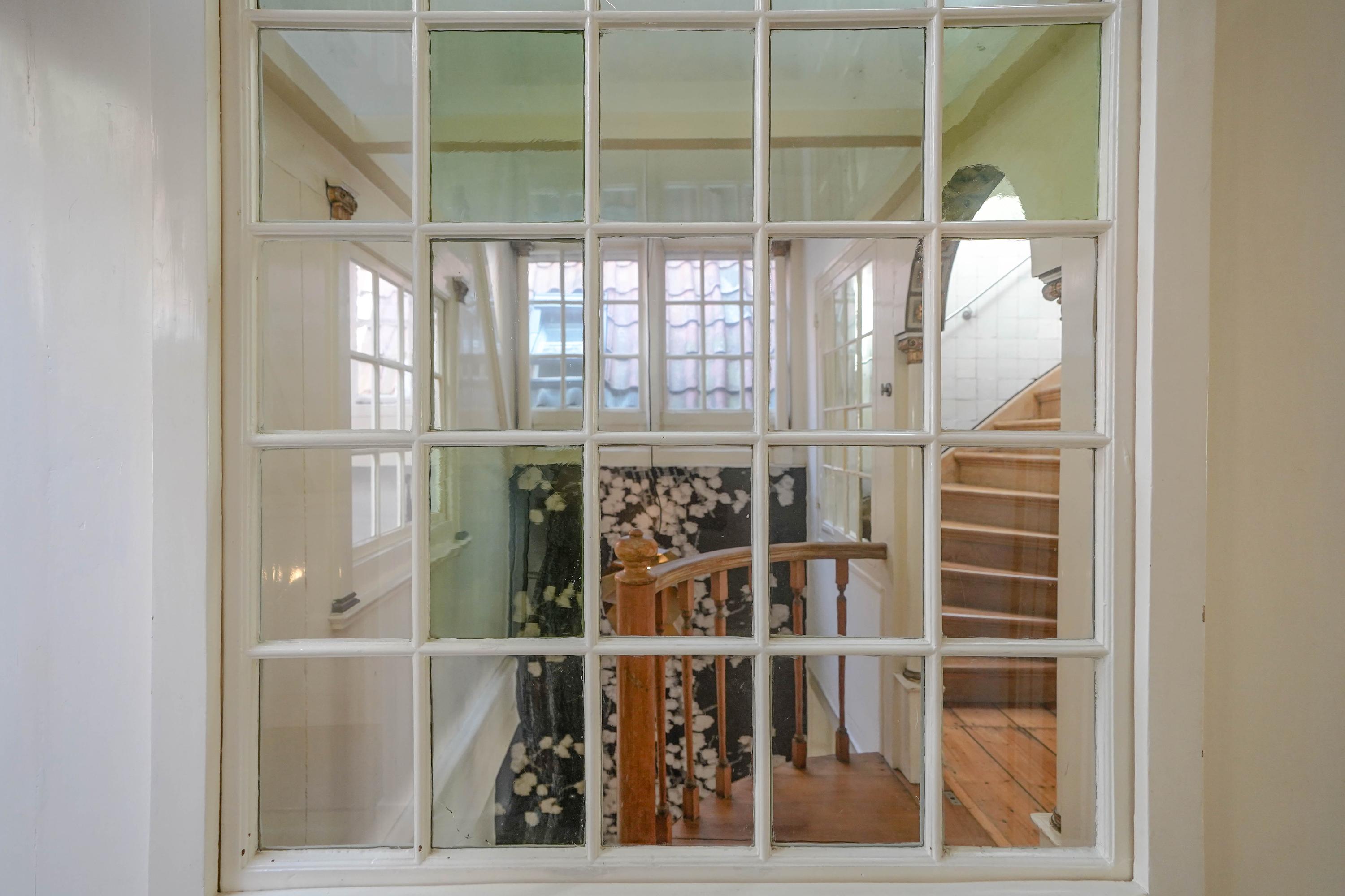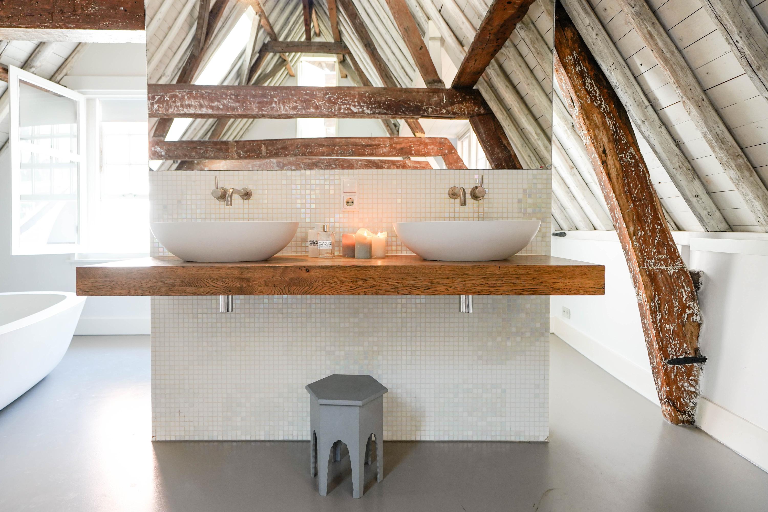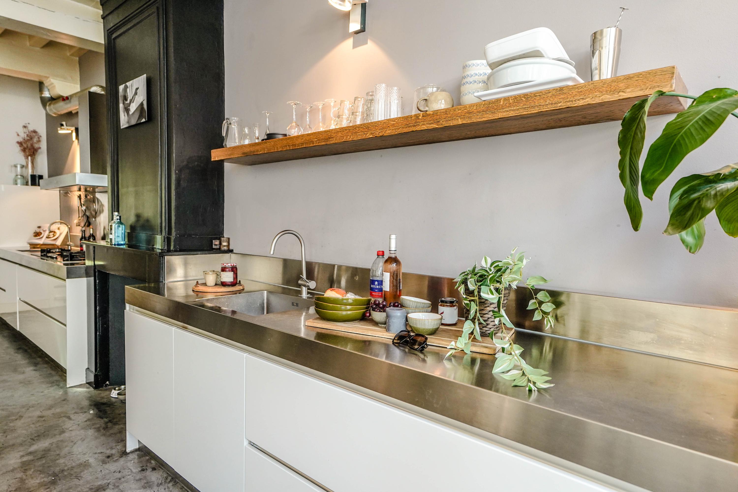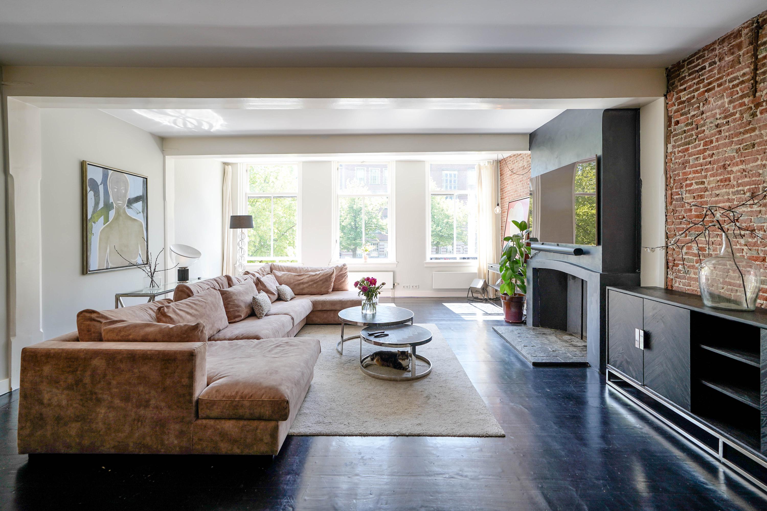 The front house is the original main house. The ground floor houses a shop (which is also available for purchase), and the first floor now houses the 70 m² living room, which overlooks the Rhine and Stadhuisplein. At the rear is the kitchen/diner with space. A lot of space. With 50 m², long worktops and a dining table that seats 12, this is now the heart of the house. From here there is also one of the passages to the back house along the courtyard, which provides a lot of light. The sleeping floors are one floor higher. Here the house has been peeled back to the structure with the beautiful wooden siding roof in full view. High Velux windows have been installed between the tracks, providing beautiful light at any time of the day. At the front you will find three bedrooms, a bathroom and, above all, plenty of storage space with fitted wardrobes and a linen room, spread over two floors. At the rear, the master bedroom with ensuite bathroom covers the entire roof with a ridge of no less than 8 meters high.