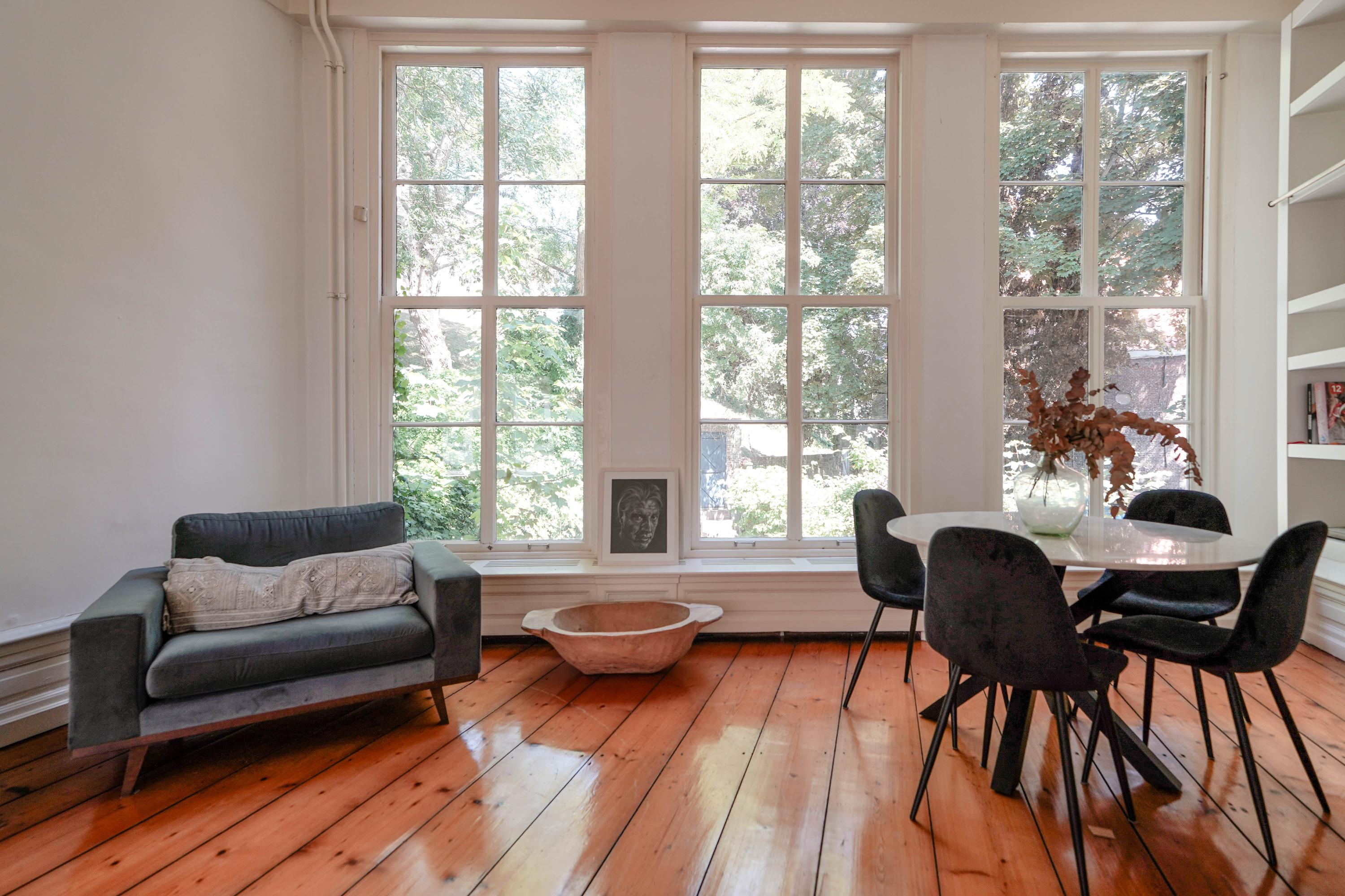 When you step out the front door, you are right in the heart of the medieval and bustling center of Leiden: terraces, the market, passing boats. museums, restaurants. Literally everything is within walking distance. Schools, sports clubs and other activities can be reached by bike within a short distance, as can Leiden Central Station. You will receive a permit for your car in the city center. You can't park it right in front of the door, but you can drive up in the early mornings and evenings. Parking is possible a little further away and visitors can park in one of the parking garages nearby.