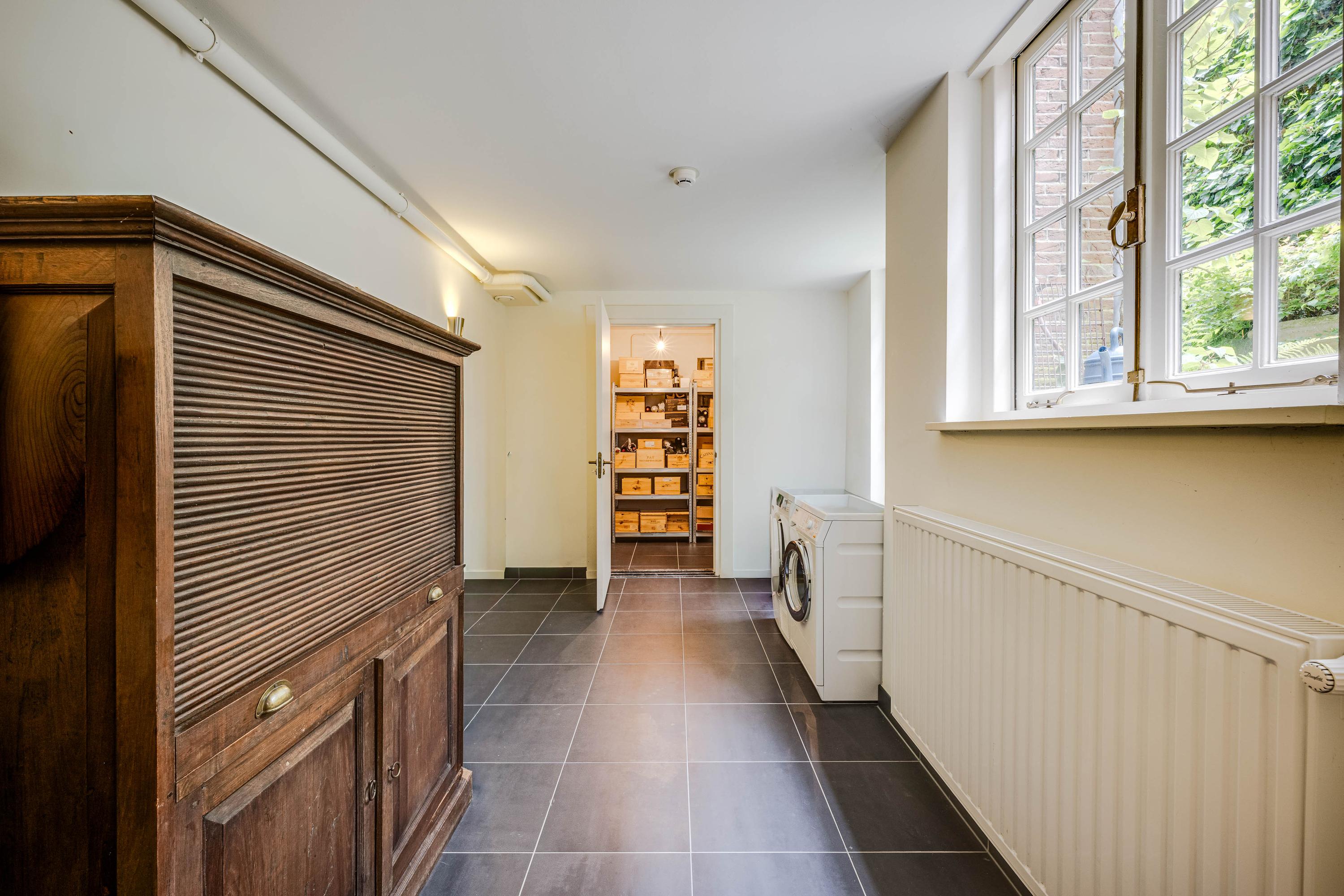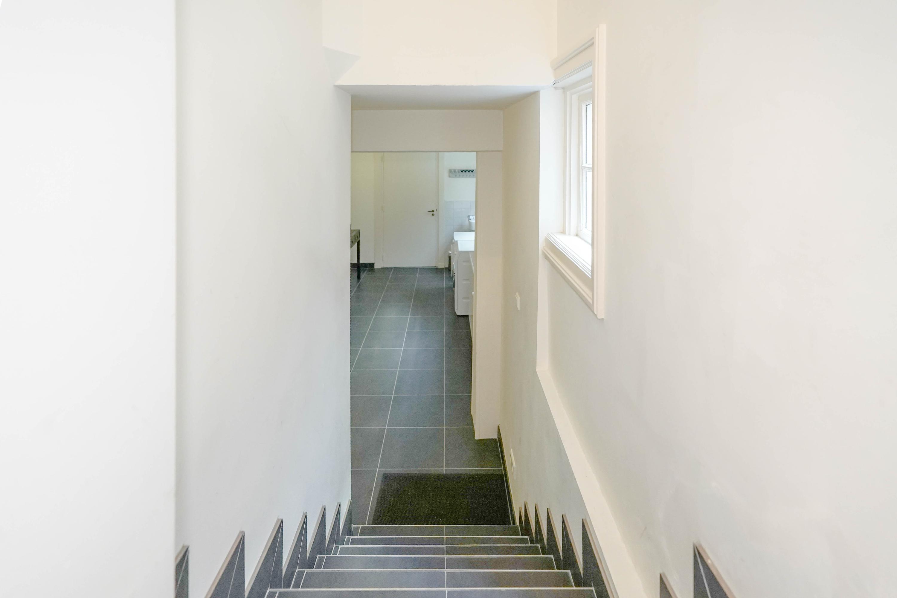 leads to a hall with access to the garden and stairs to the basement. This basement is