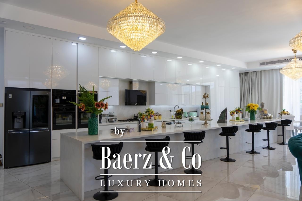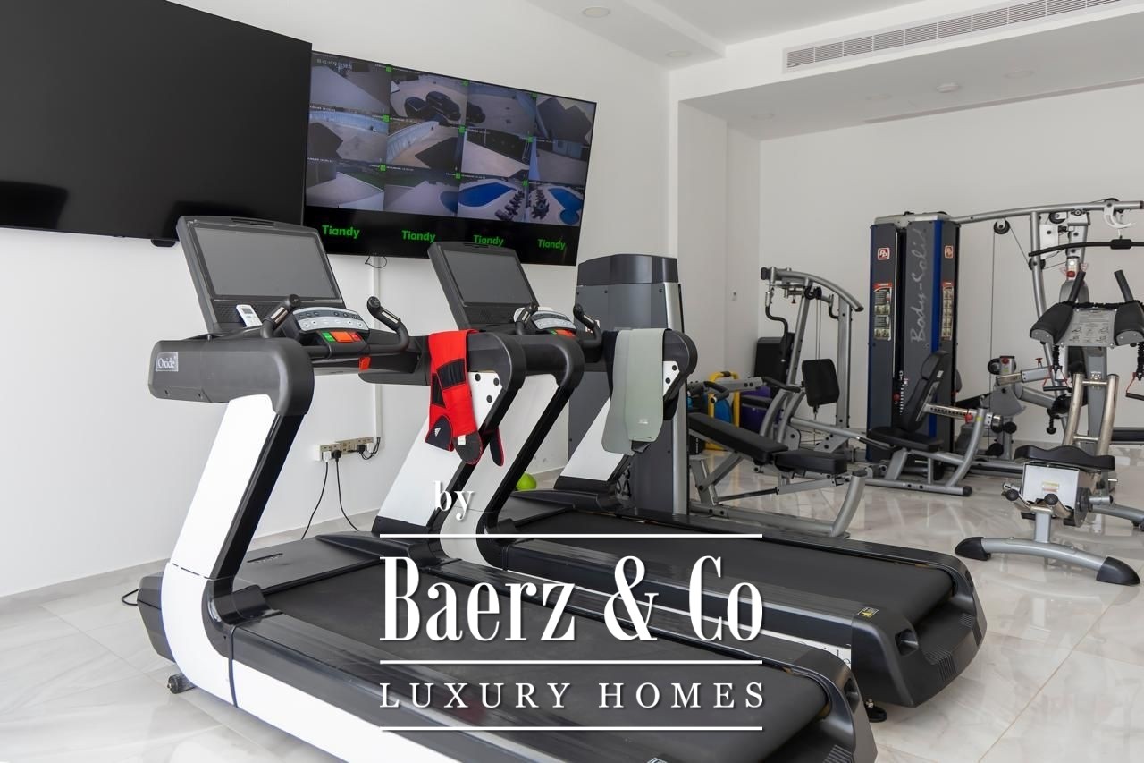 Crafted with elevated ceilings and fluid spatial transitions, the villa is arranged across two principal floors plus a full basement. Seven bedrooms are distributed for privacy and comfort, with five en-suite master suites, a guest room and separate housekeeper’s accommodation. Living spaces are defined by natural light and curated furnishings, underscored by premium finishes and a purposeful layout. Integrated smart home automation, underfloor heating and a VRV climate control system approach modern convenience with understated precision. A private cinema room and full CCTV security further express a discreet take on elite living.