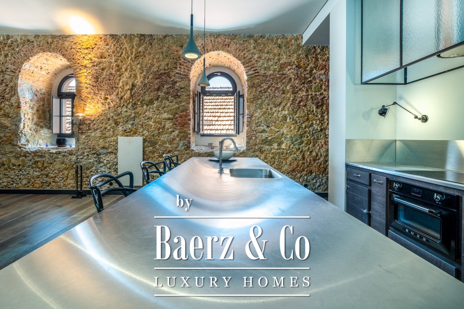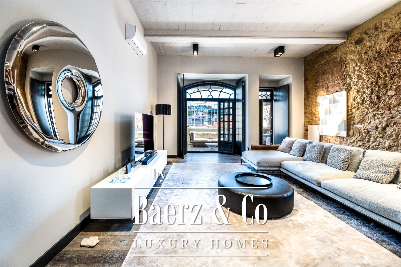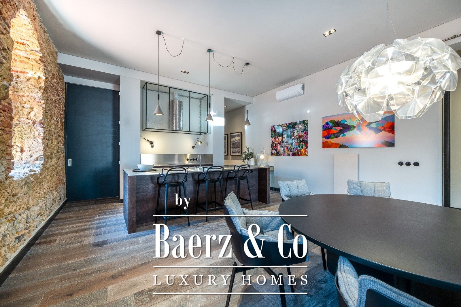 Located on a quiet cul-de-sac in Cais do Sodré, one of Lisbon’s most vibrant and historic neighborhoods, this 173 m² two-bedroom apartment offers a loft-style design with a distinct contemporary touch. Set on the second floor of a 19th-century building with elevator access, it underwent a full renovation in 2019 with meticulous attention to detail and high-quality materials.The generous living area impresses with 3.7 m high ceilings, a striking 14 m exposed stone wall, and large arched windows that fill the space with natural light thanks to its south and east orientation. The kitchen is seamlessly integrated with the living room, combining design and functionality with stainless steel countertops, oak cabinetry, and statement lighting.The living experience extends
