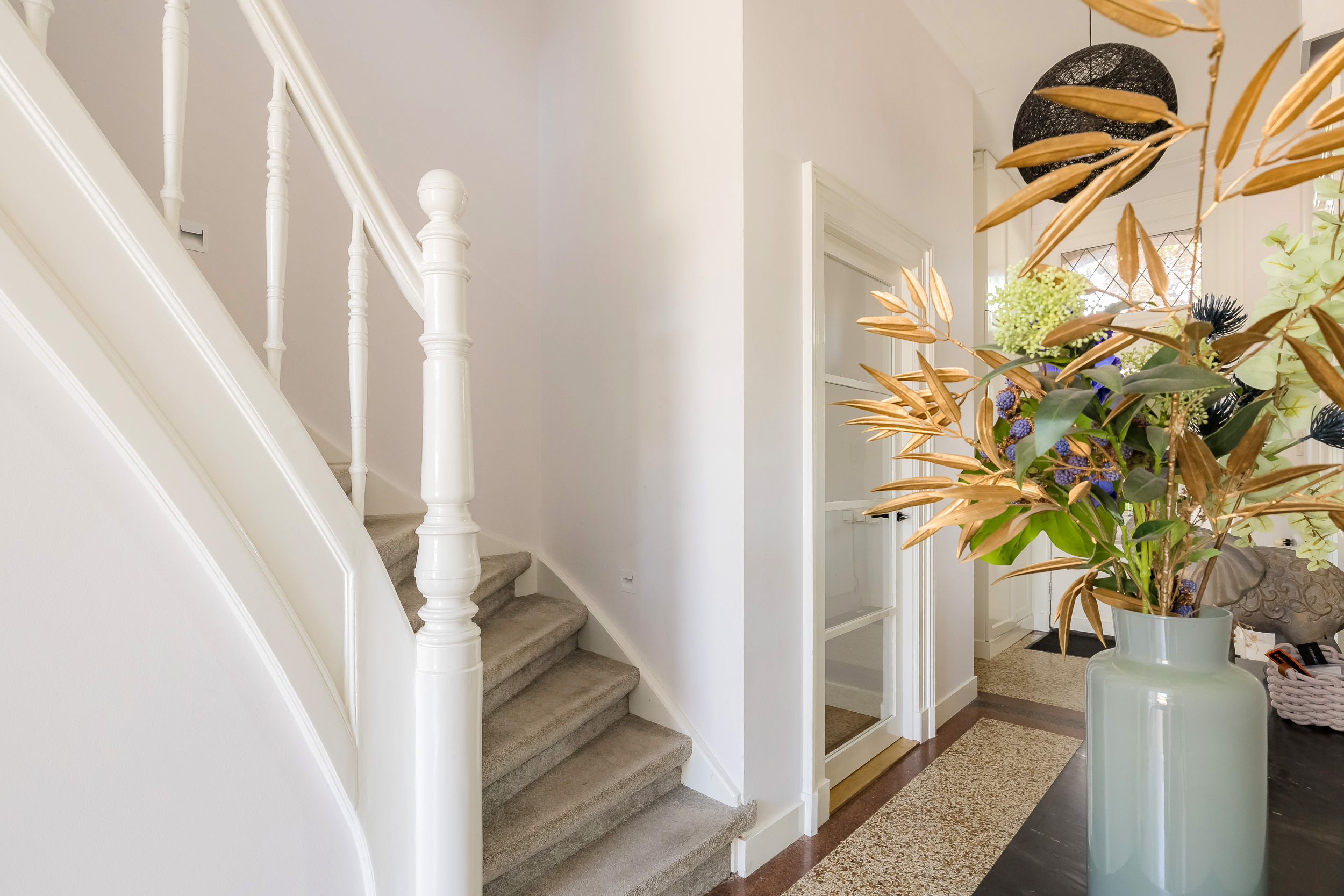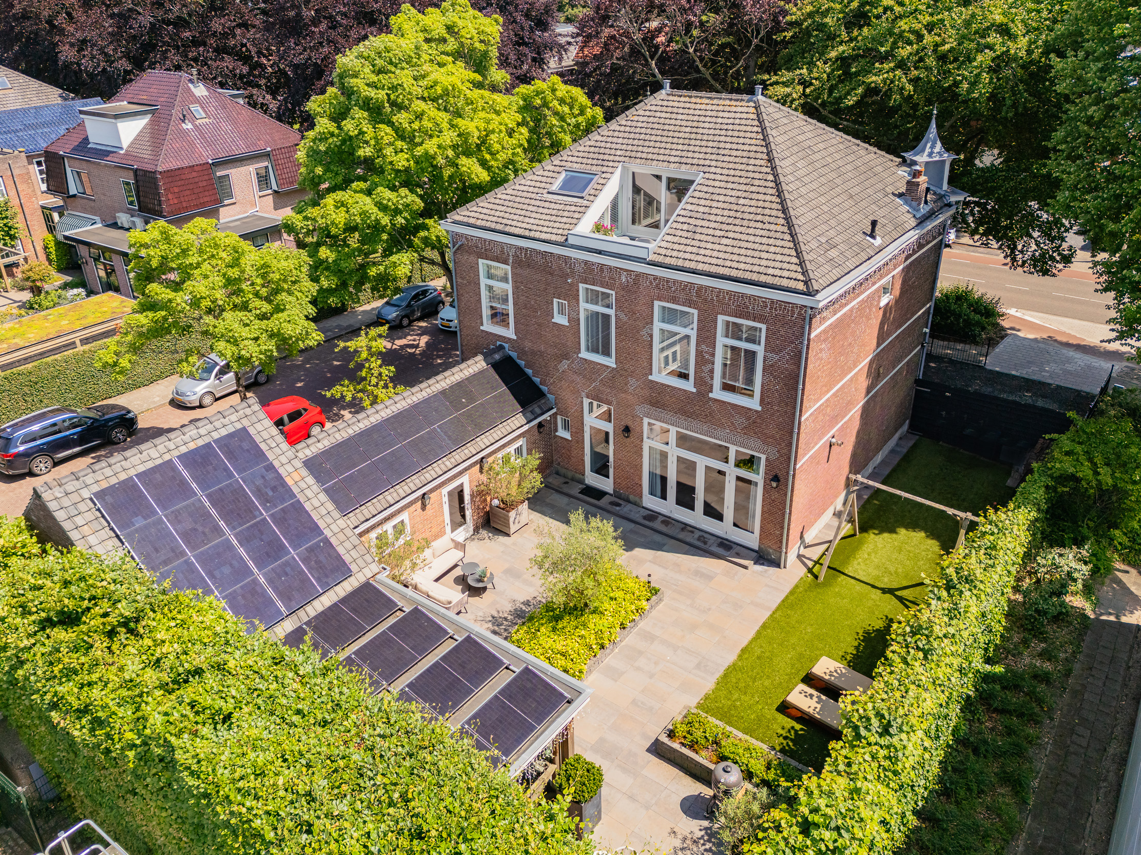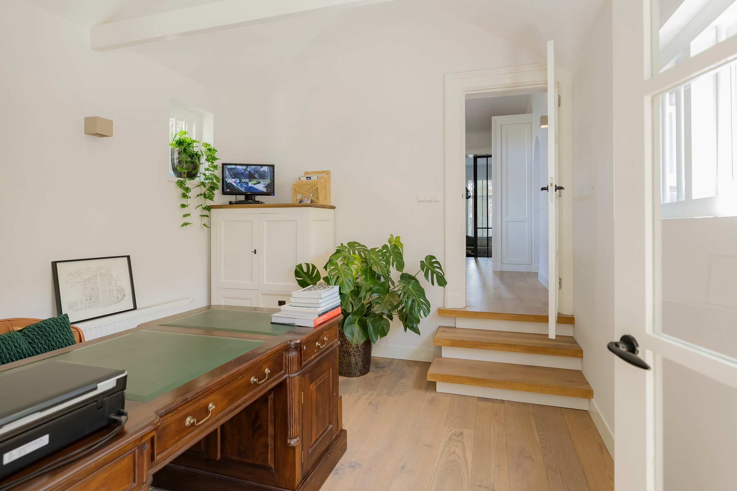 This very stately detached townhouse (municipal monument) with indoor large garage and driveway for 2 cars has been completely renovated while maintaining character. It is located on the most popular part of the Heereweg, in the center of the village and has been very luxuriously renovated in 2018. The monumental beech trees complete the whole picture. The attractive Square with its many terraces, elementary school and stores are within walking distance.