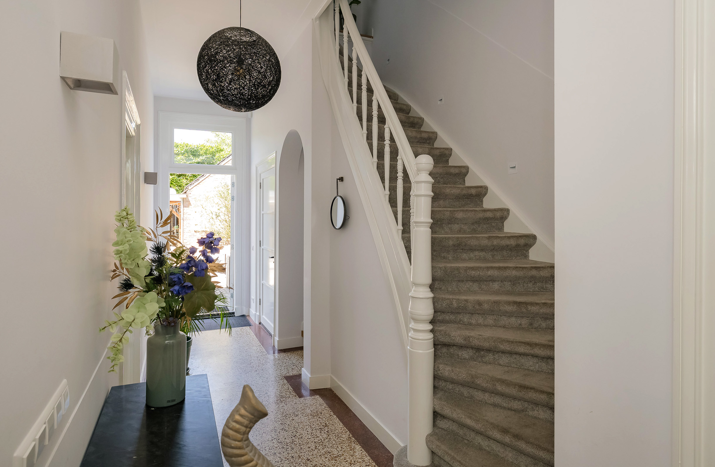 The beautifully landscaped garden surrounds the house and includes a new in authentic style wrought iron fence, lighting and irrigation. The very sunny backyard of 13 meters deep and 7.5 meters wide offers lots of privacy and is equipped with a large veranda where it is also good to stay in the colder months.