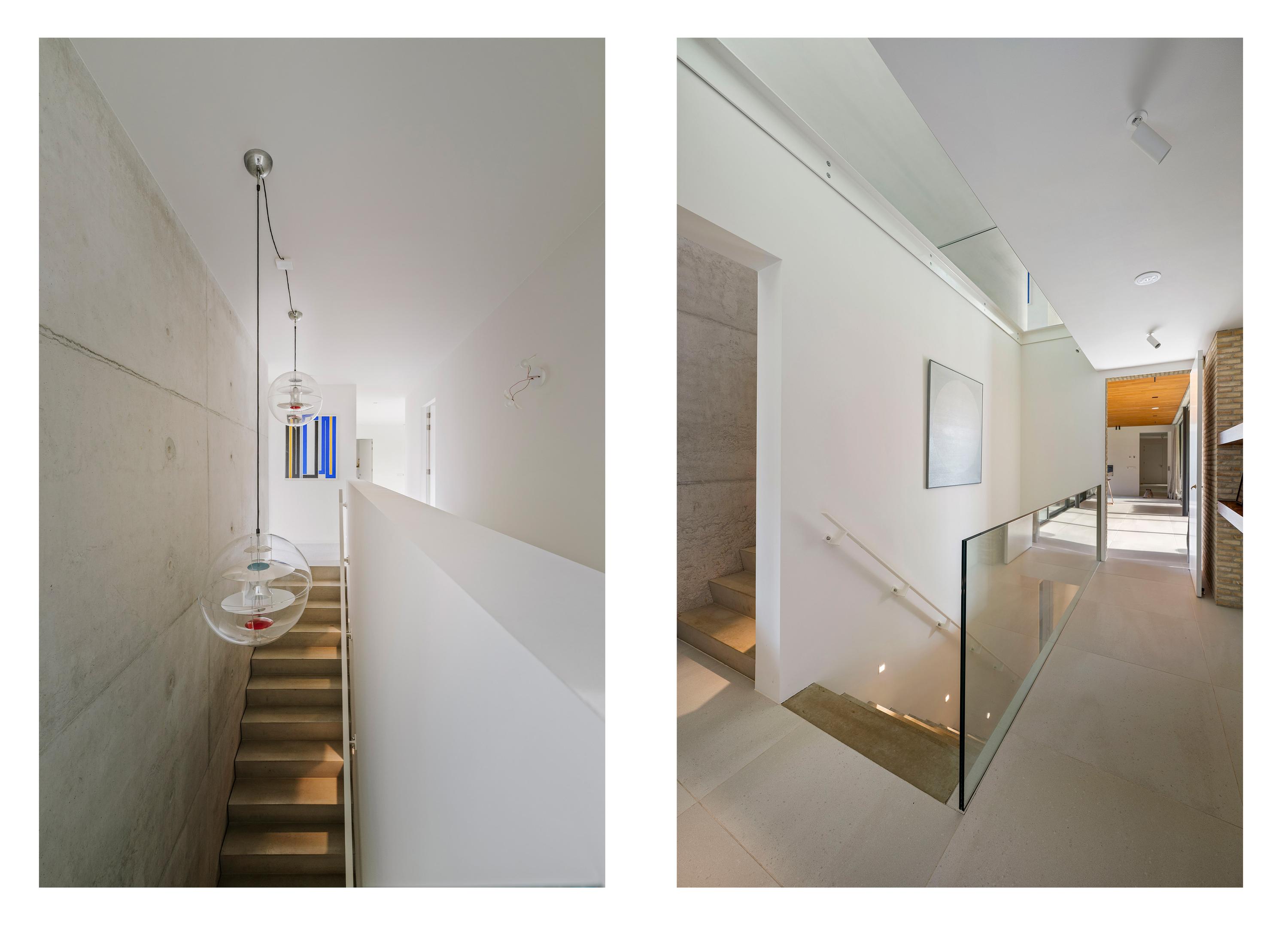 The design concept was clear: create a spacious family home that blends into its natural setting, where transparency and security are in balance. This principle is evident throughout the house. Large windows provide a constant connection with the outside, while the choice of materials and layout offer warmth and intimacy.