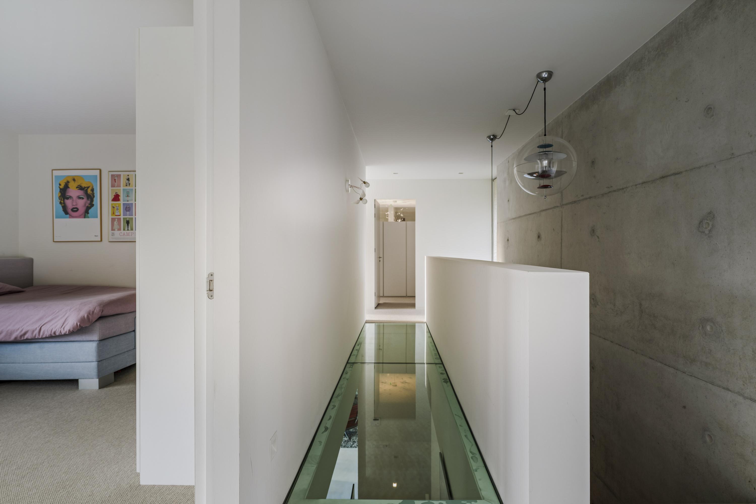 The basement is a fully-fledged living area with natural light at the front. The robust concrete ceilings and walls give this floor its own contemporary character. Here you will find a spacious studio, chill-out or fitness room, an extra bedroom with en-suite bathroom, a large laundry room and the technical installations. The house is equipped with a geothermal heat pump, 30 solar panels and a buffer tank of approximately 750 litres. The A++ energy label underlines the sustainable and future-proof character of the house.