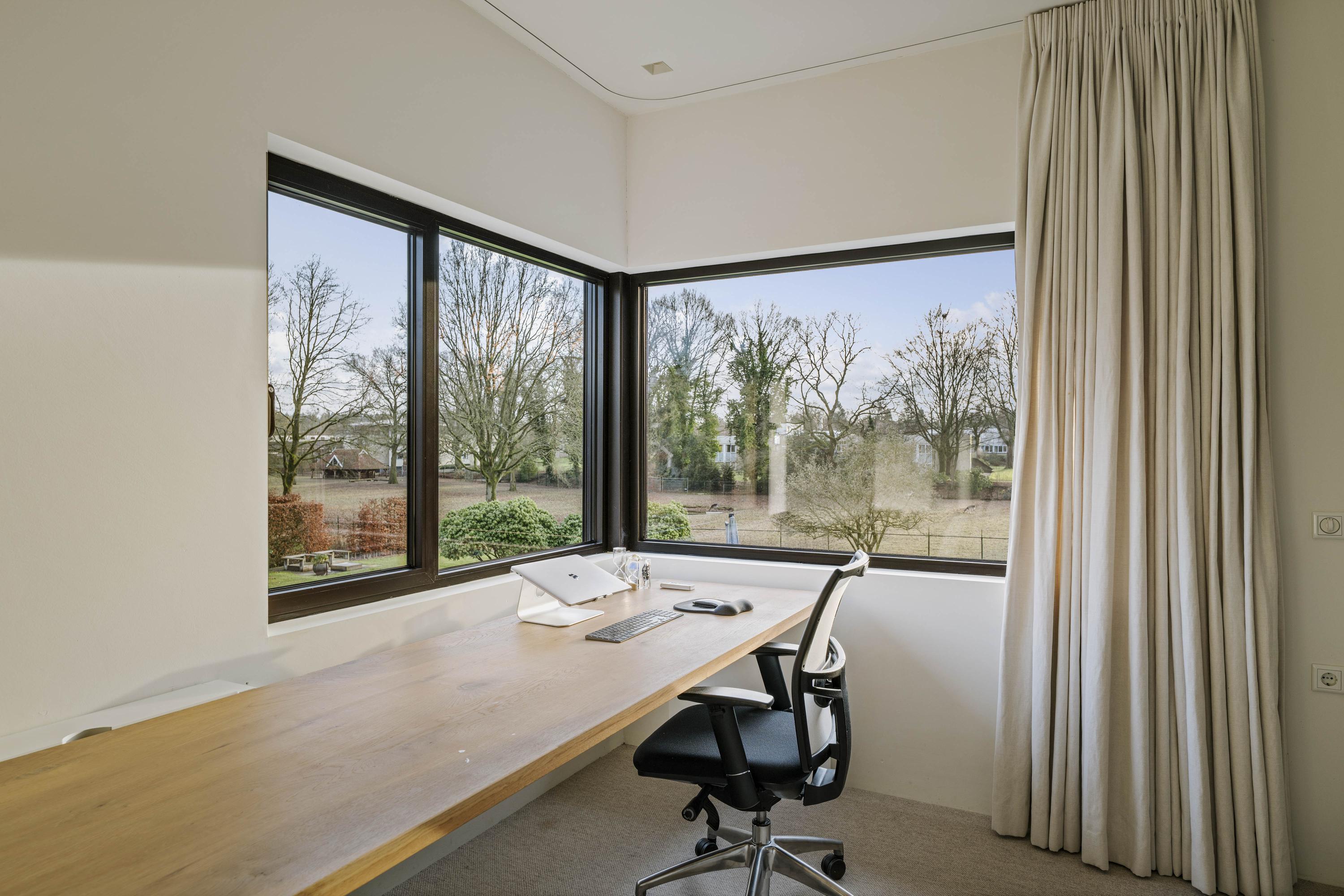 The garden surrounding the villa has been carefully landscaped. At the front, the lawn flows organically into the private pond banks. Rhododendrons, birches and beeches around the house complement the park-like layout of Berkeloord. At the rear is a large lawn with a spacious swimming pond in the middle with a plant filter and sun terrace. Borders with rhododendrons and evergreen shrubs frame the garden. The direct location next to the deer park ensures complete privacy and a unique view.
