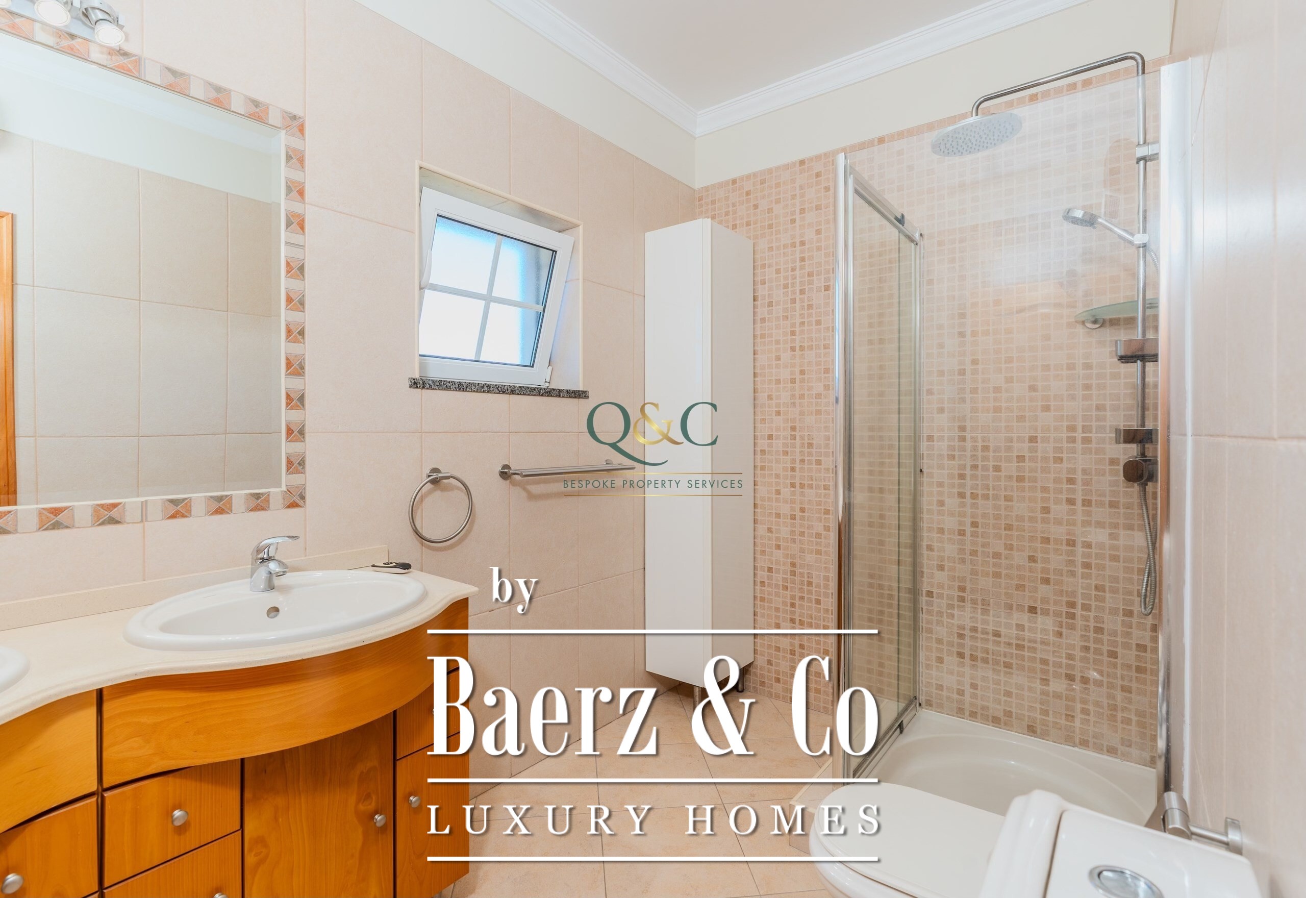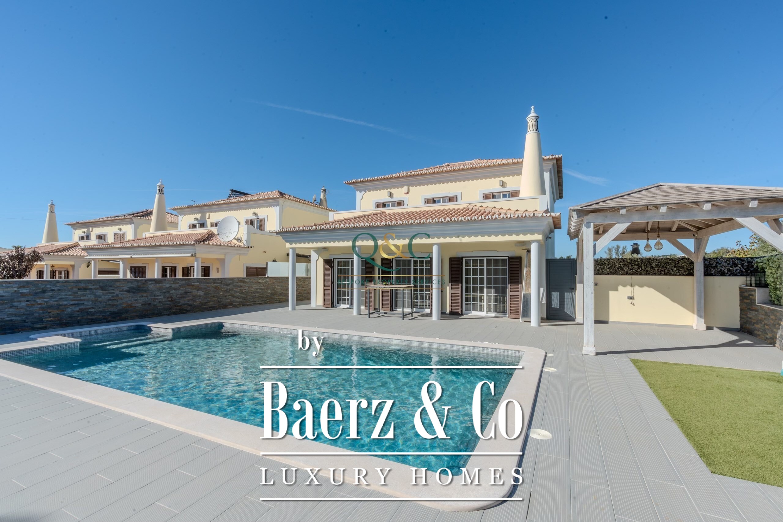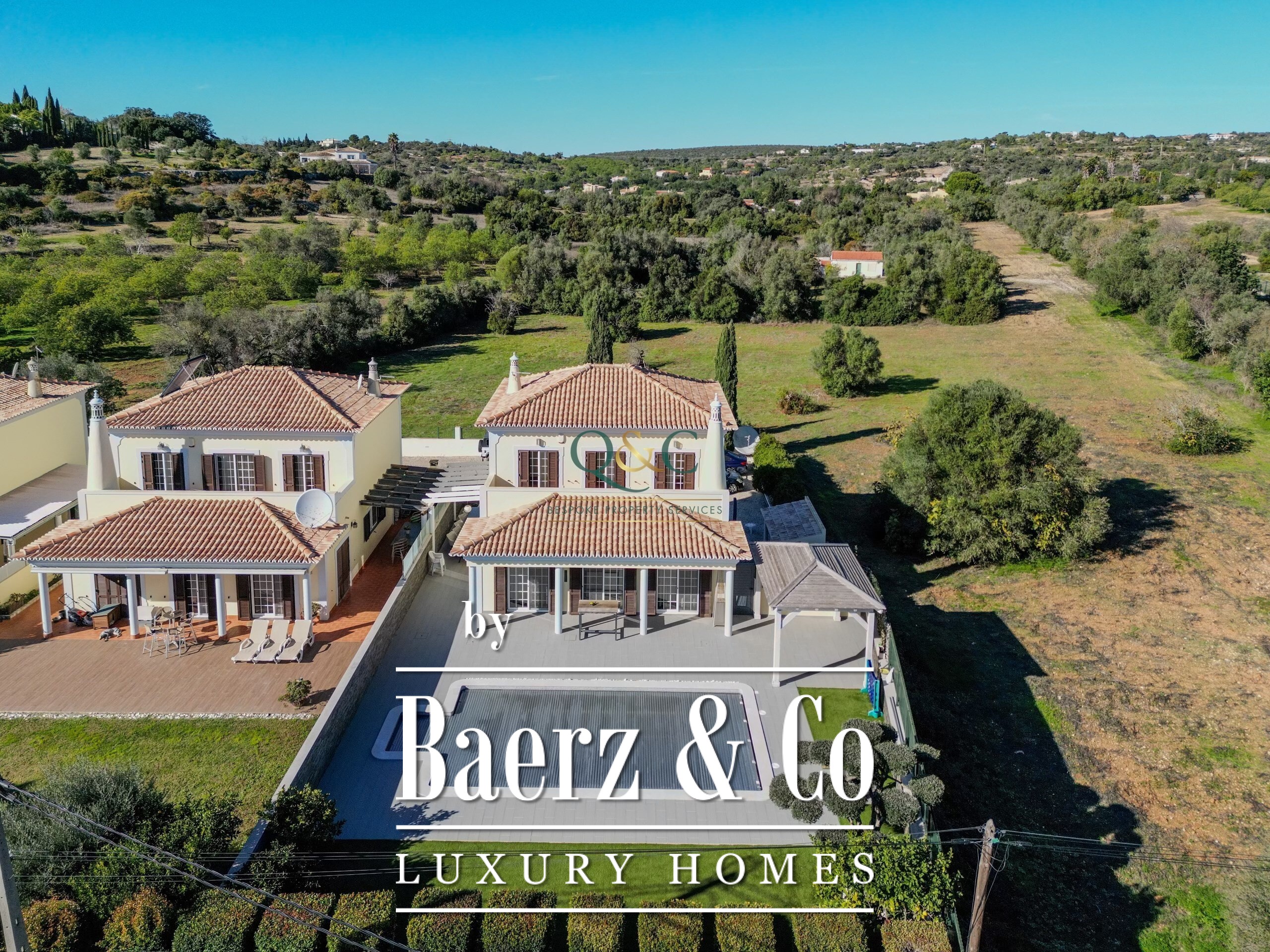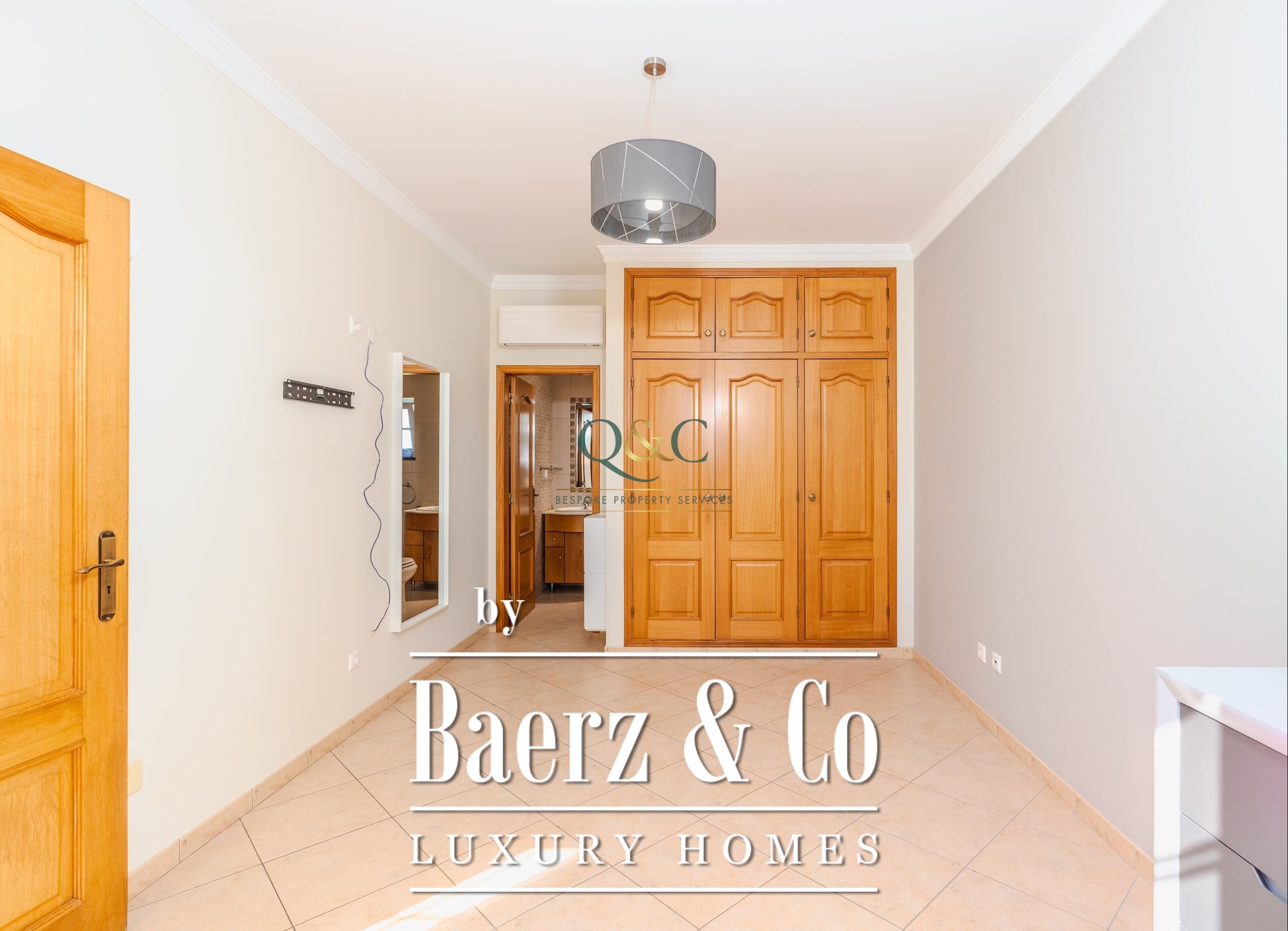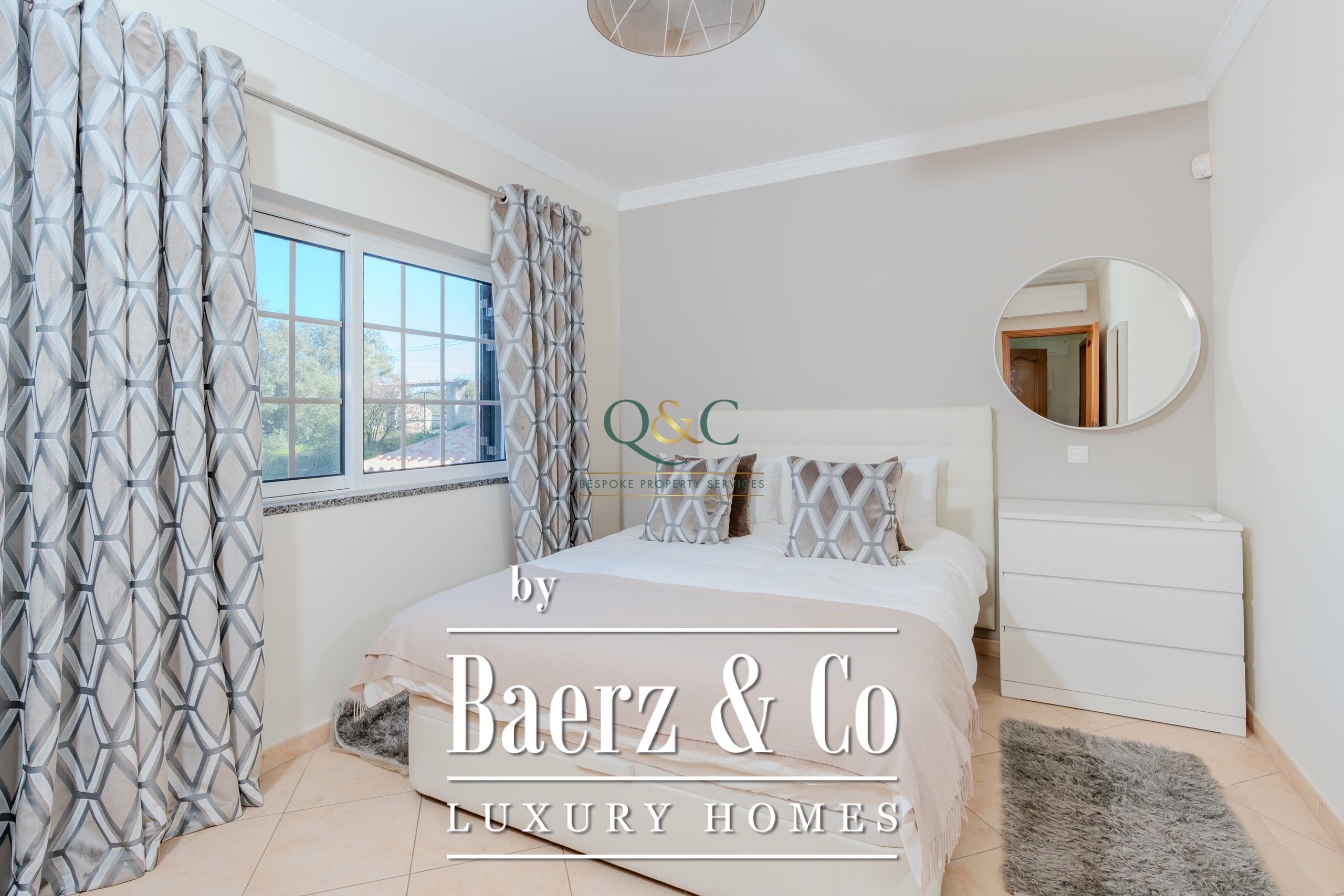 Entering Casa Oliveiras, a private swimming pool and inviting terrace welcome you, inviting quiet relaxation or effortless entertaining under the Algarve sun. The villa features a garage, basement, and dedicated laundry room, combining everyday practicality with understated comfort. Air conditioning, ambient music, double glazing, and a central vacuum system enhance the daily living experience, while a fully equipped kitchen and built-in wardrobes offer further convenience.