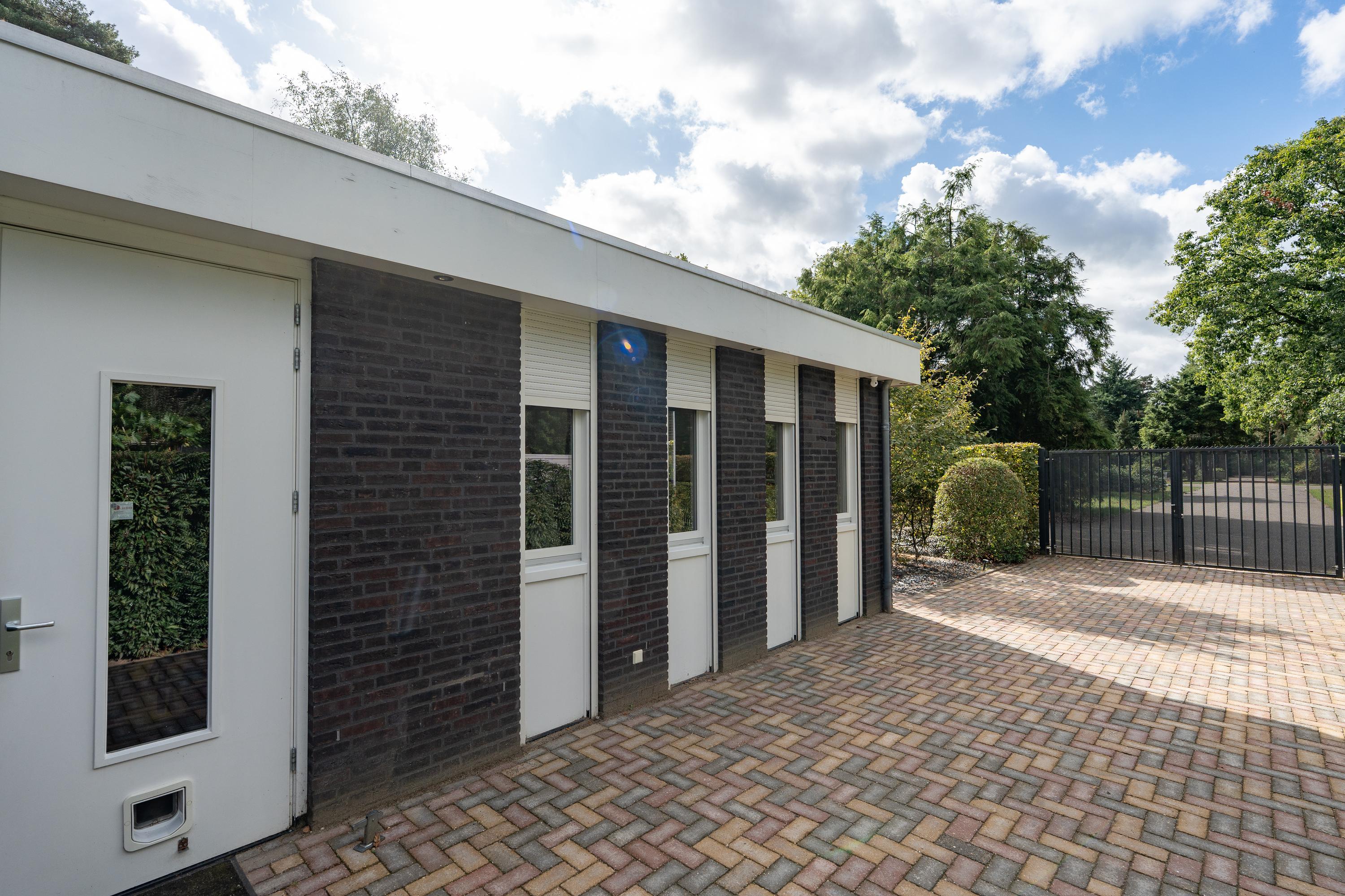 This bungalow offers a great opportunity to live on one level and still enjoy a garden, in one of the most popular residential areas in the region! In addition to the spacious living area, the house has a multifunctional (studio) space with its own entrance, kitchen and bathroom. There is also an attached workshop with a kitchenette and separate toilet, offering additional possibilities for a hobby or practice space. Together with the sustainable renovation and the beautiful swimming pond, this makes it a particularly versatile home.