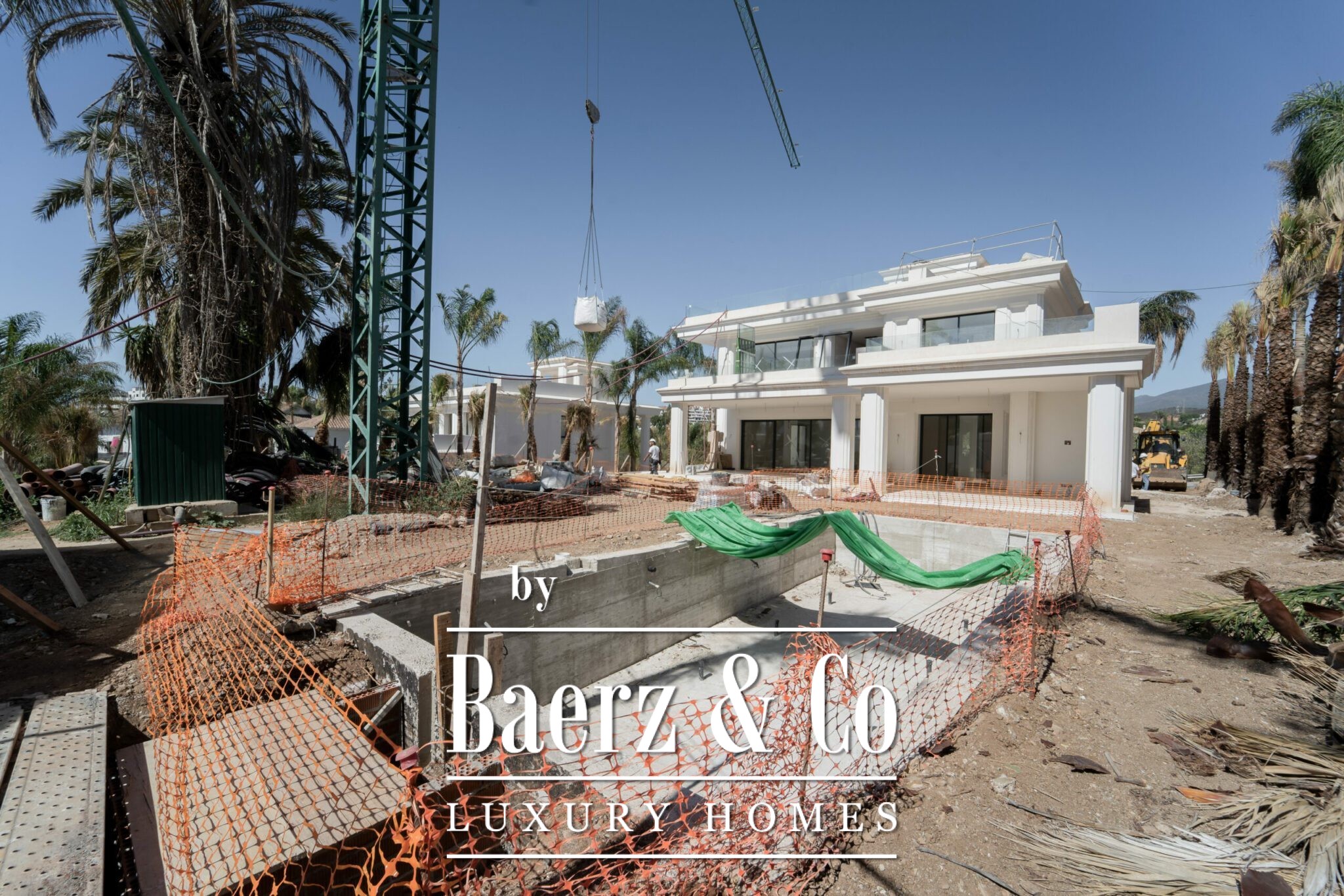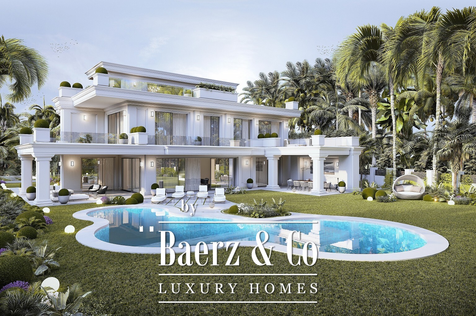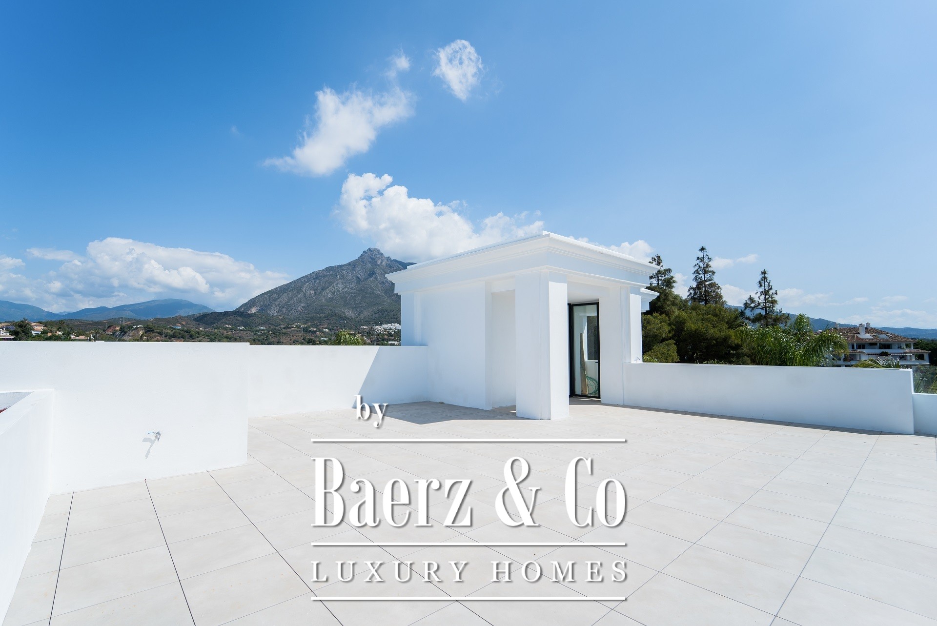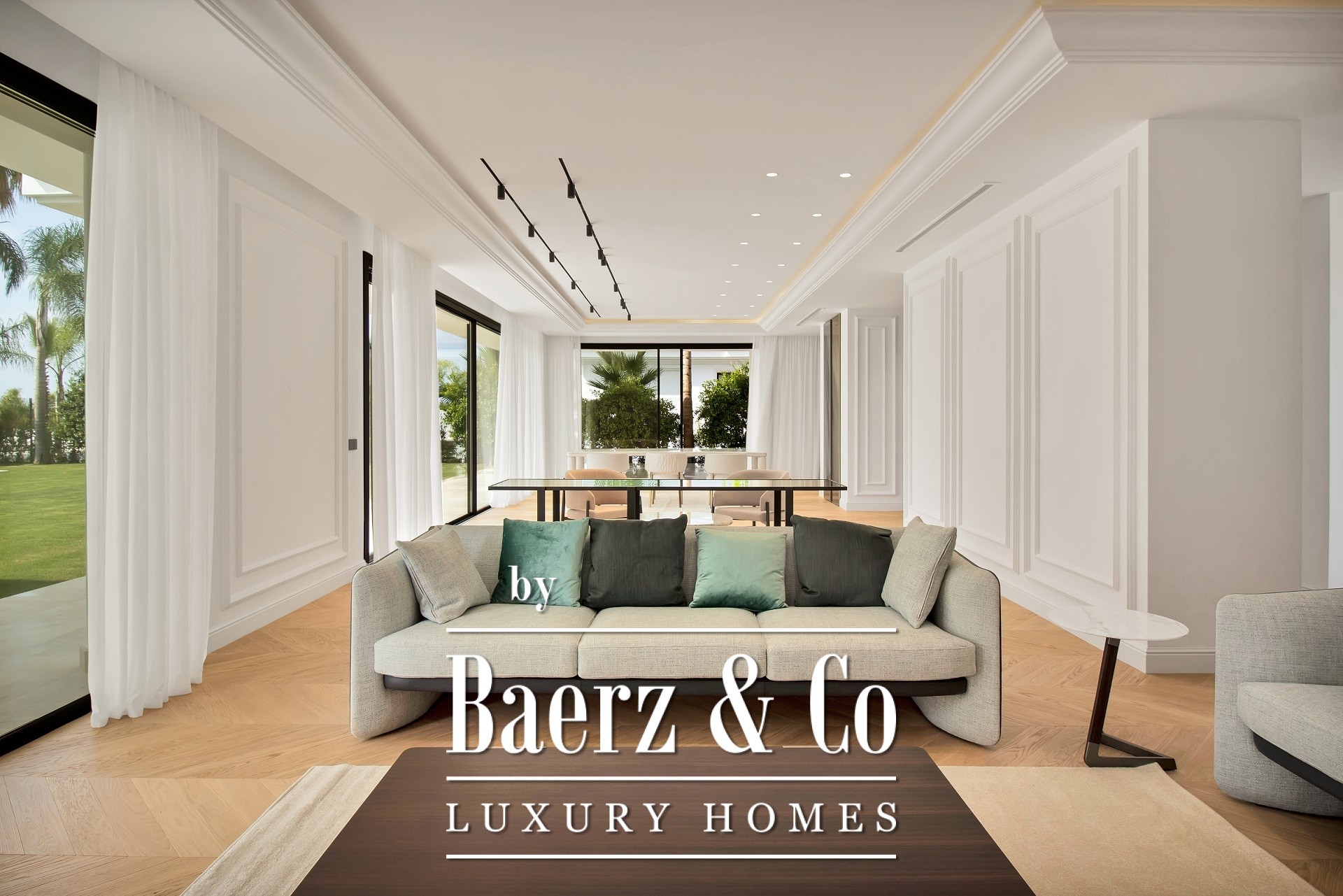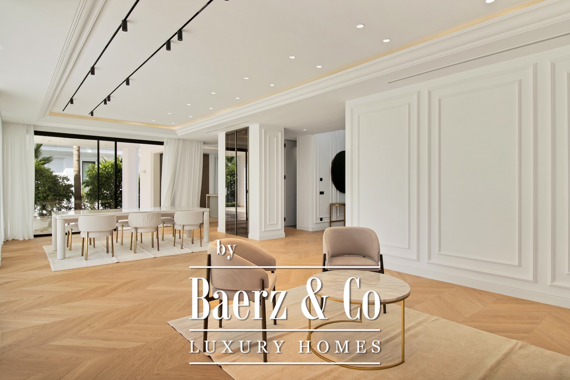 Villa Marbella Golden Mile is the focus of a distinguished new development, completed and set within one of the most exclusive residential enclaves in Marbella. This south-facing villa offers 647 m² of refined living space and is positioned on a 1,441 m² plot, capturing both serene sea and La Concha mountain views. The design bridges classic and modern aesthetics, with an elevated position enhancing both privacy and perspective.