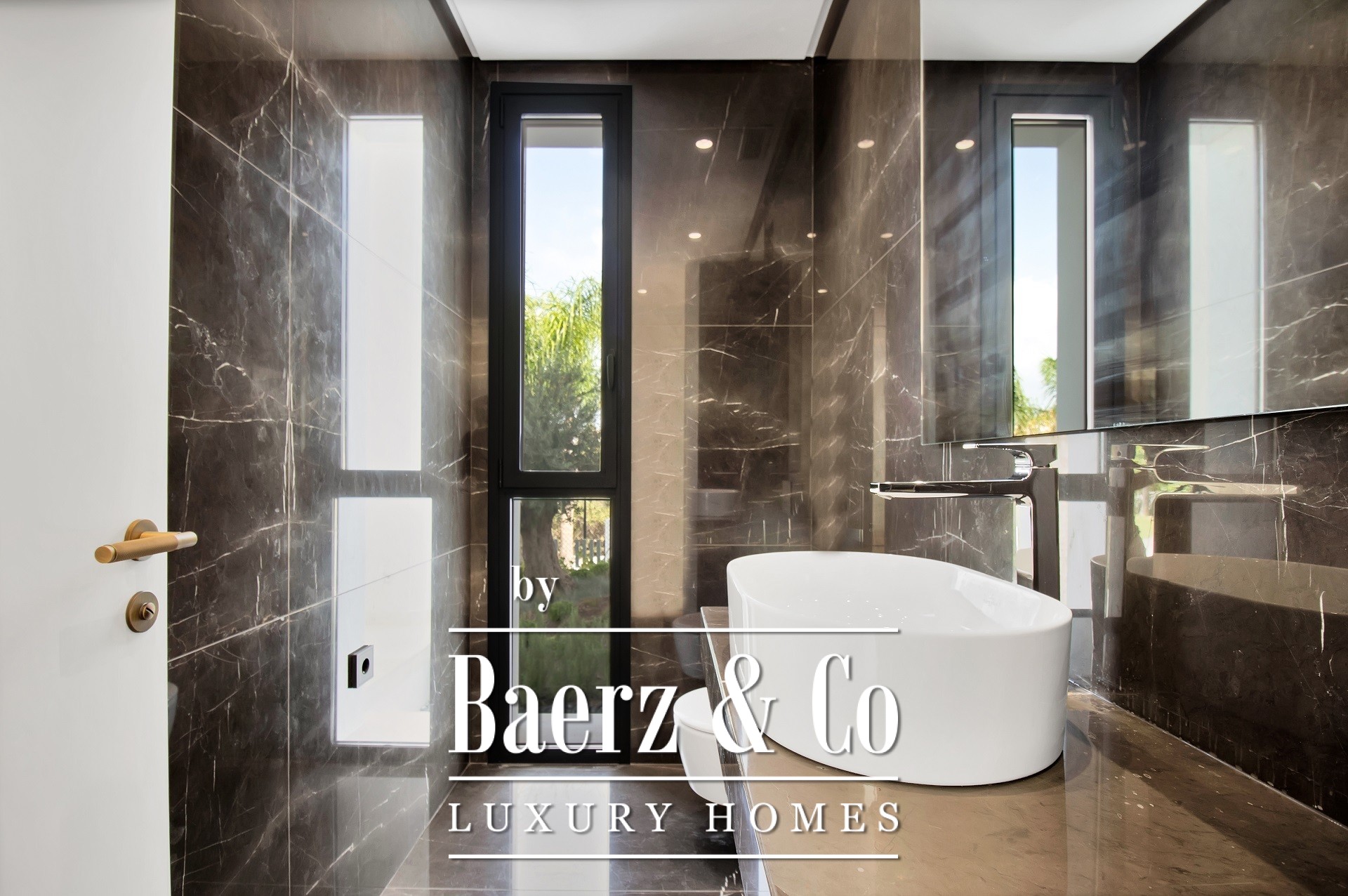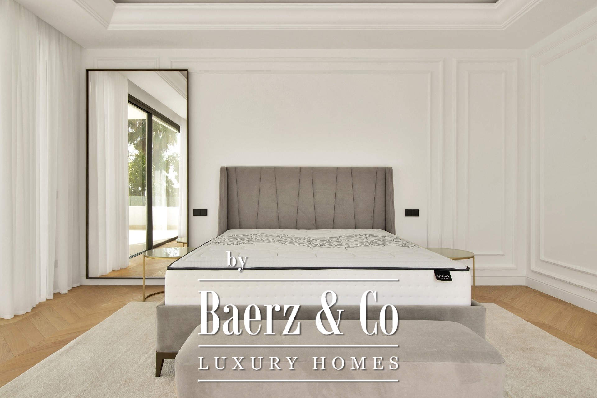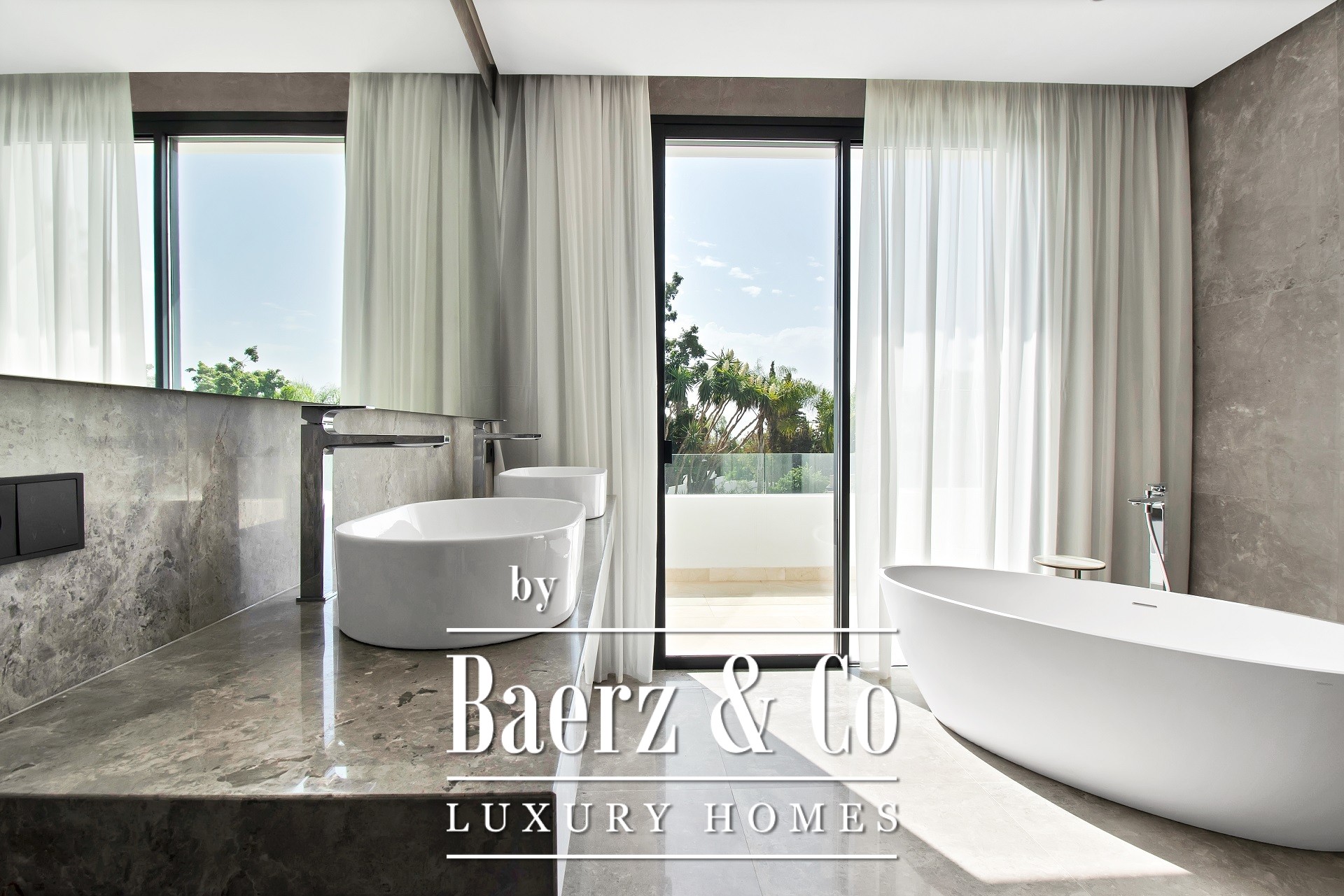 The basement accommodates three-car garage parking, guest bedrooms with natural light, a staff apartment, laundry zone, and an additional service kitchen with elevator access. 24-hour security, a gym, and proximity to Michelin-starred restaurants, international schools, and Marbella’s cosmopolitan amenities complete a setting united by comfort and exceptional quality. This luxury villa for sale in Marbella is discreetly positioned while delivering every element sought by buyers who value both presence and privacy.