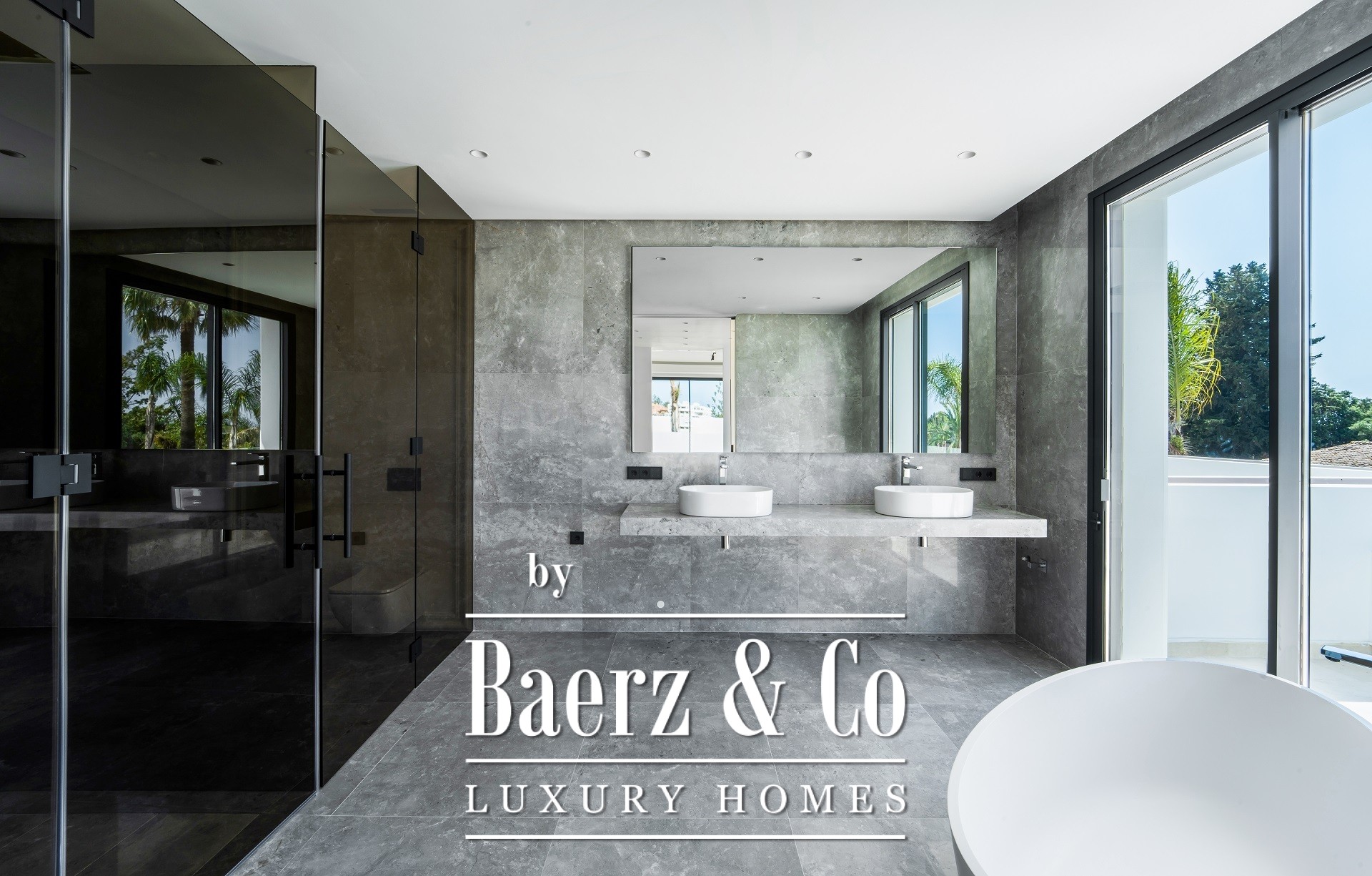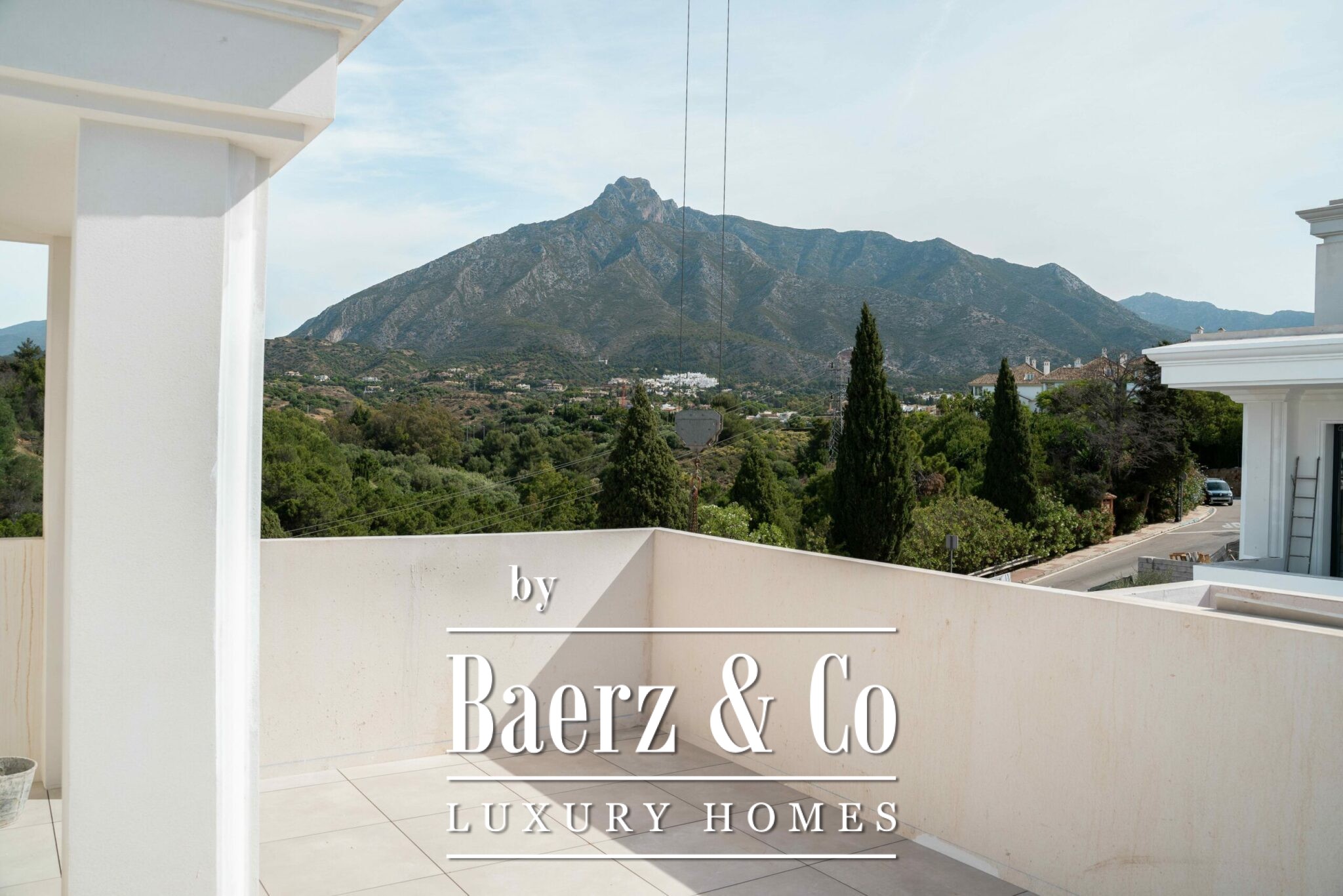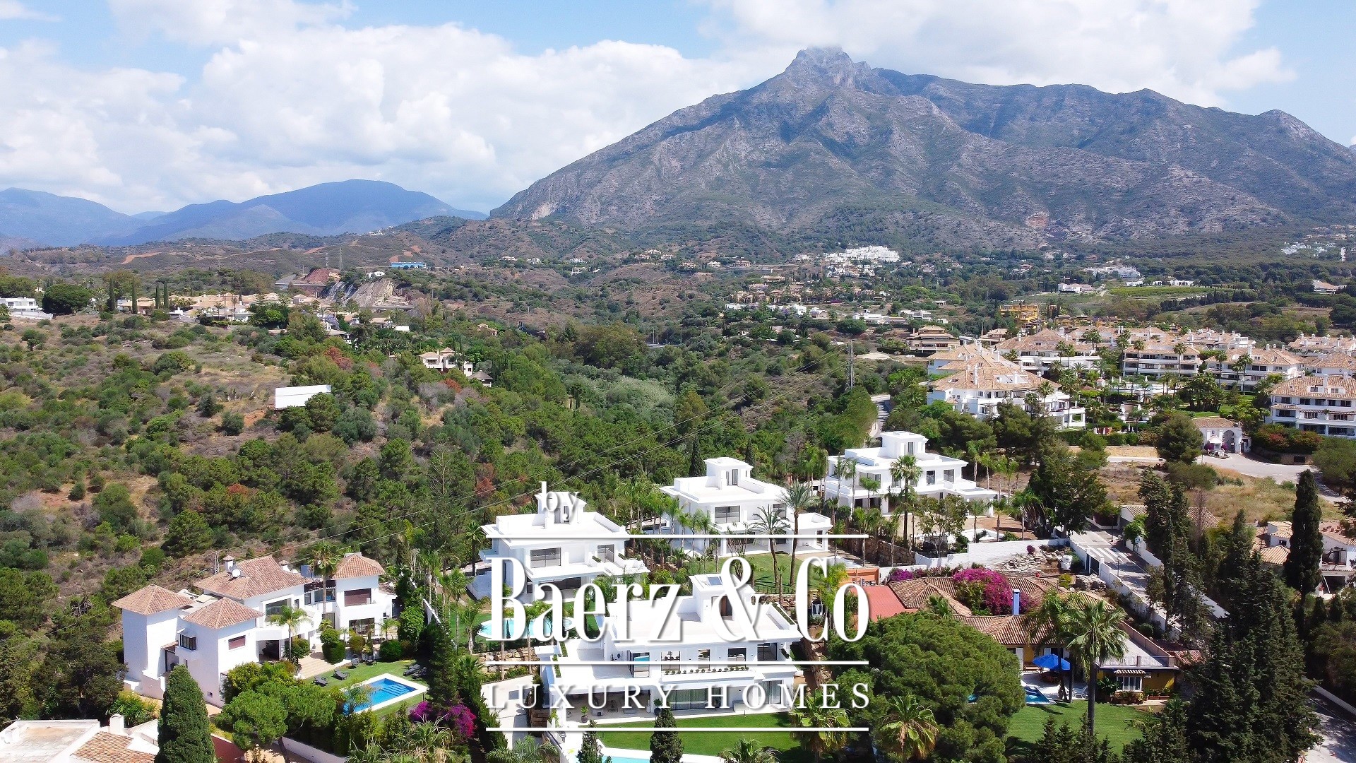 The basement accommodates three-car garage parking, guest bedrooms with natural light, a staff apartment, laundry zone, and an additional service kitchen with elevator access. 24-hour security, a gym, and proximity to Michelin-starred restaurants, international schools, and Marbella’s cosmopolitan amenities complete a setting united by comfort and exceptional quality. This luxury villa for sale in Marbella is discreetly positioned while delivering every element sought by buyers who value both presence and privacy.