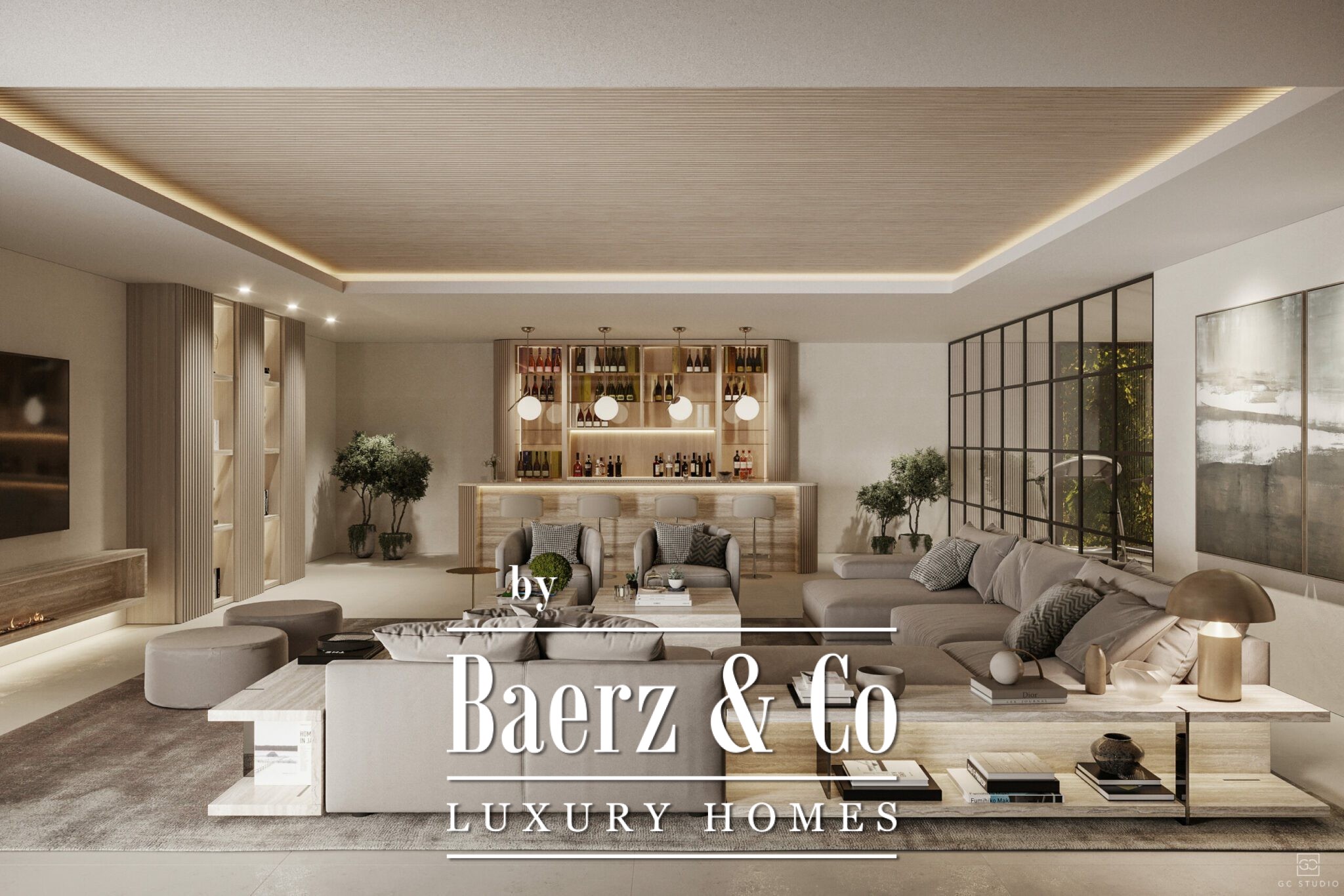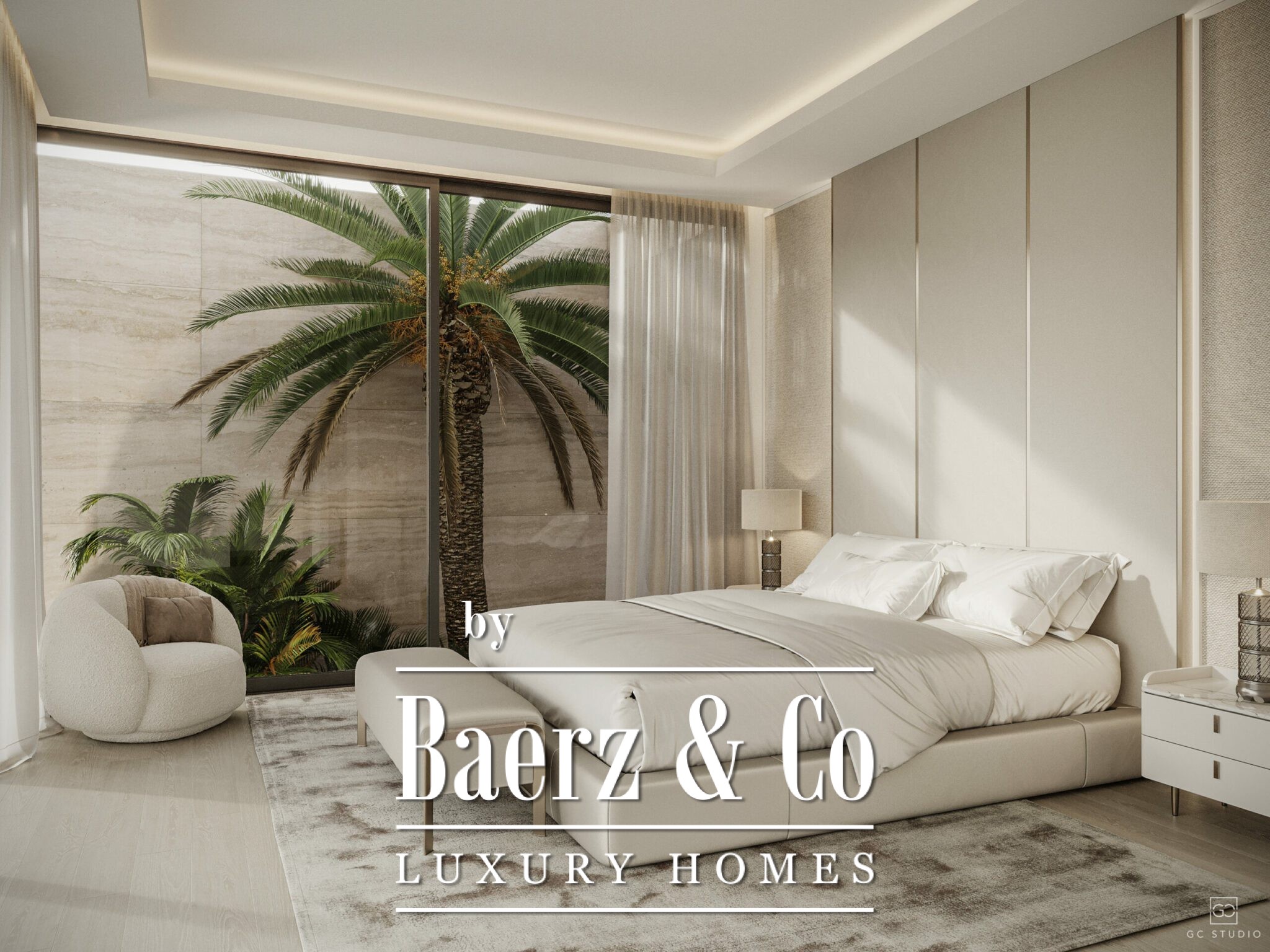 With five bedrooms and six bathrooms, the property is designed for both privacy and convivial gatherings. Features include a private gym, spa and a bespoke wine cellar, expanding the rhythm of home life into wellness and taste. Interior parking for three cars and additional car ports for two more preserve discretion and security. A private swimming pool and rooftop solarium offer distinct moments of leisure.