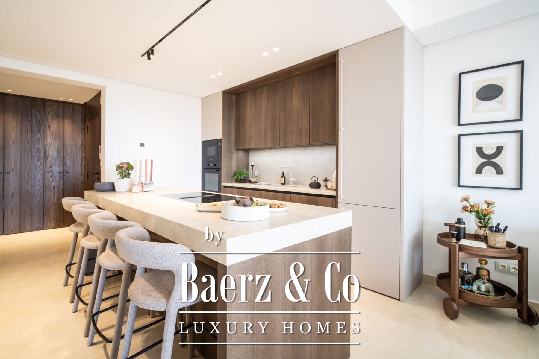 Inside, 124 m² of living space unfolds with clarity and intent. A seamless open-plan layout leads to a modern kitchen where premium appliances and generous work surfaces shape both daily ritual and celebratory moments. Three bedrooms provide distinct zones of privacy, the master suite elevated as a sanctuary with commanding views and an exceptional master bathroom. Two refined bathrooms offer functionality and serenity in equal measure.