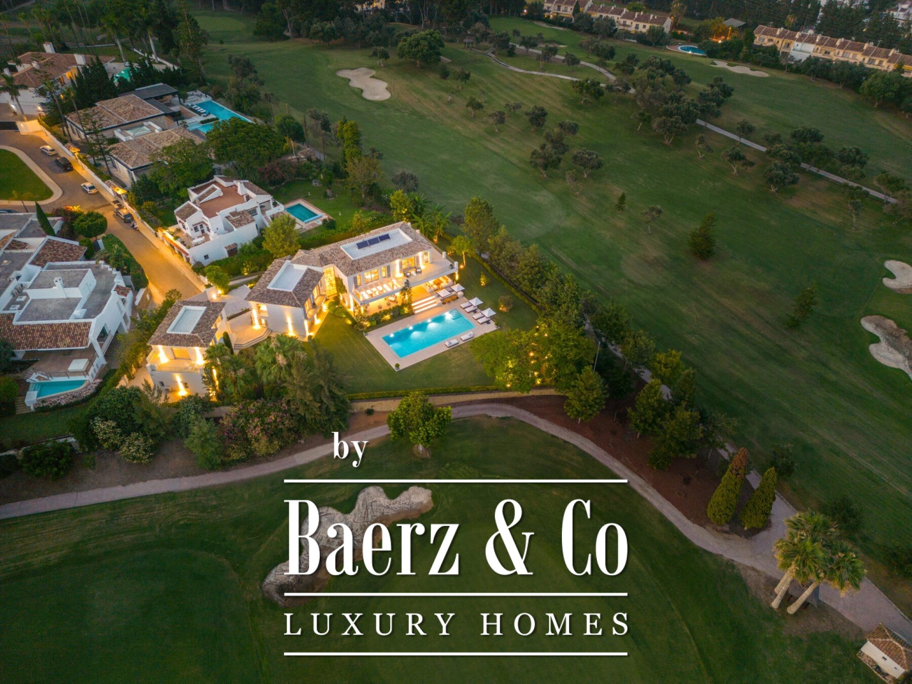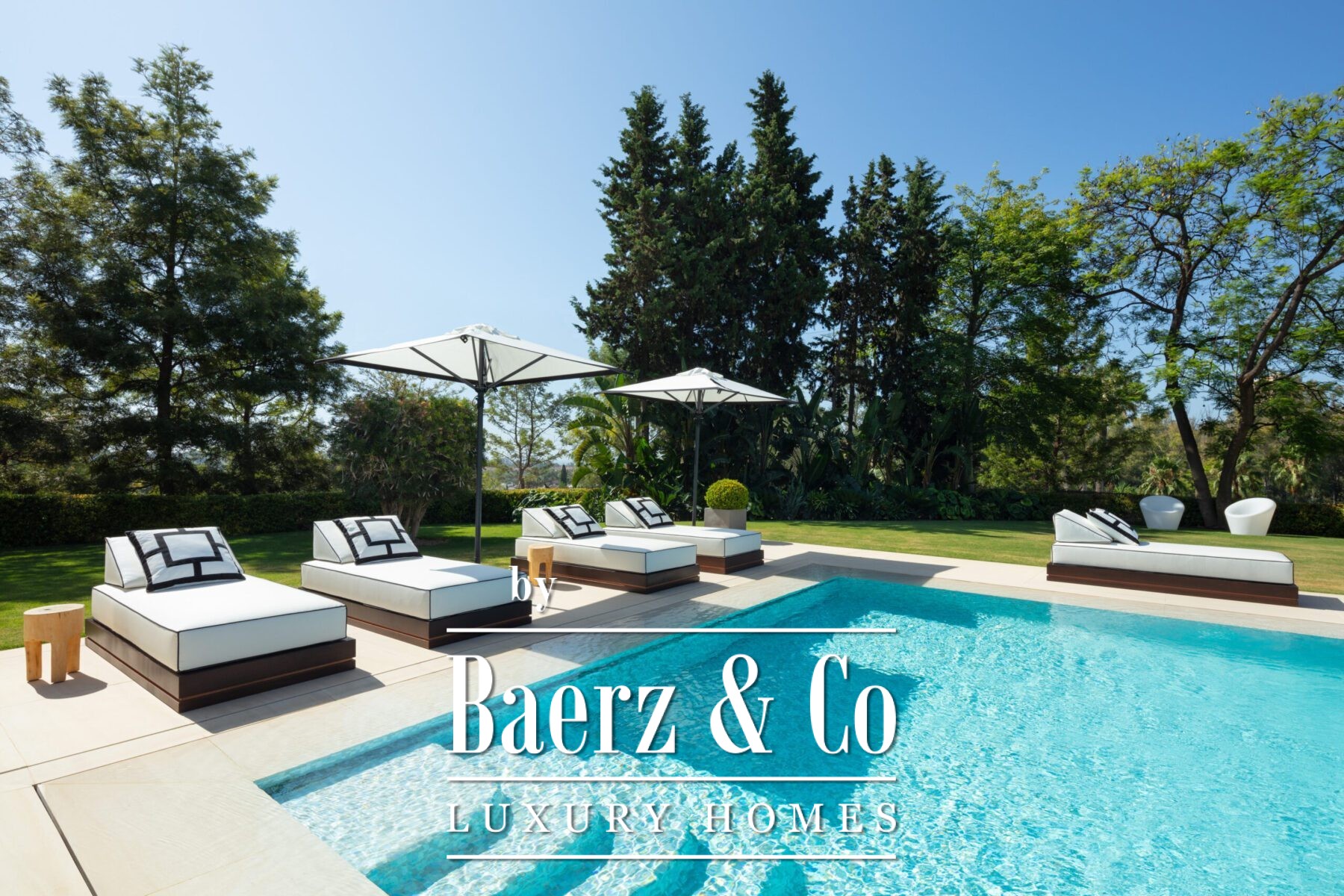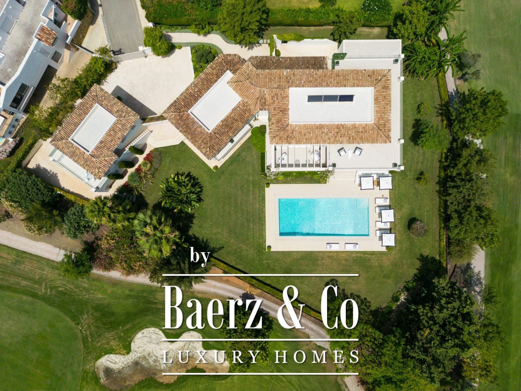 Villa Marbella stands as a private oasis within the coveted Golf Valley, immersed in the discreet luxury of a prestigious gated community. This villa Marbella presents an enviable front-line position overlooking Aloha Golf Course, where timeless architecture meets an assured sense of place. The villa’s 702 m² interior is defined by soft, inviting palettes and top-tier finishes, balancing classic elegance with modern restraint. Distinctive spatial touches unify each of the five bedrooms in the main residence, complemented by a master suite with dressing room, offering cohesion and individuality in equal measure. A separate guest house with one bedroom ensures privacy for guests or staff.