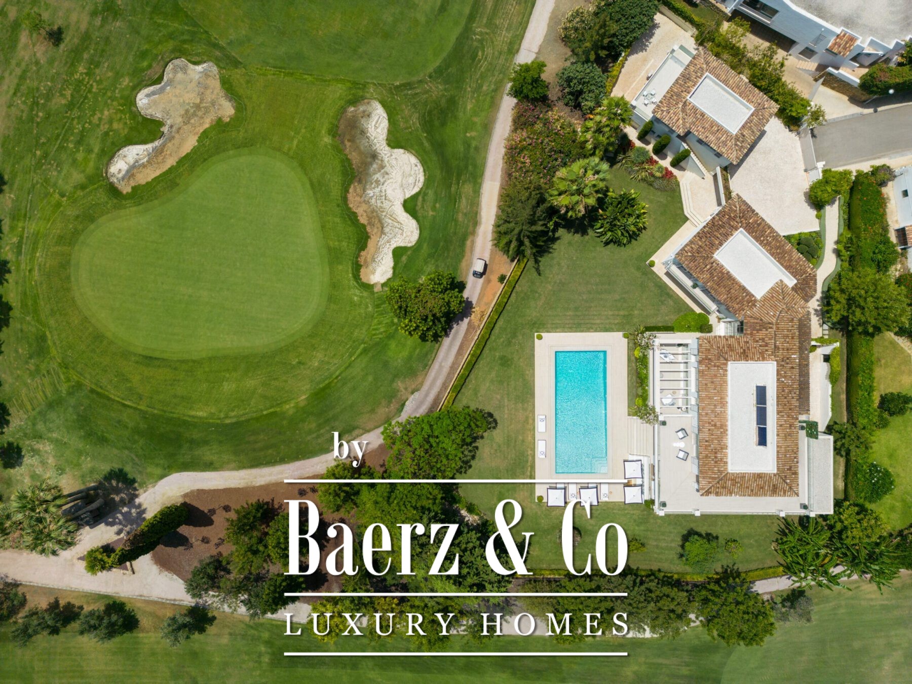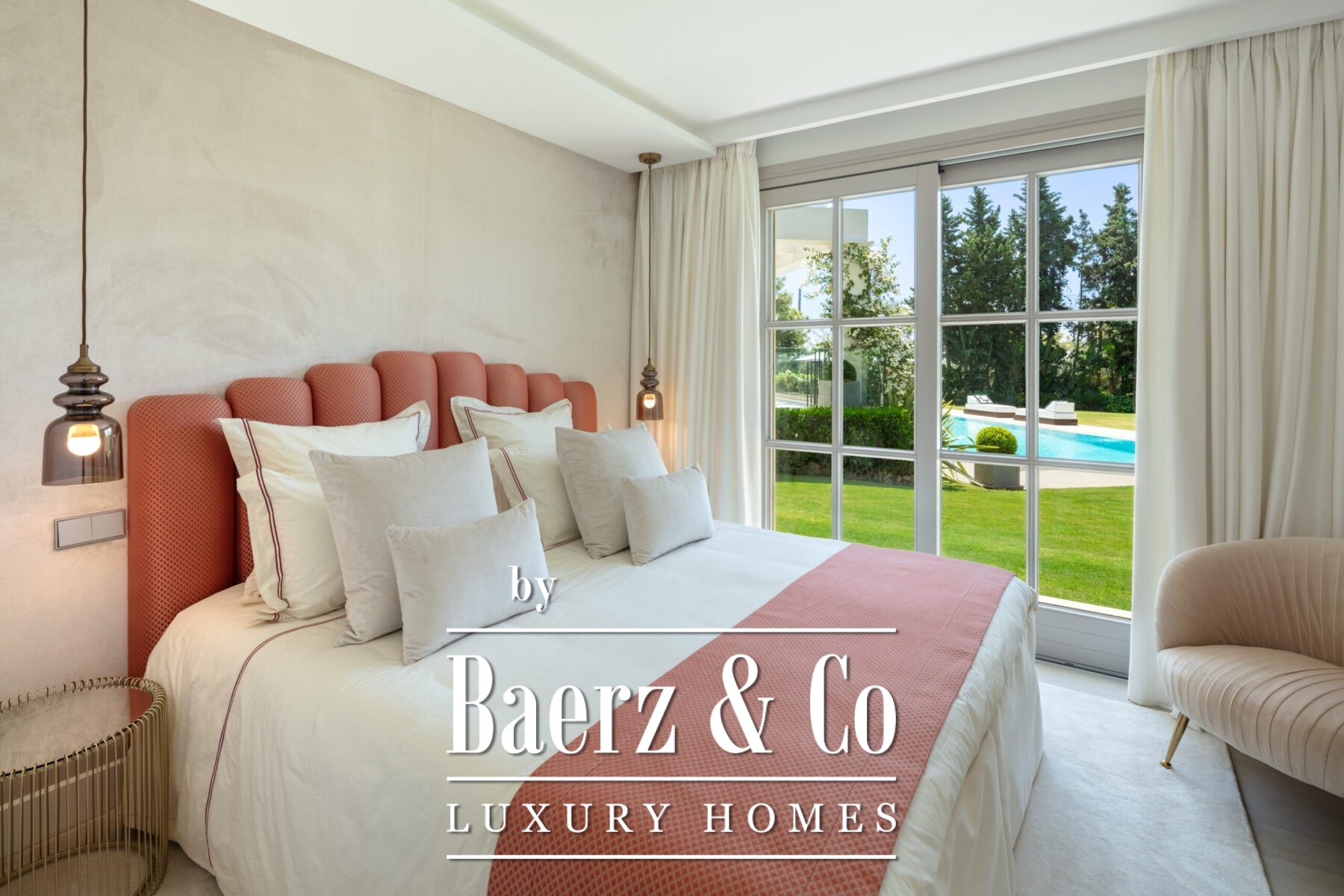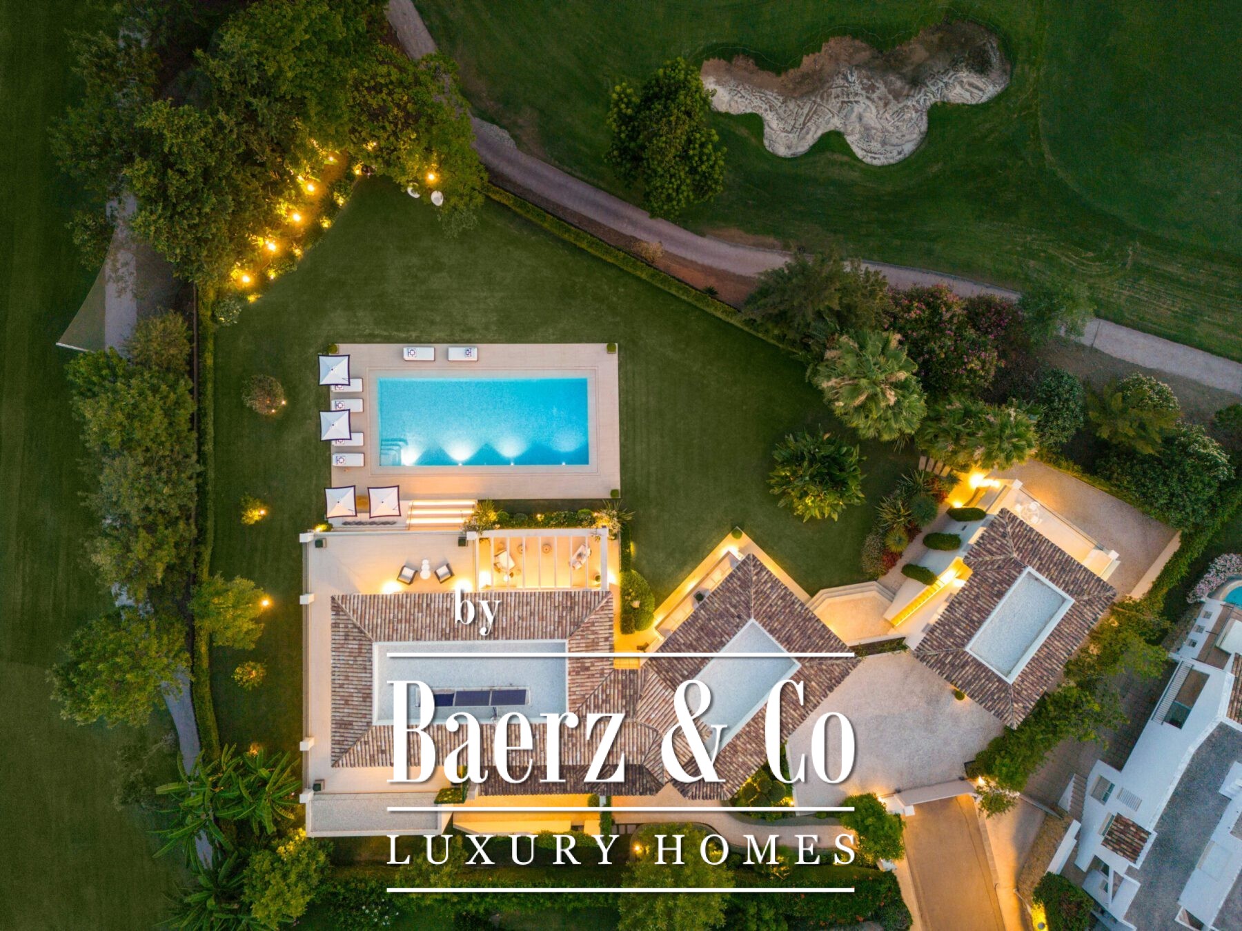Villa Marbella stands as a private oasis within the coveted Golf Valley, immersed in the discreet luxury of a prestigious gated community. This villa Marbella presents an enviable front-line position overlooking Aloha Golf Course, where timeless architecture meets an assured sense of place. The villa’s 702 m² interior is defined by soft, inviting palettes and top-tier finishes, balancing classic elegance with modern restraint. Distinctive spatial touches unify each of the five bedrooms in the main residence, complemented by a master suite with dressing room, offering cohesion and individuality in equal measure. A separate guest house with one bedroom ensures privacy for guests or staff.