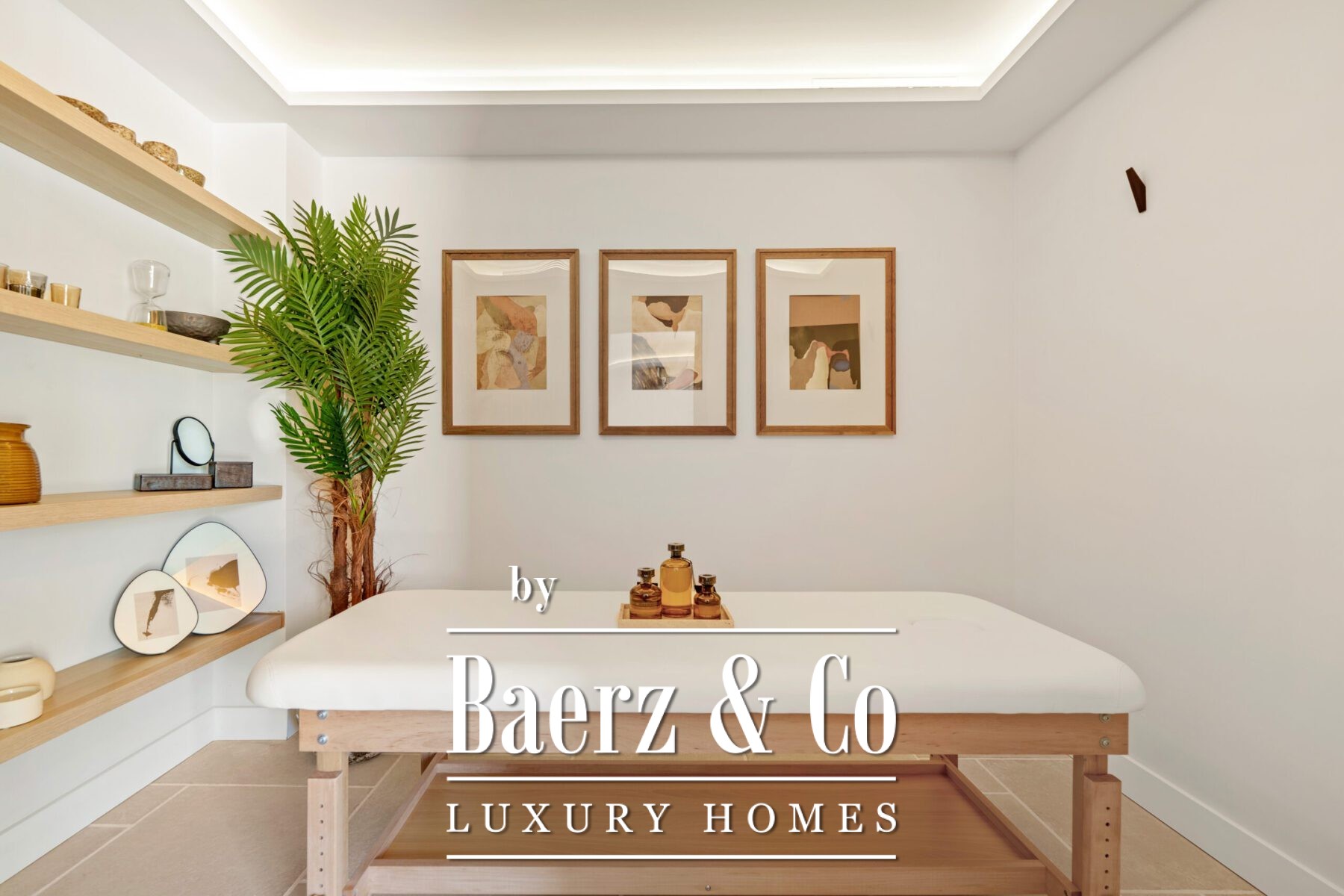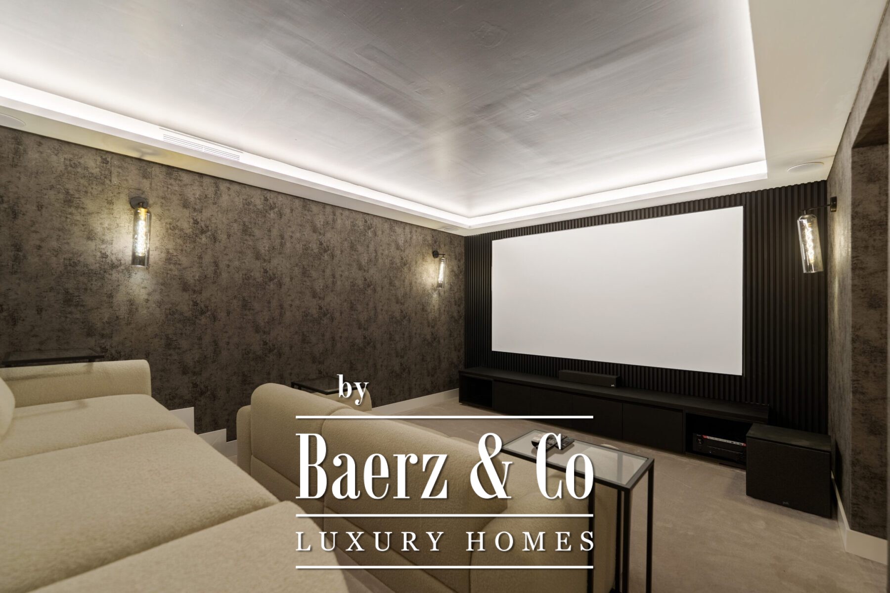 The heart of the home is a state-of-the-art gourmet kitchen, illuminated by natural light and designed for both convivial gatherings and private family moments. Dedicated spaces for wellness and entertainment unfold across the villa, including a private gym, indulgent spa, home cinema, wine bodega, and an additional leisure room for family or guests.